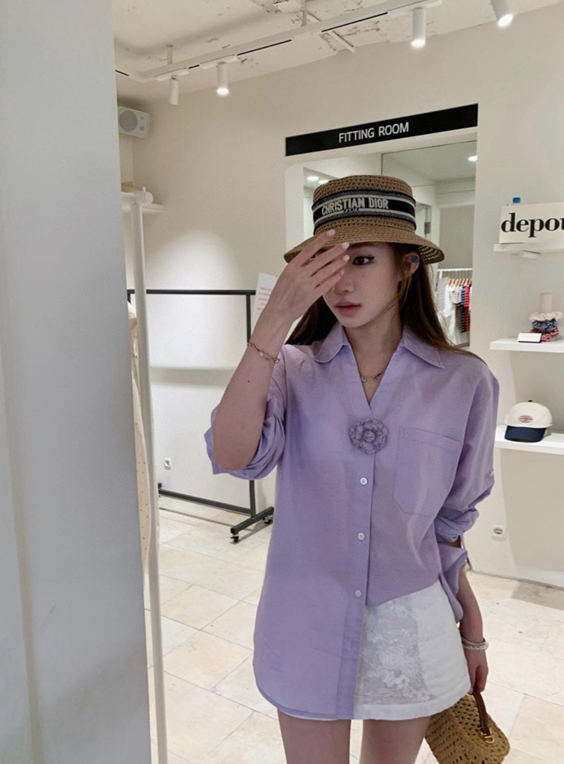 3. 【C7190】花朵胸針亞麻長袖輕奢高級感氣質襯衫(配胸針)