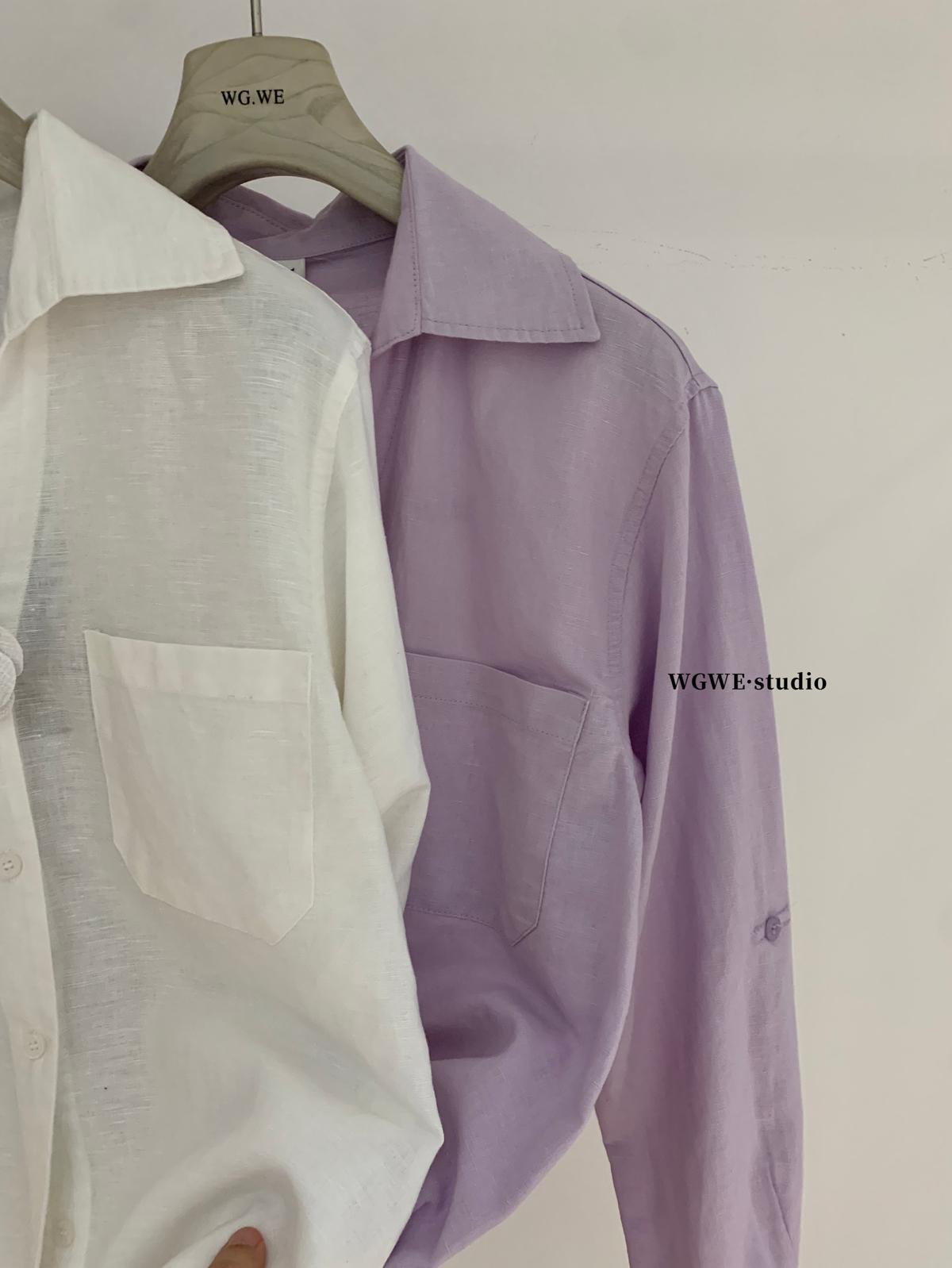 【C7190】花朵胸針亞麻長袖輕奢高級感氣質襯衫(配胸針)