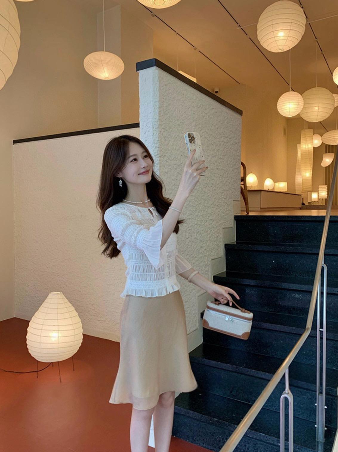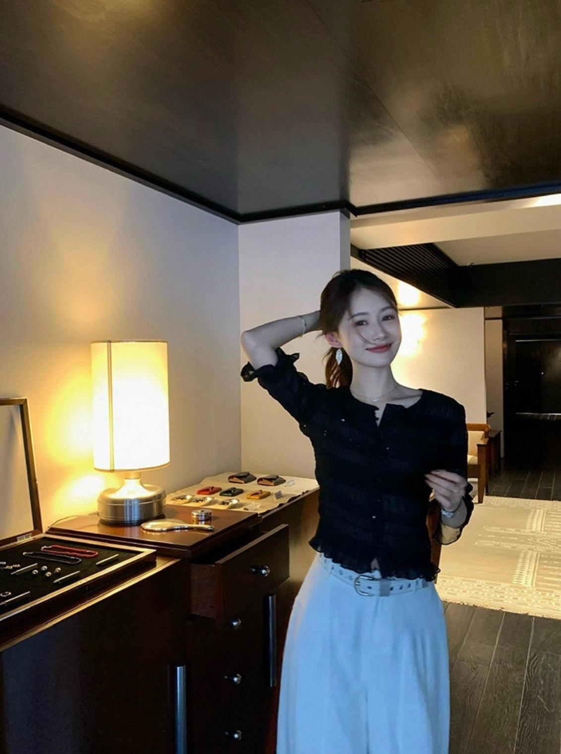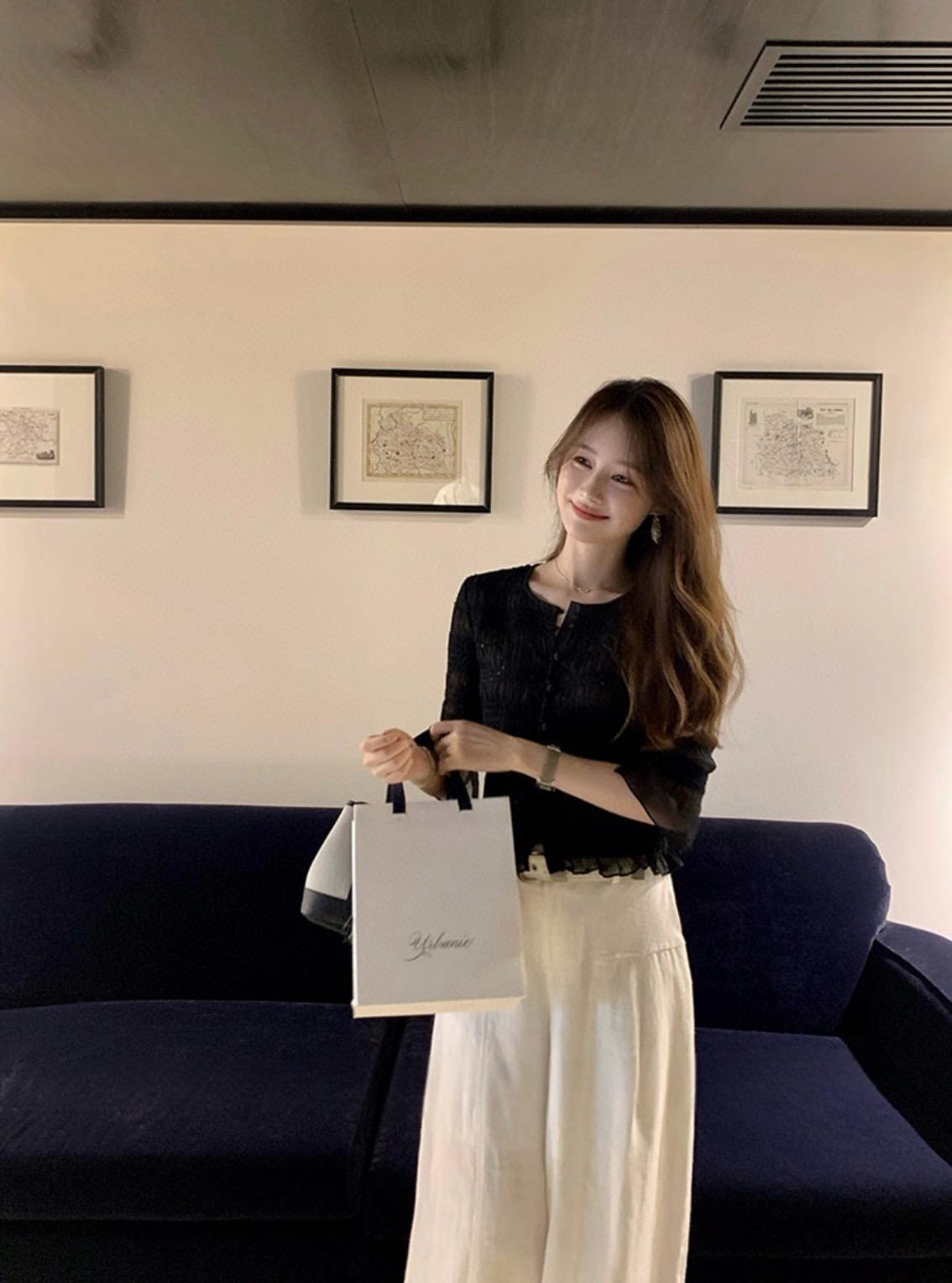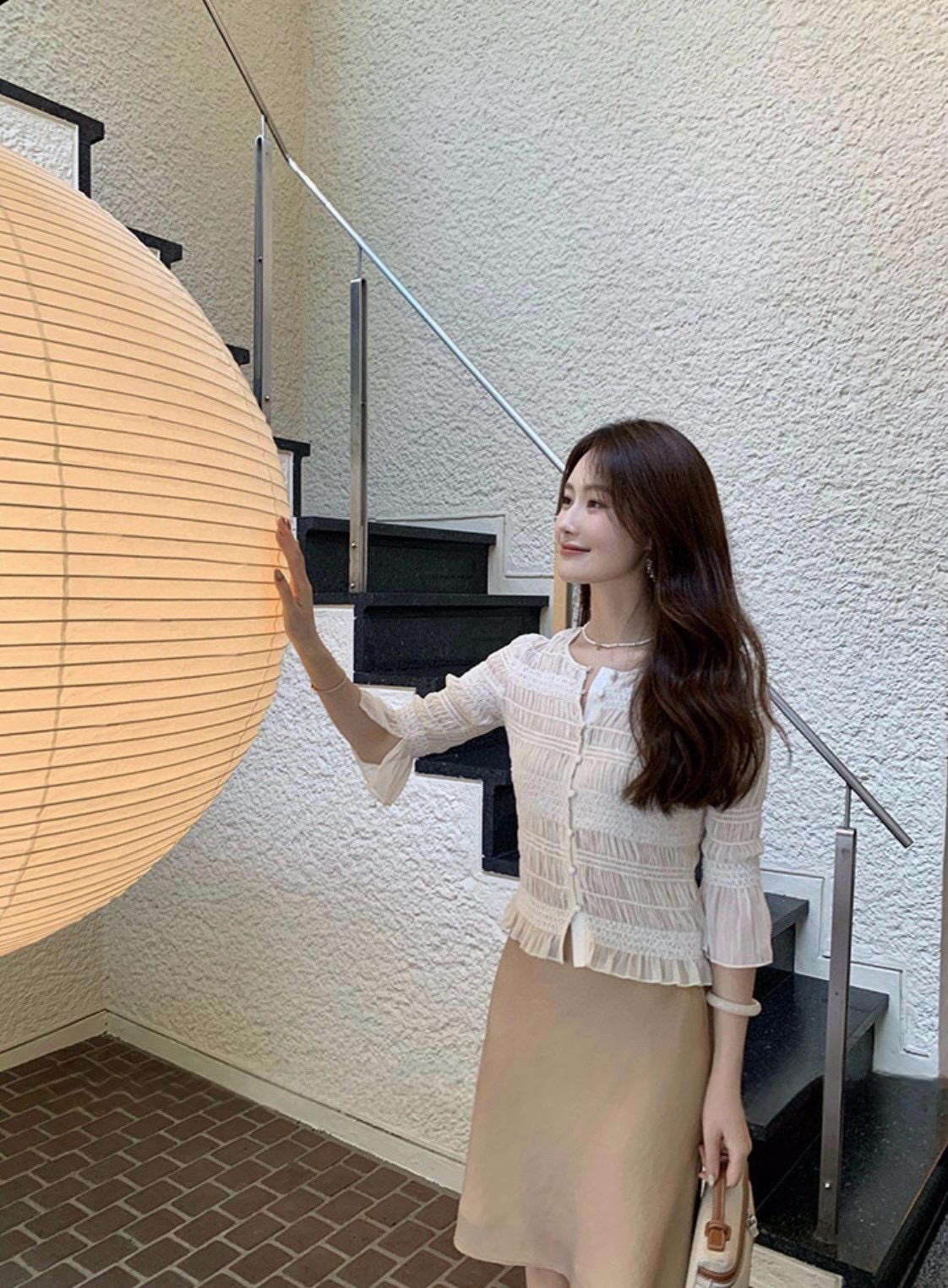 【C7192】精緻主義刺繡亮片褶皺彈力透膚喇叭袖開衫小衫