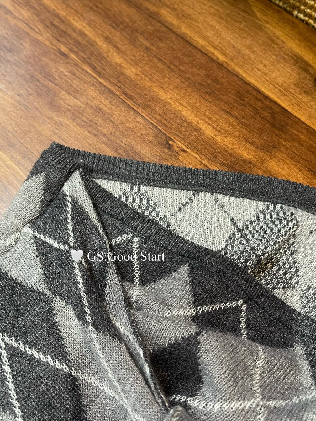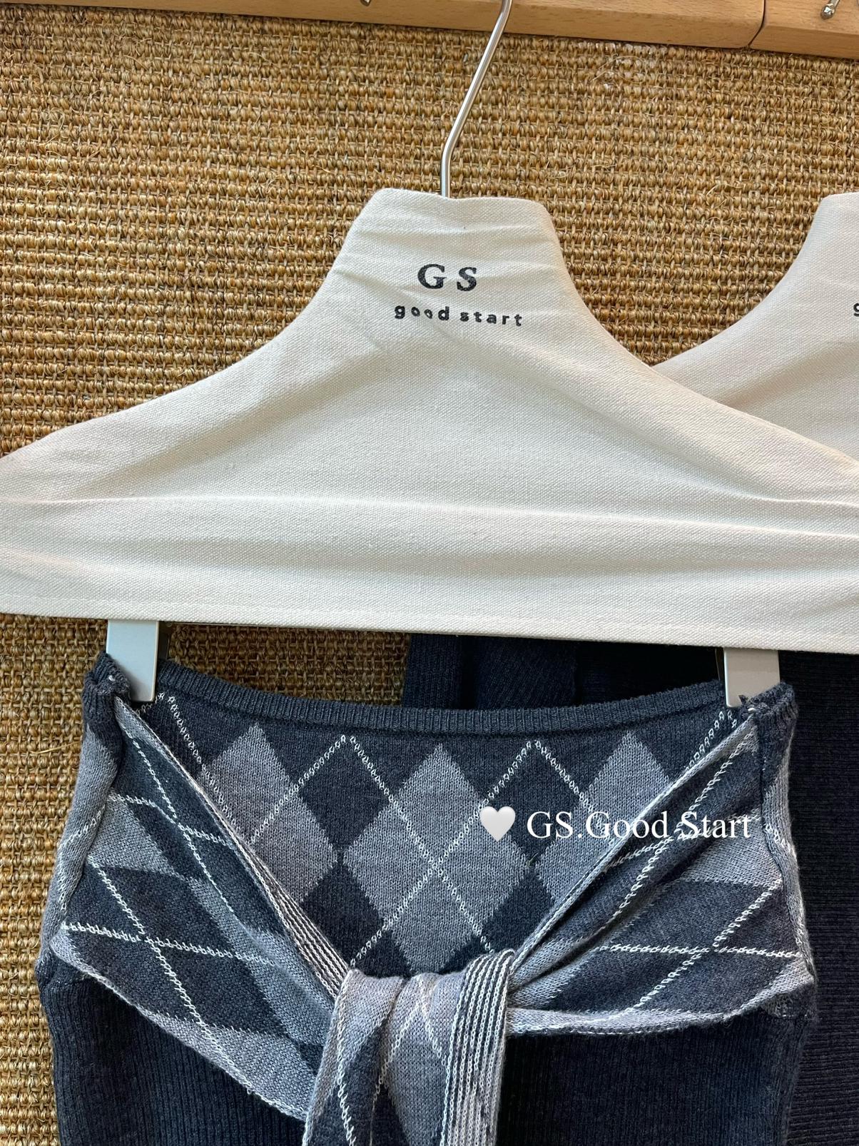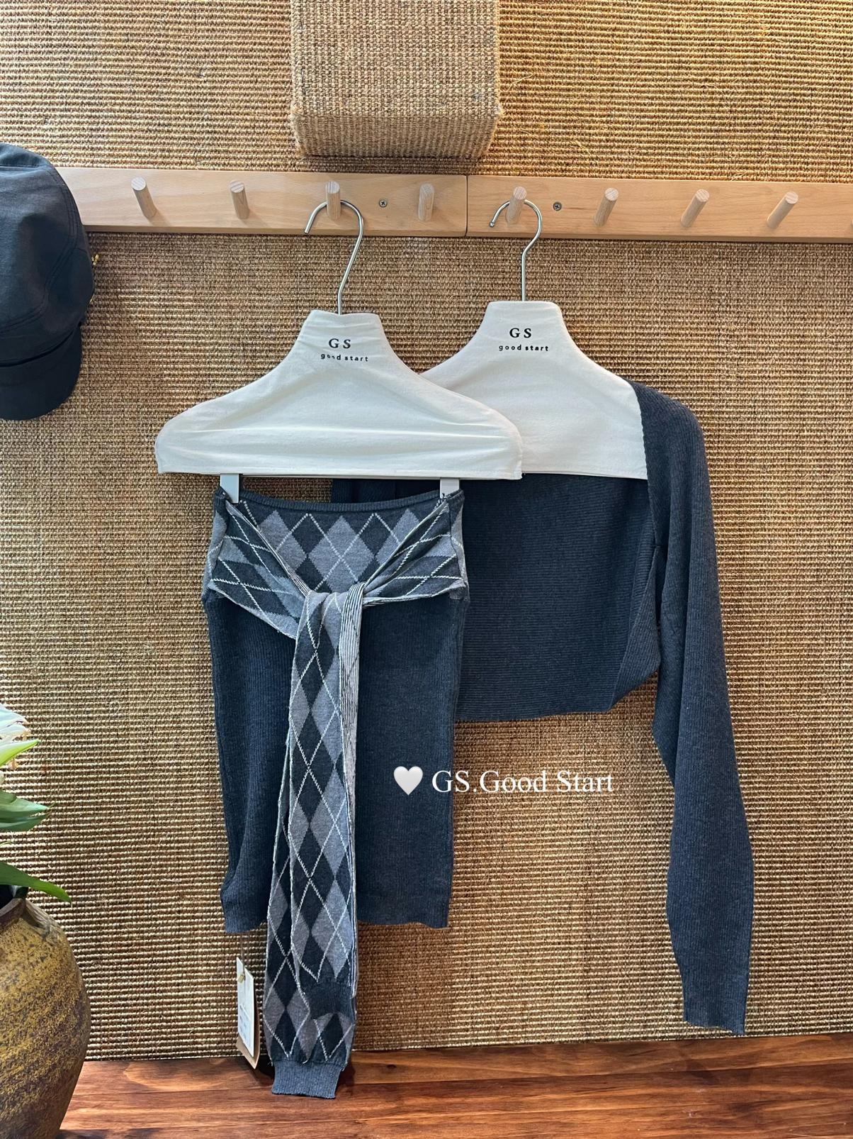 【C7198】被問爆了!必入*韓系ins時髦純欲綁帶格紋抹胸+針織開衫套裝(含4%羊毛)