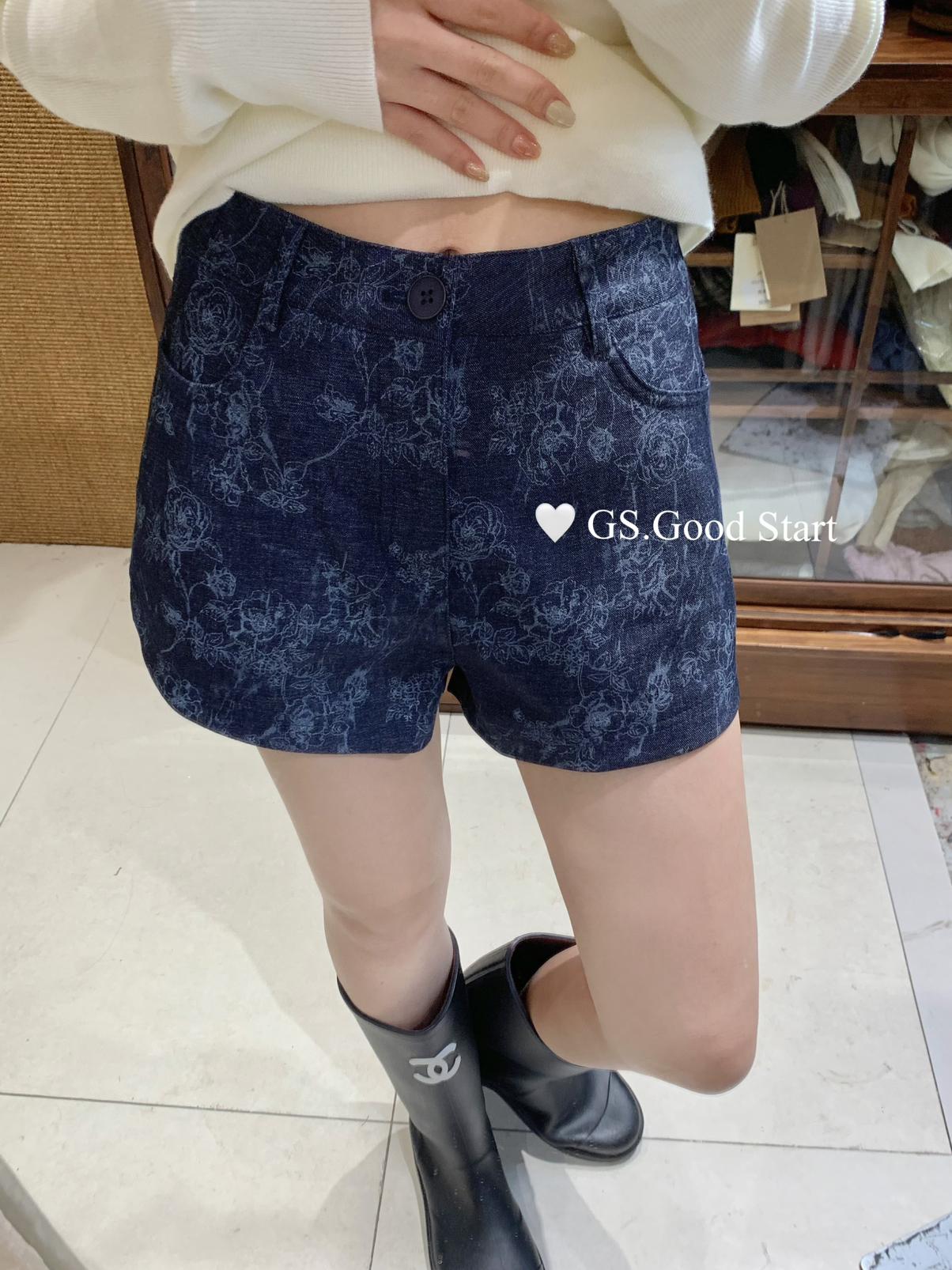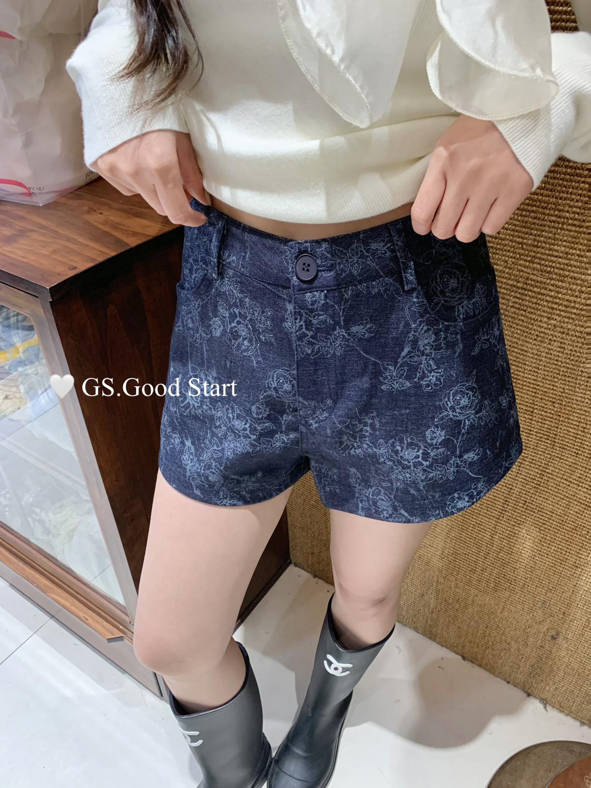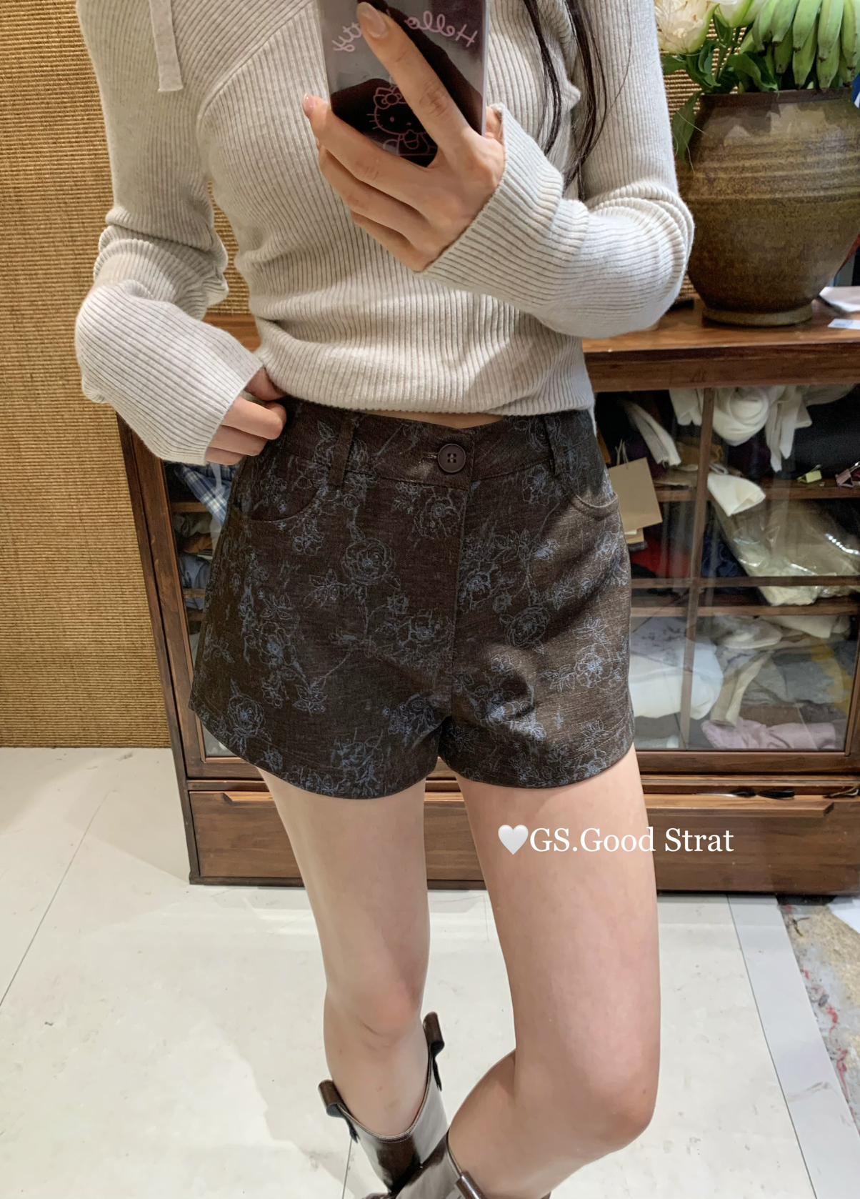 【C7201】千金感單品·很顯貴~秋冬復古氣質提花高腰顯瘦休閒短褲