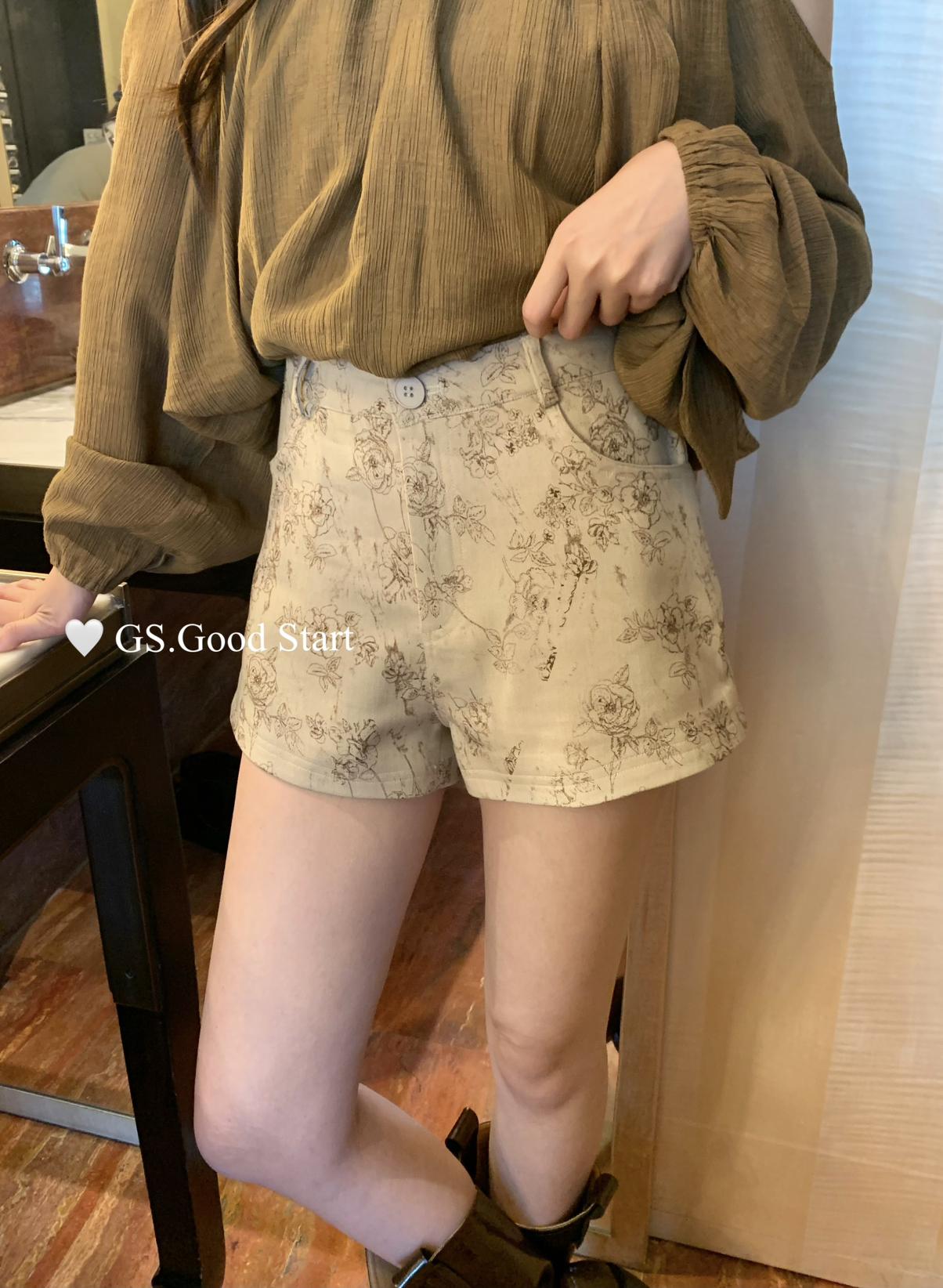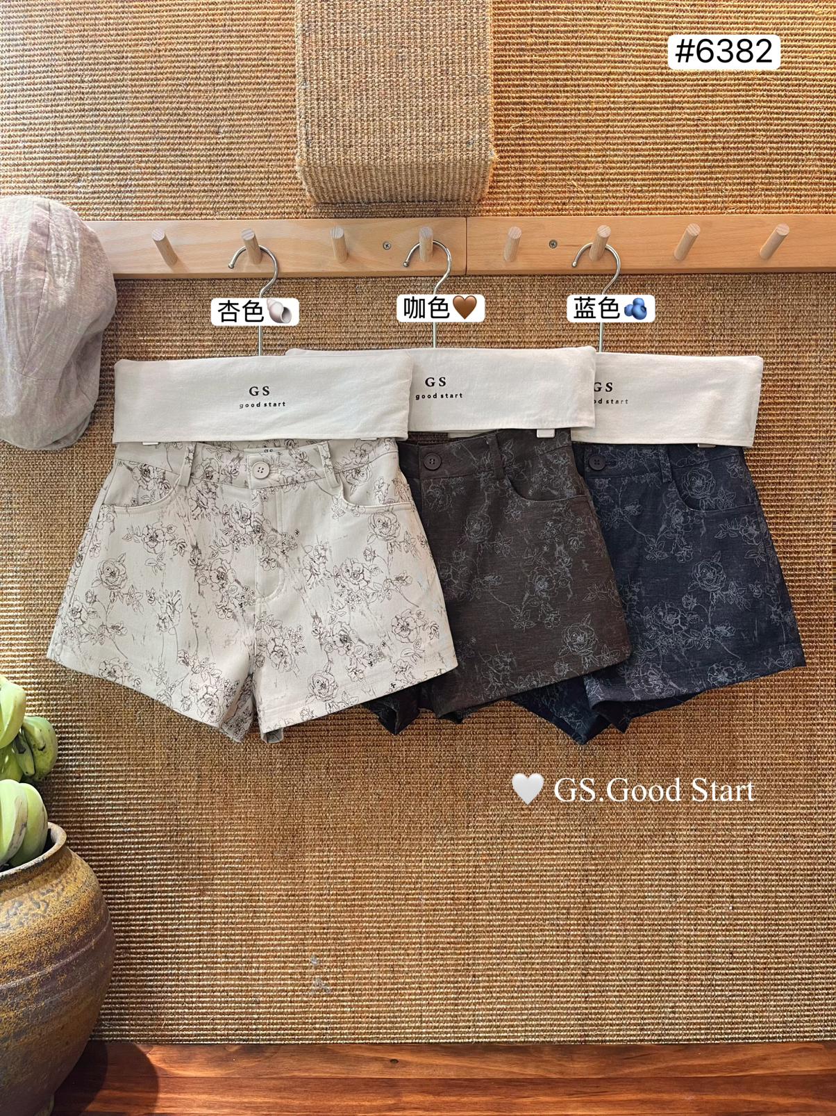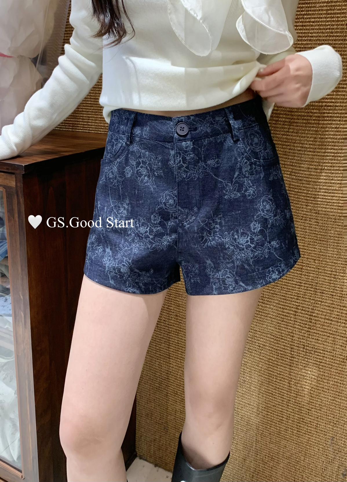 【C7201】千金感單品·很顯貴~秋冬復古氣質提花高腰顯瘦休閒短褲