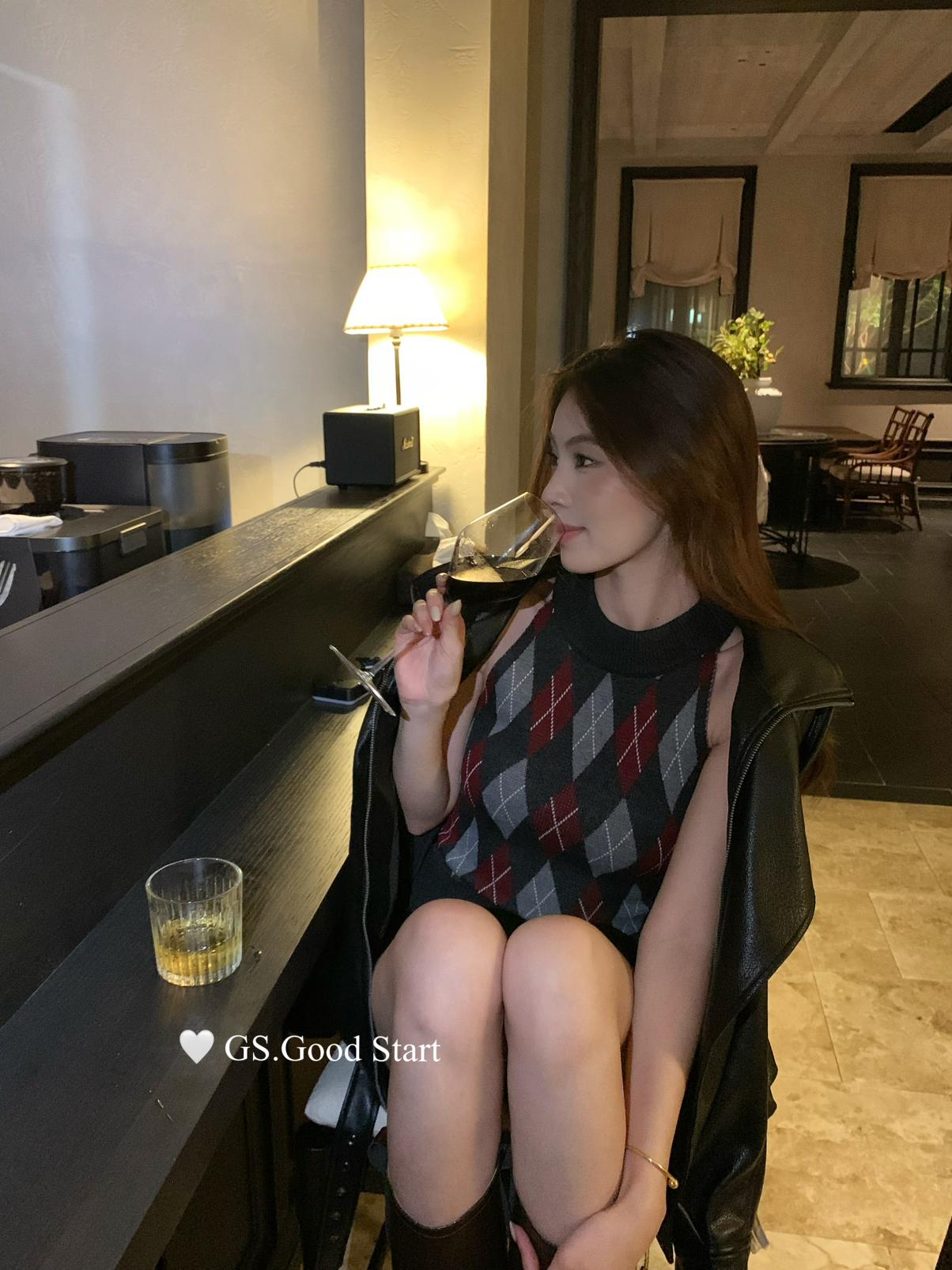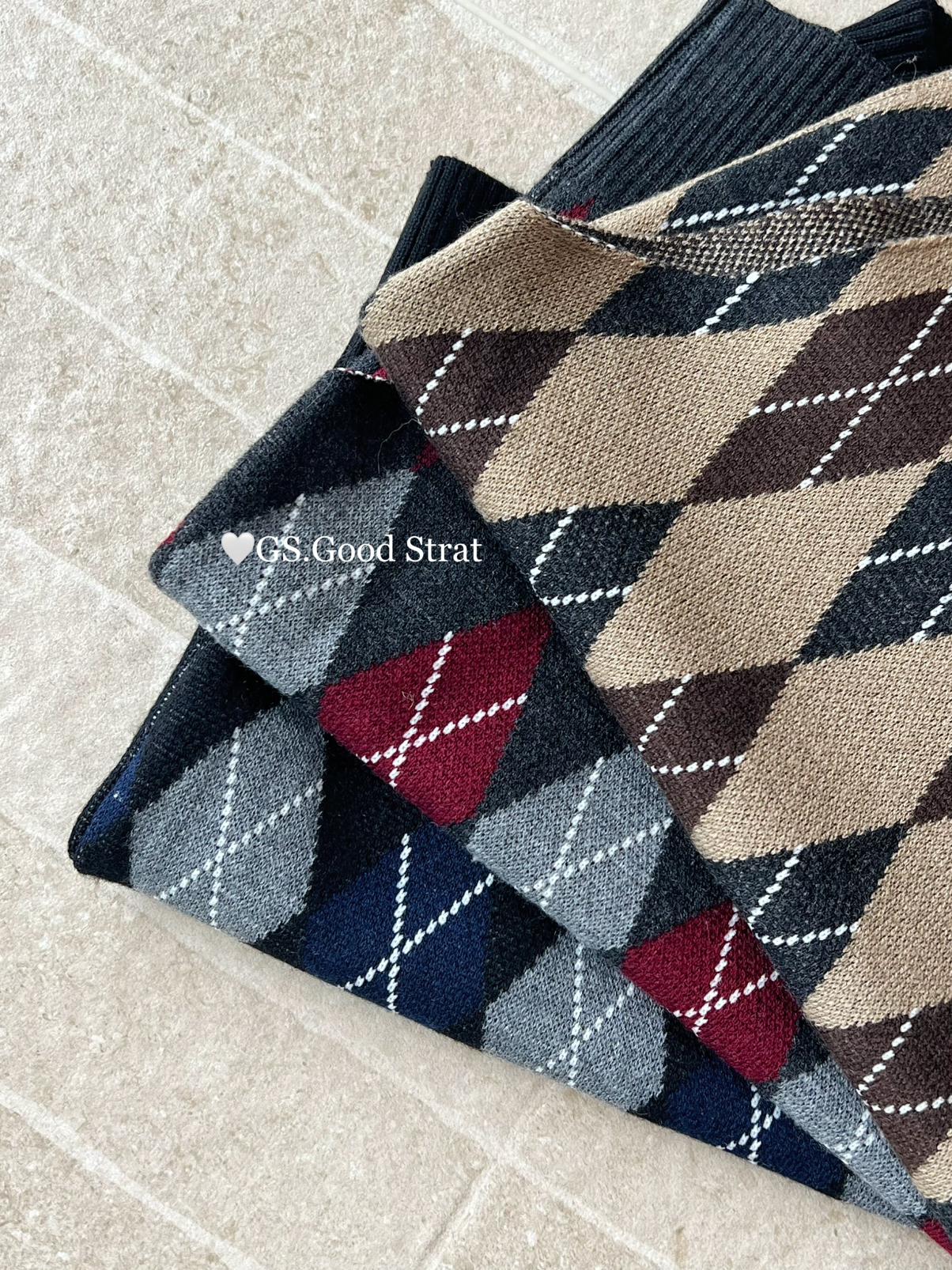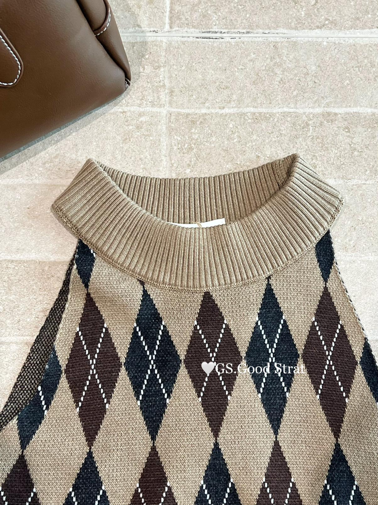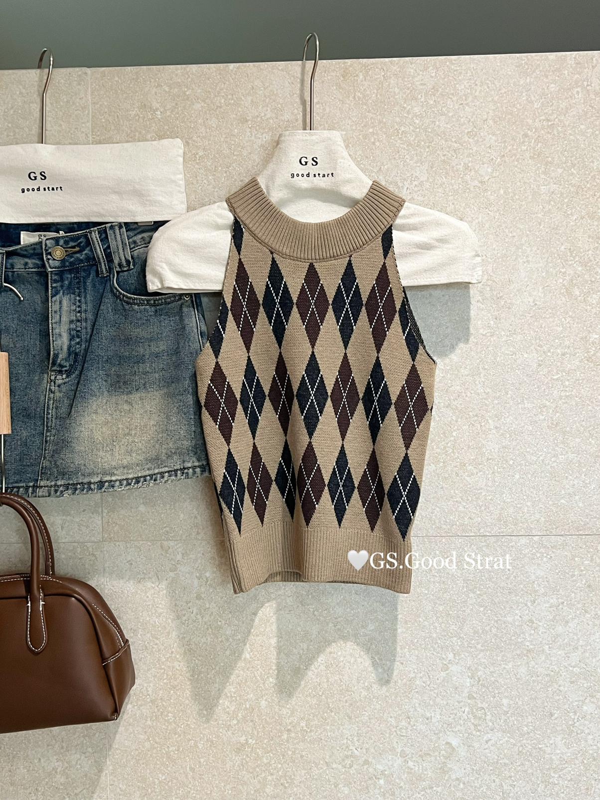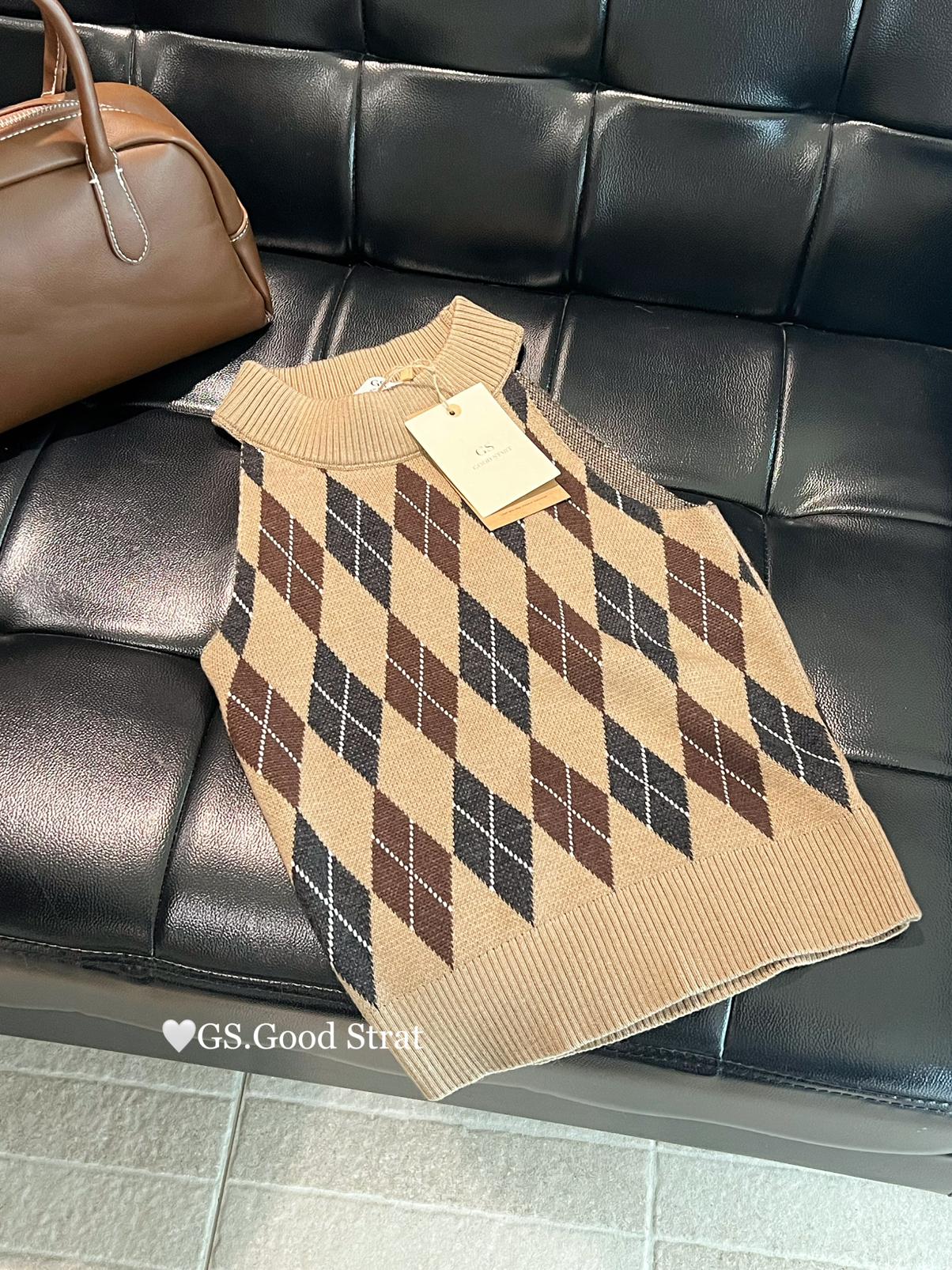 3. 【C7203】超火爆款!分分鐘迷倒~秋季復古英倫撞色菱格辣妹針織背心