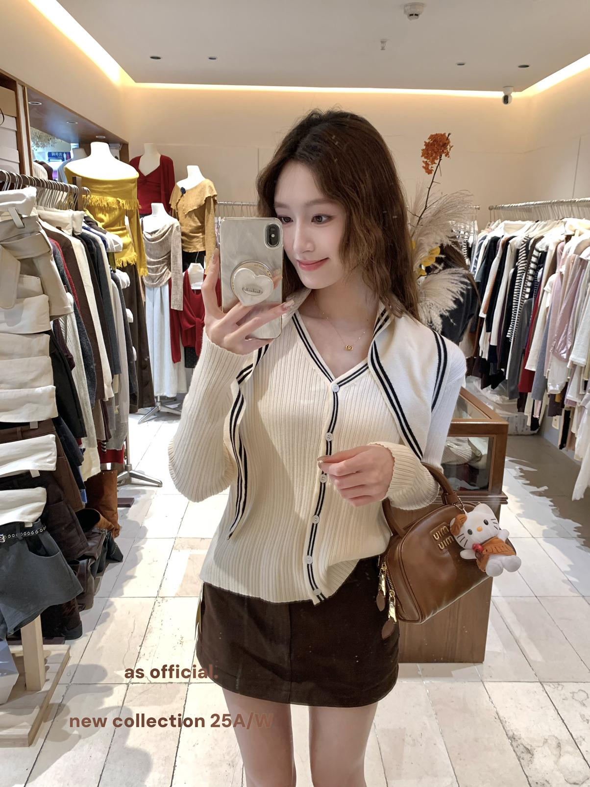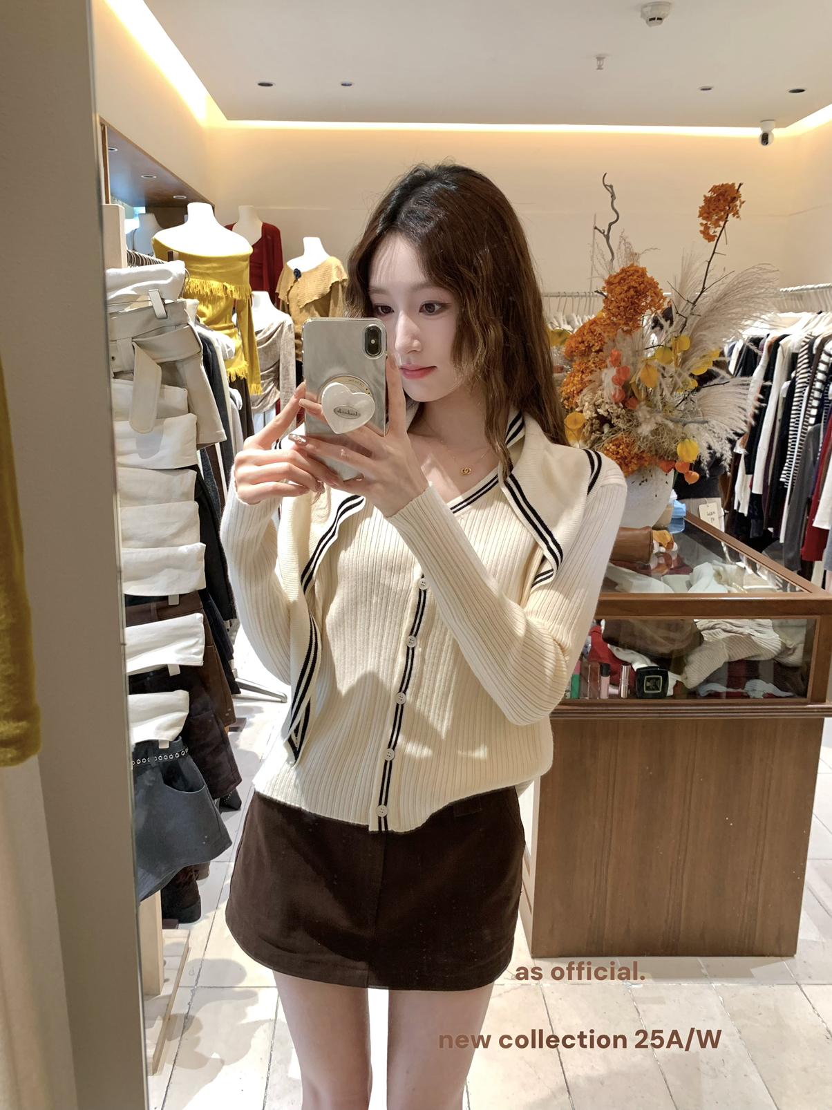 【C7212】法式學院風 三色海軍領針織開衫(配披肩)