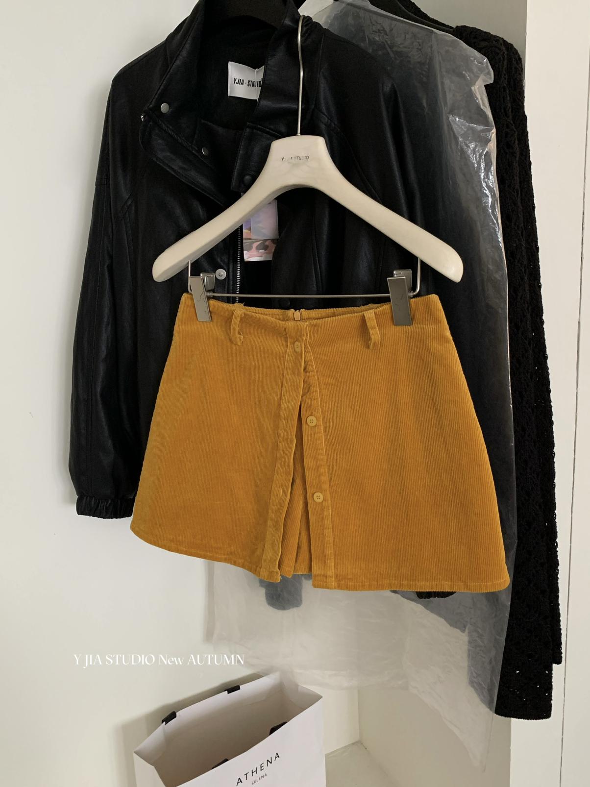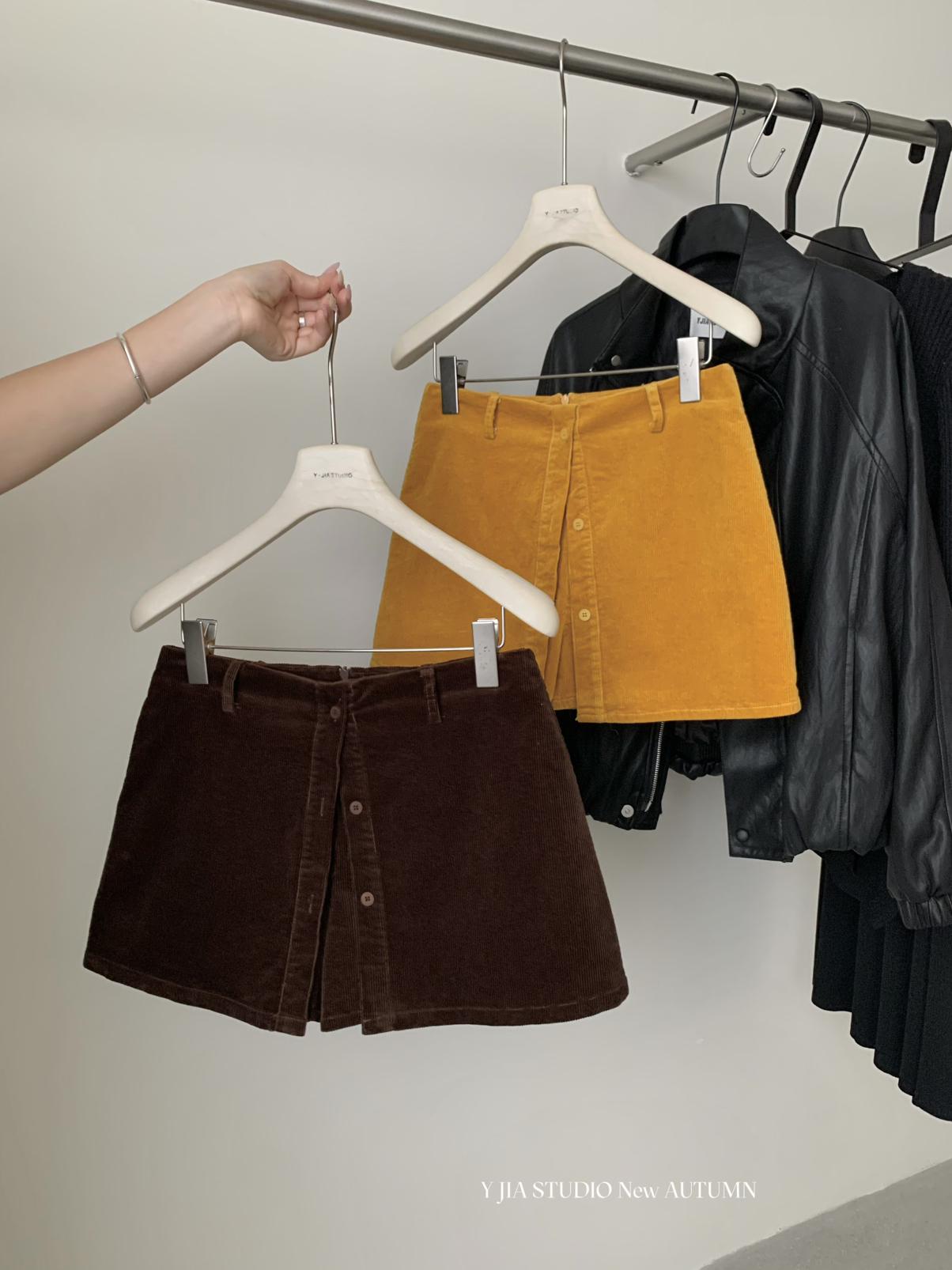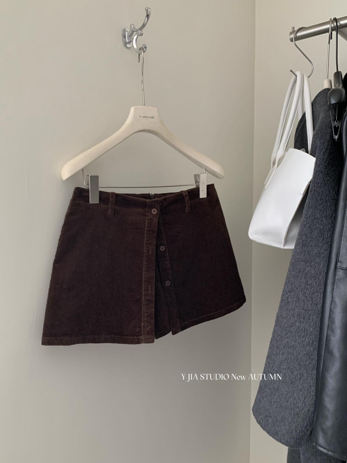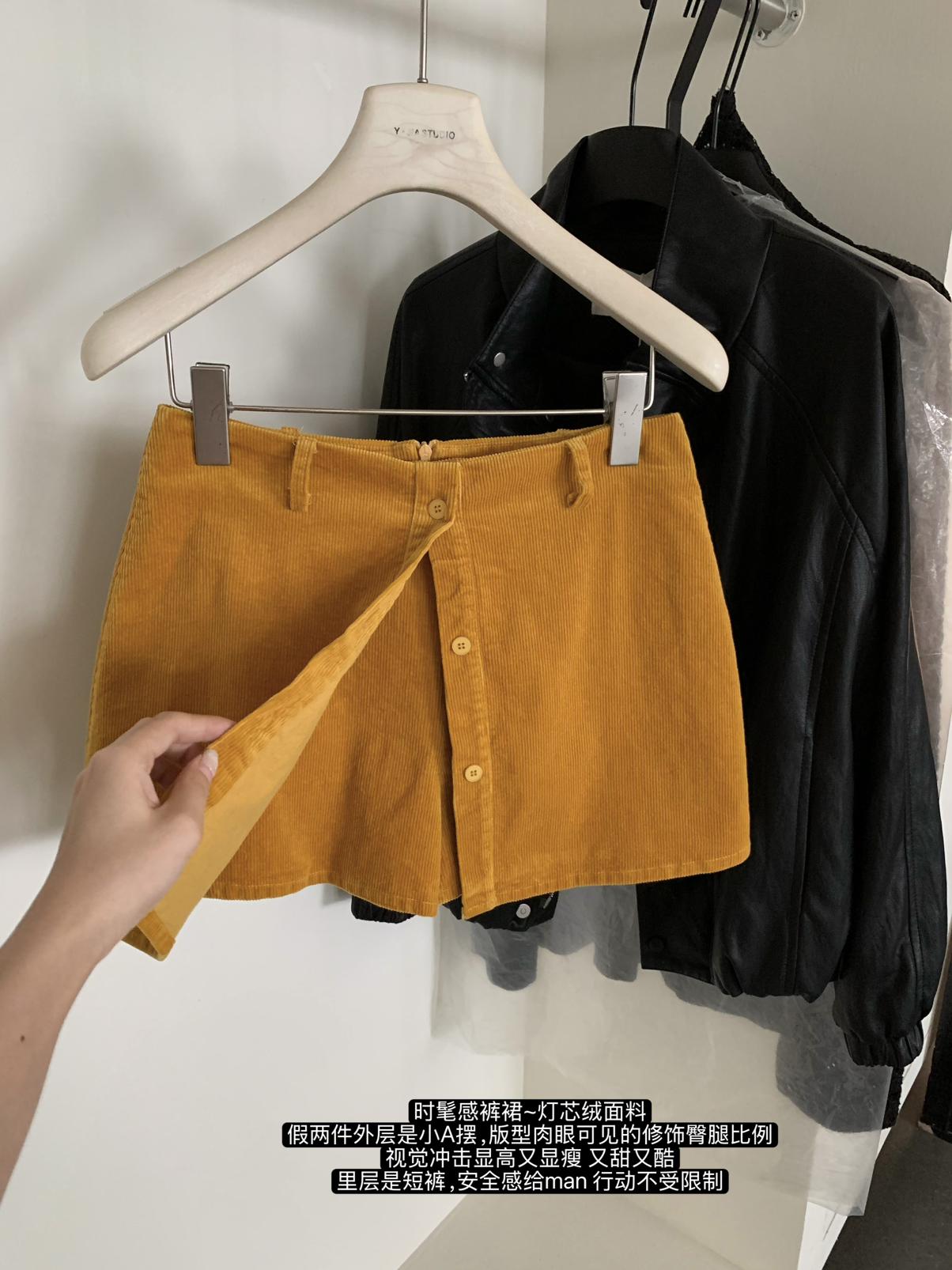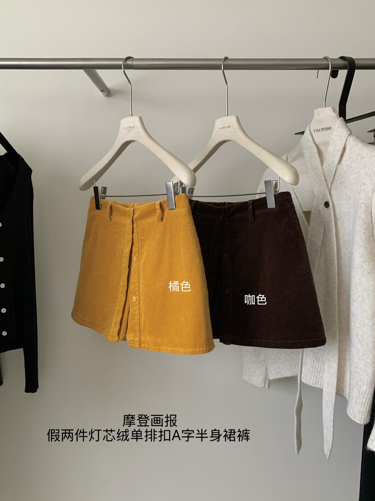 【C7221】摩登畫報 假兩件燈芯絨單排扣A字半身裙褲