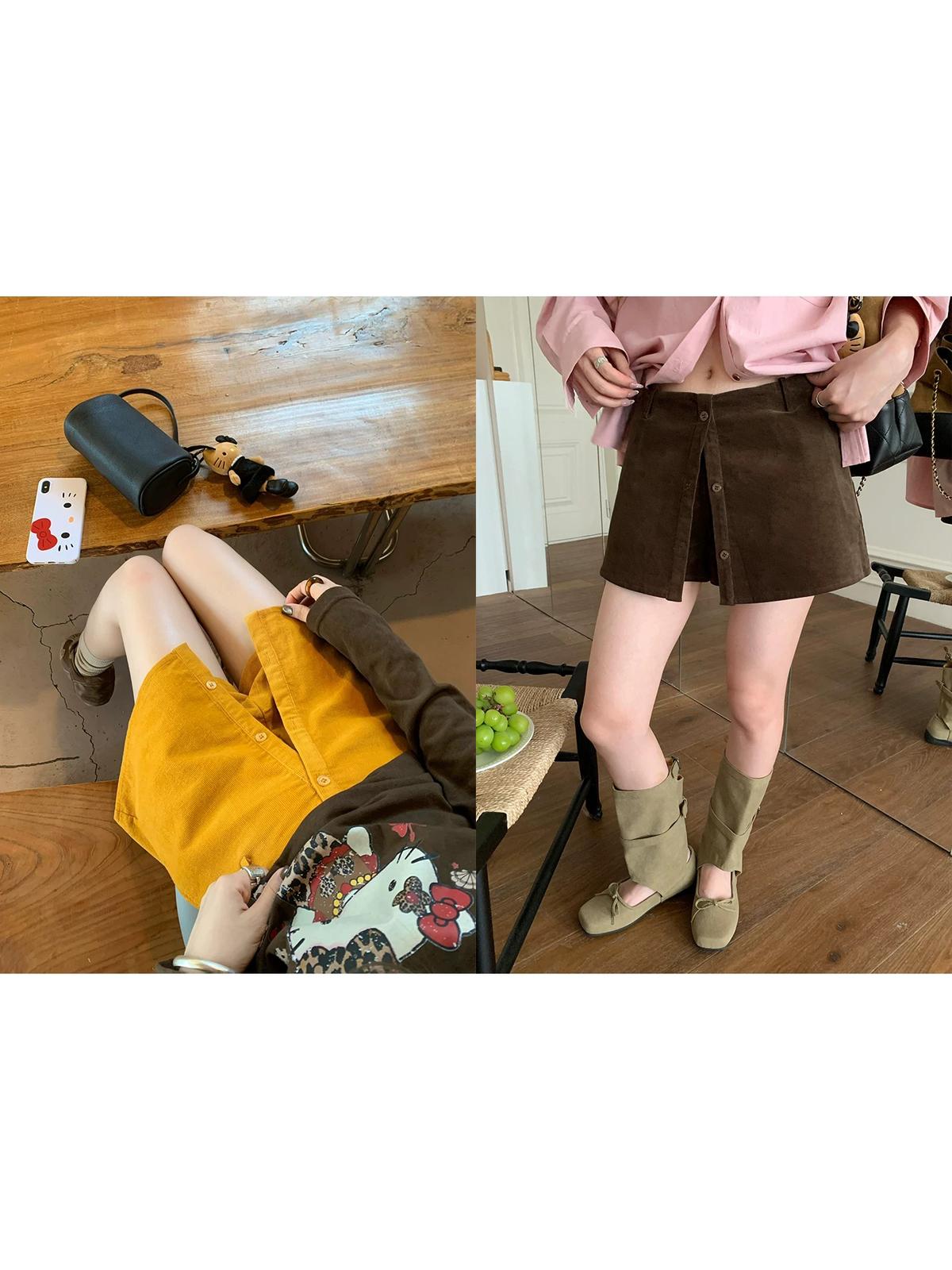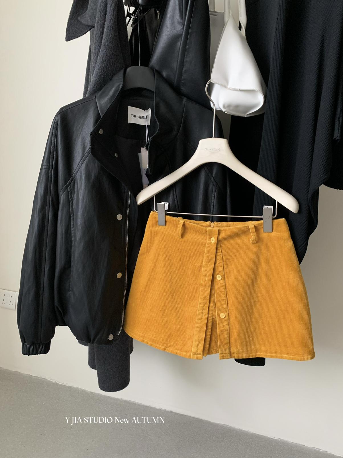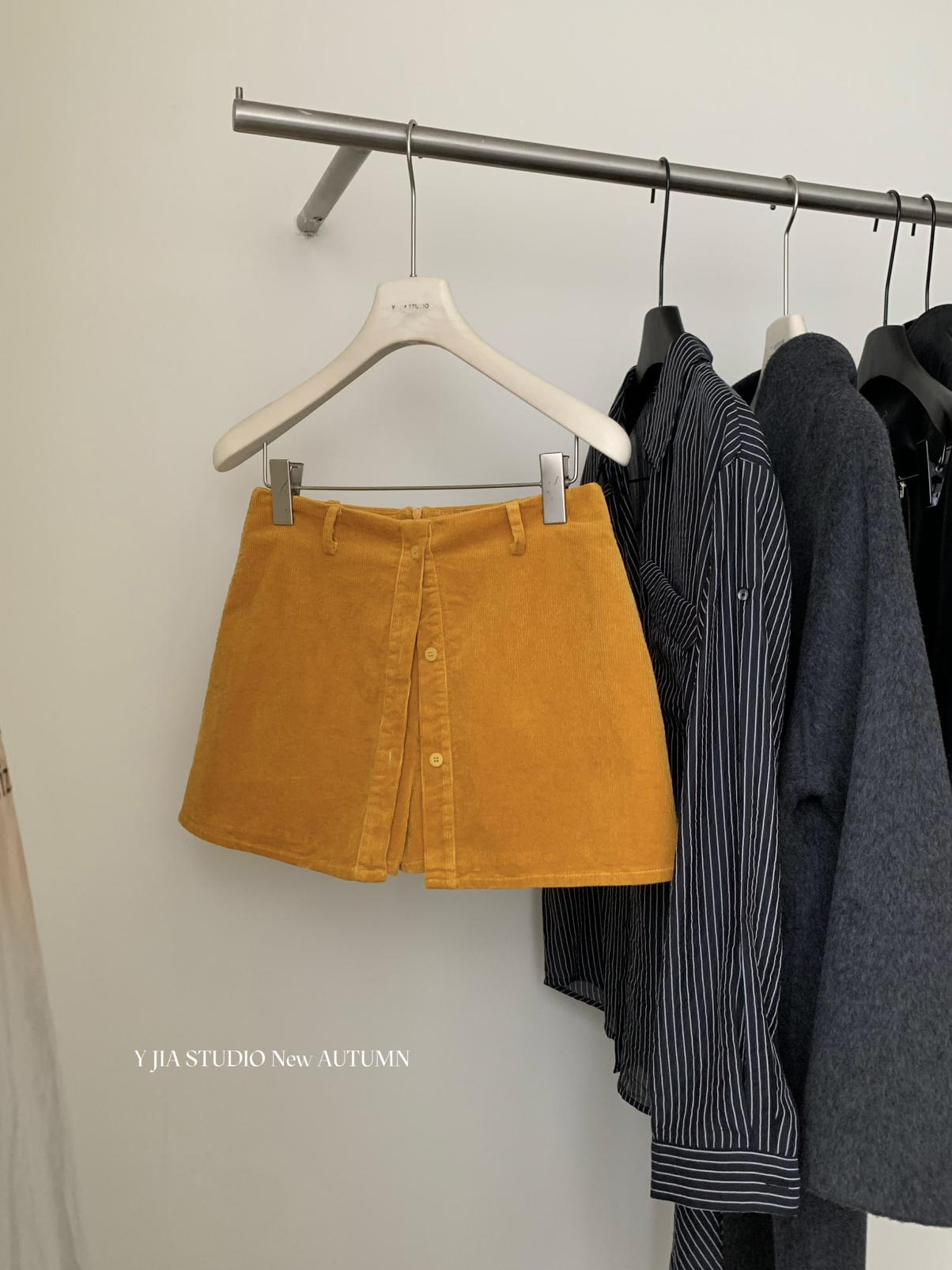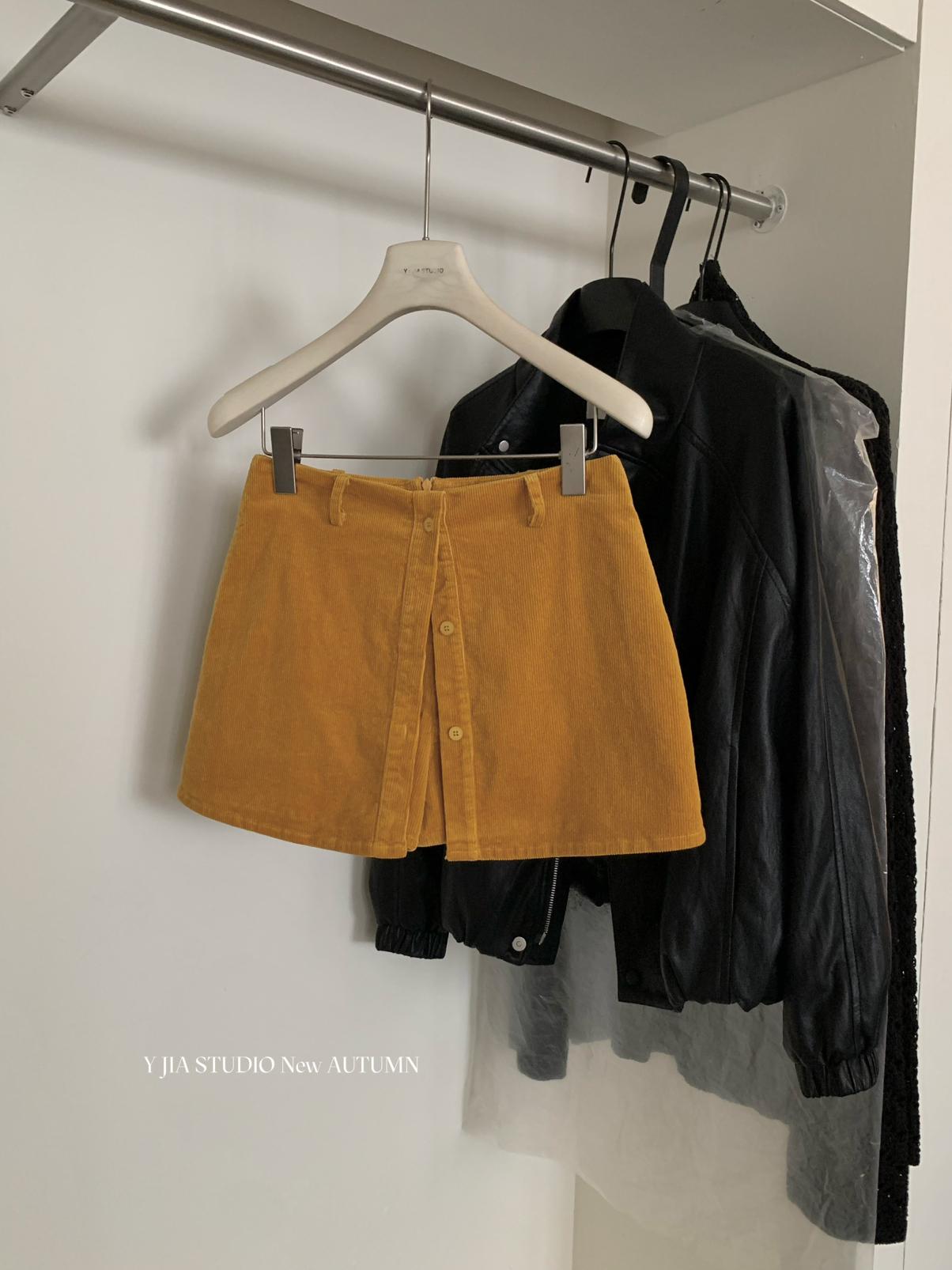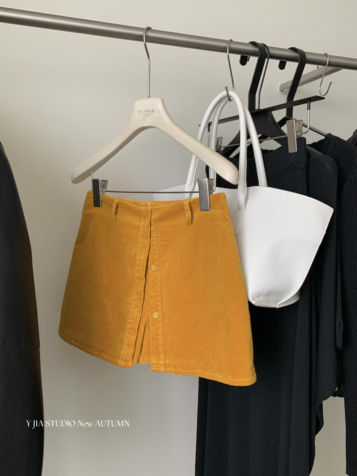 【C7221】摩登畫報 假兩件燈芯絨單排扣A字半身裙褲