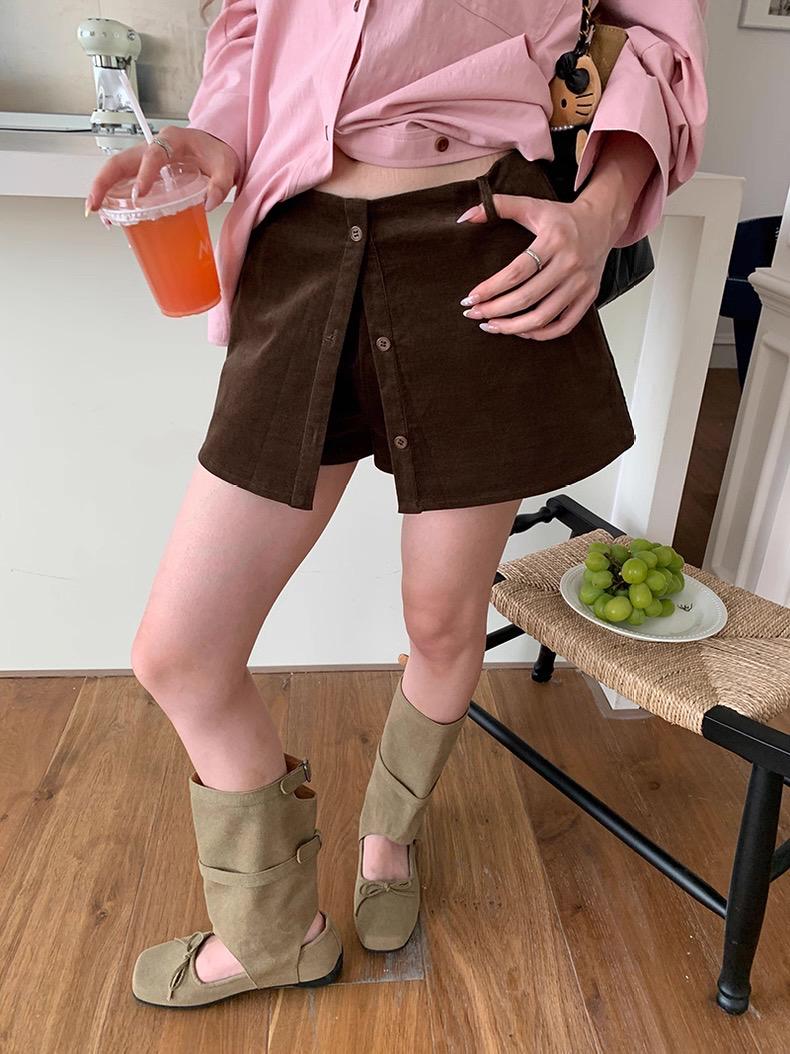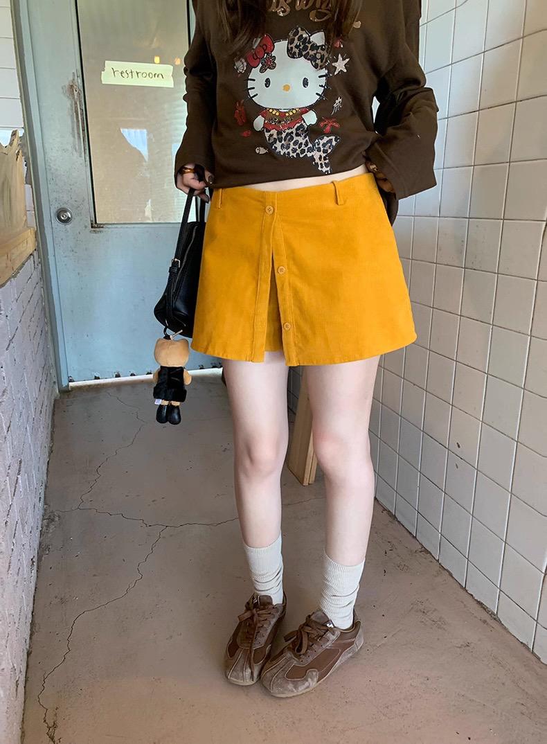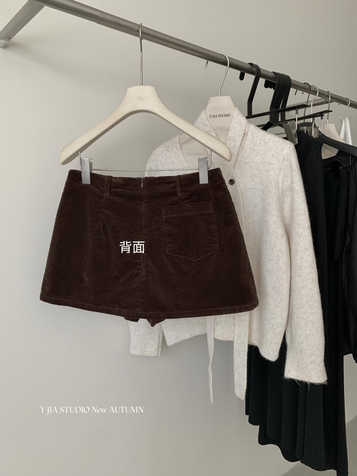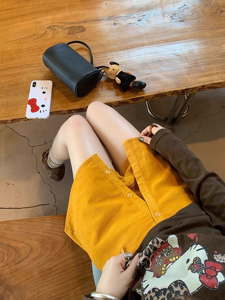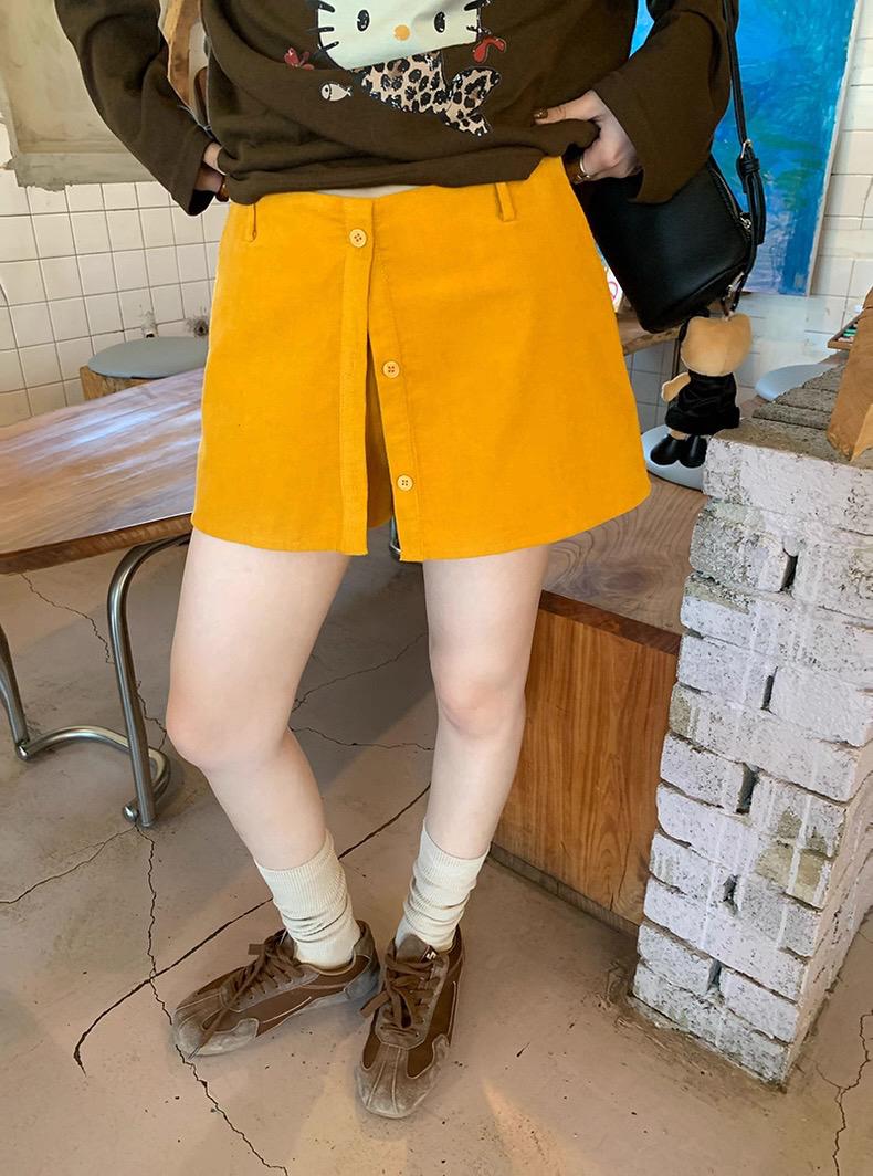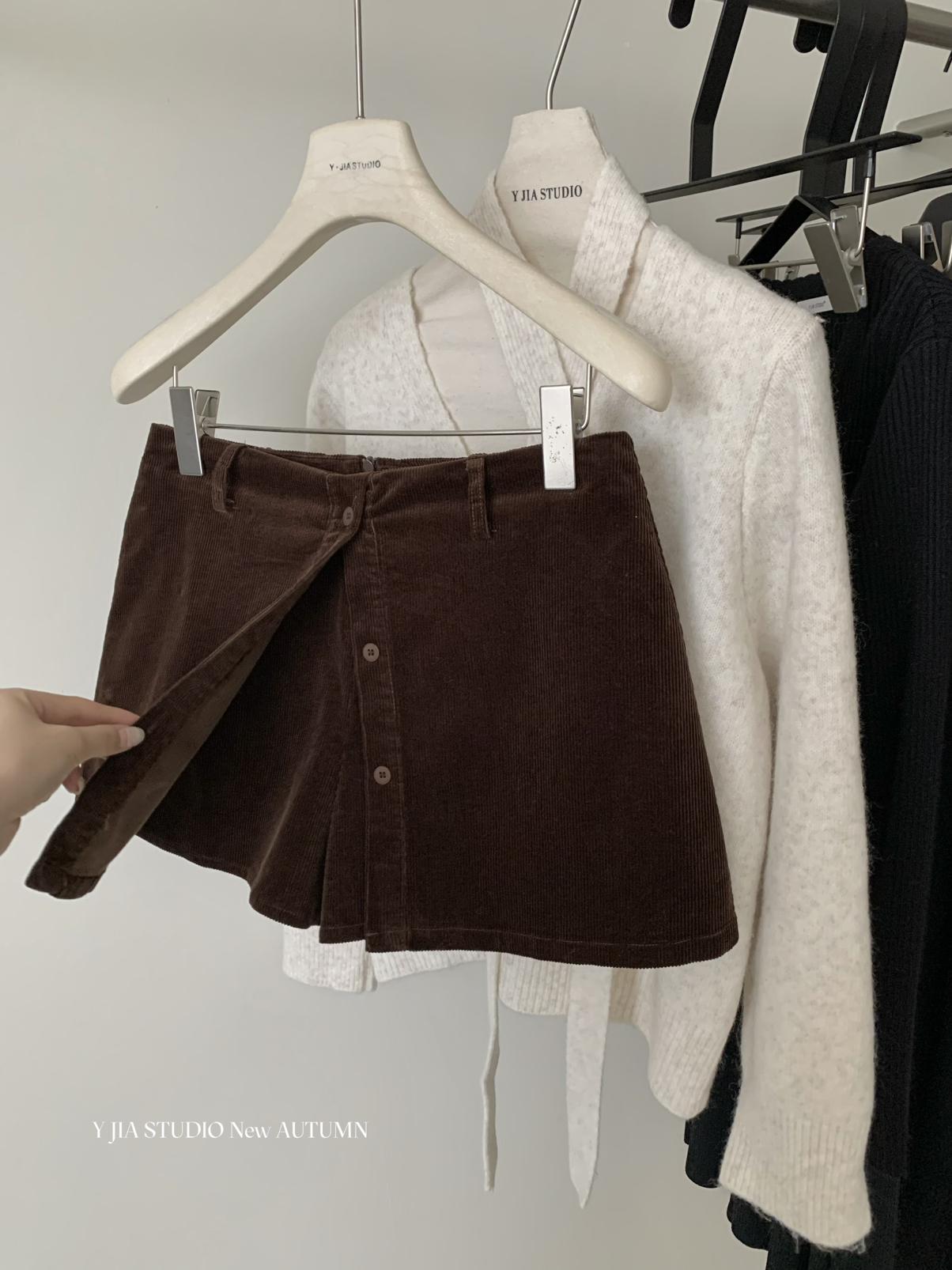 【C7221】摩登畫報 假兩件燈芯絨單排扣A字半身裙褲