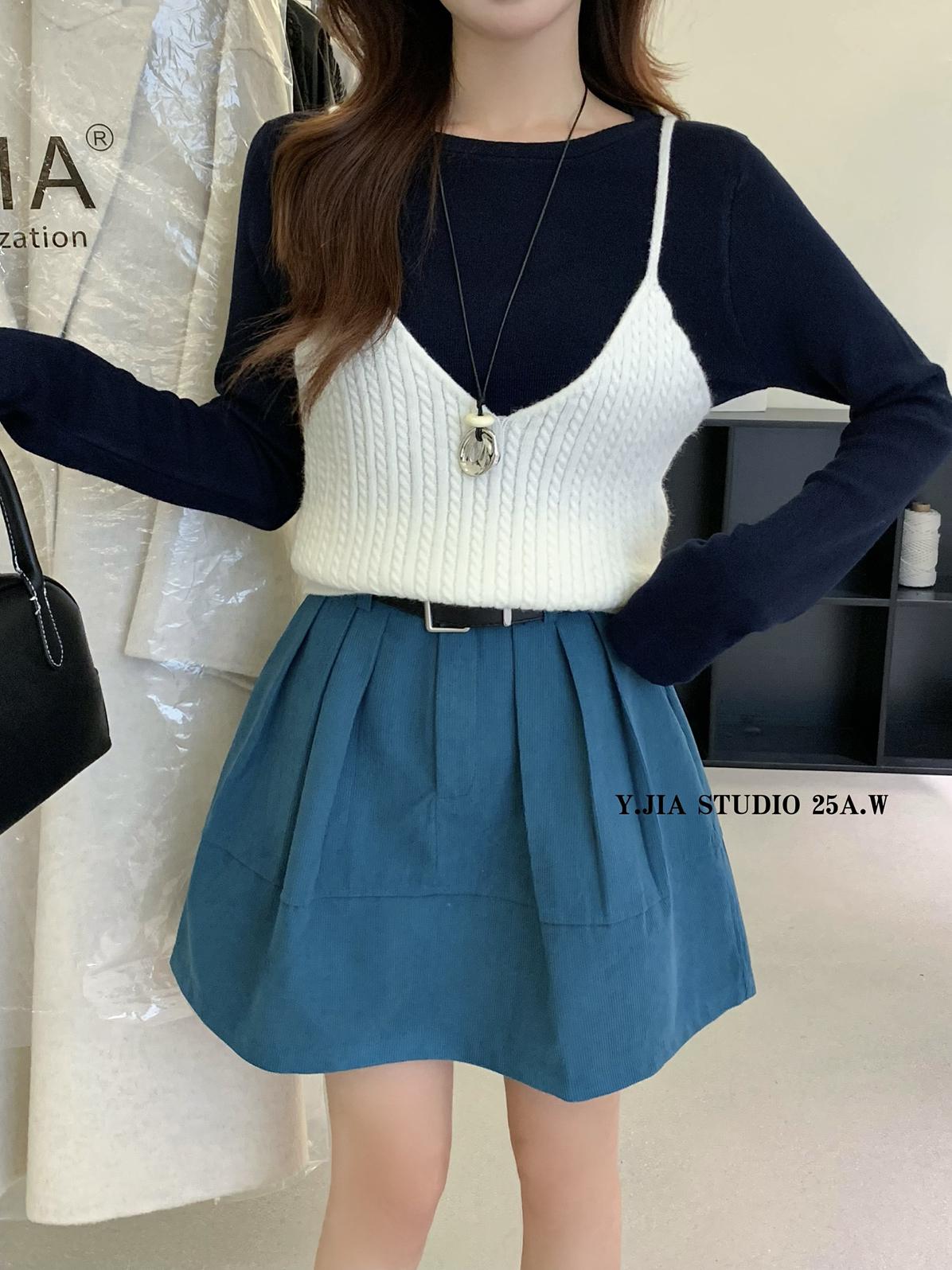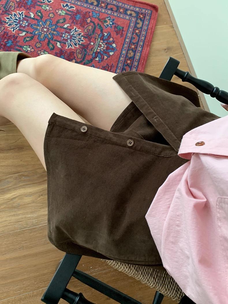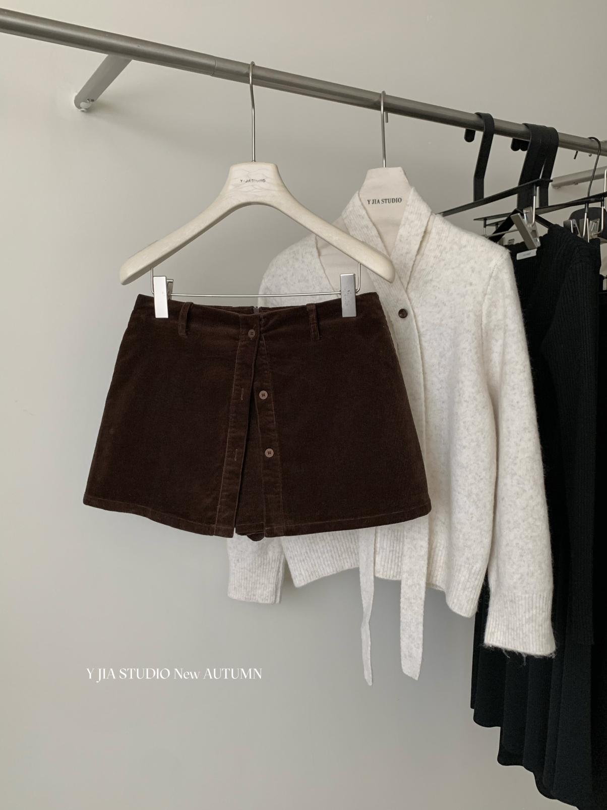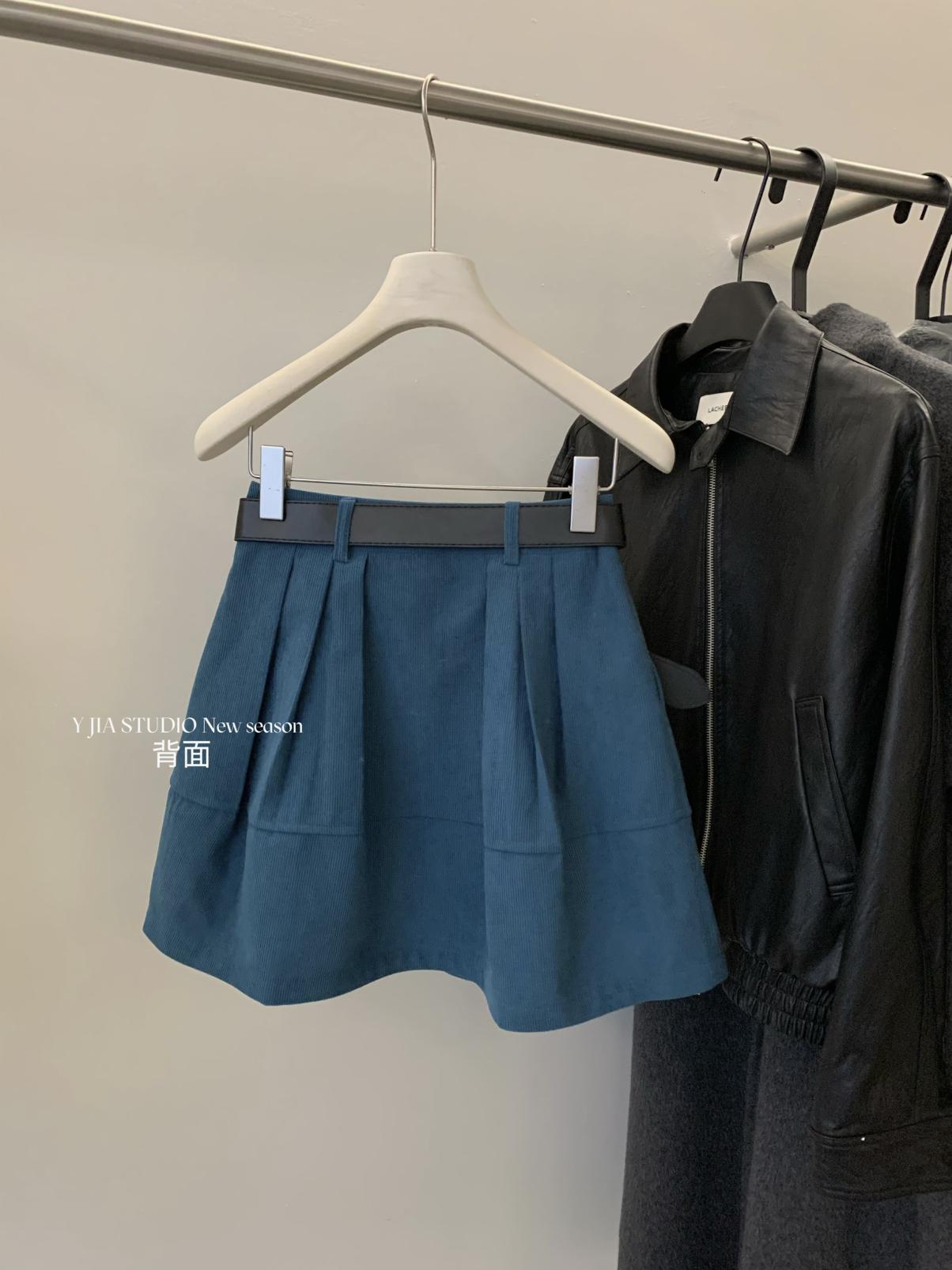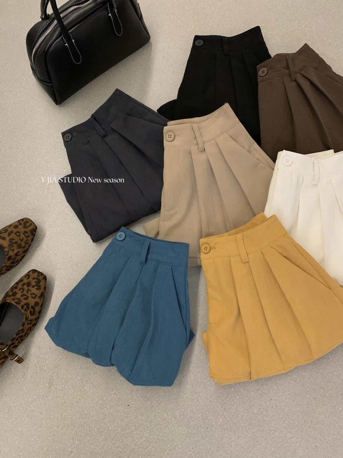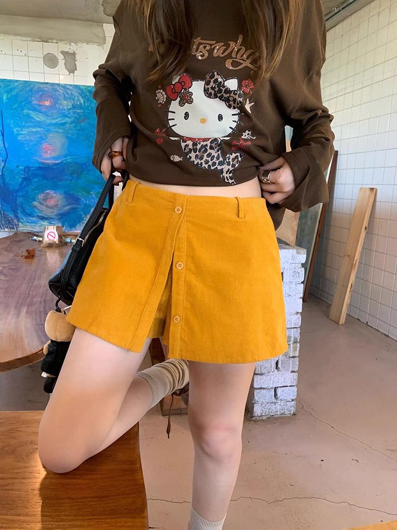 【C7221】摩登畫報 假兩件燈芯絨單排扣A字半身裙褲