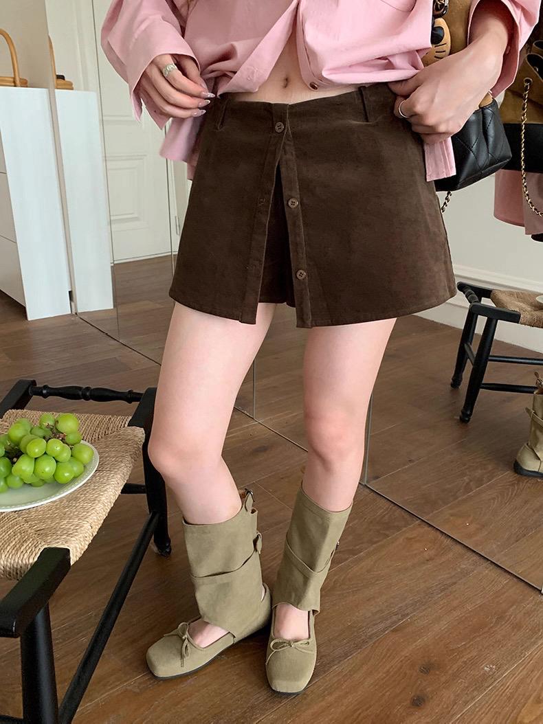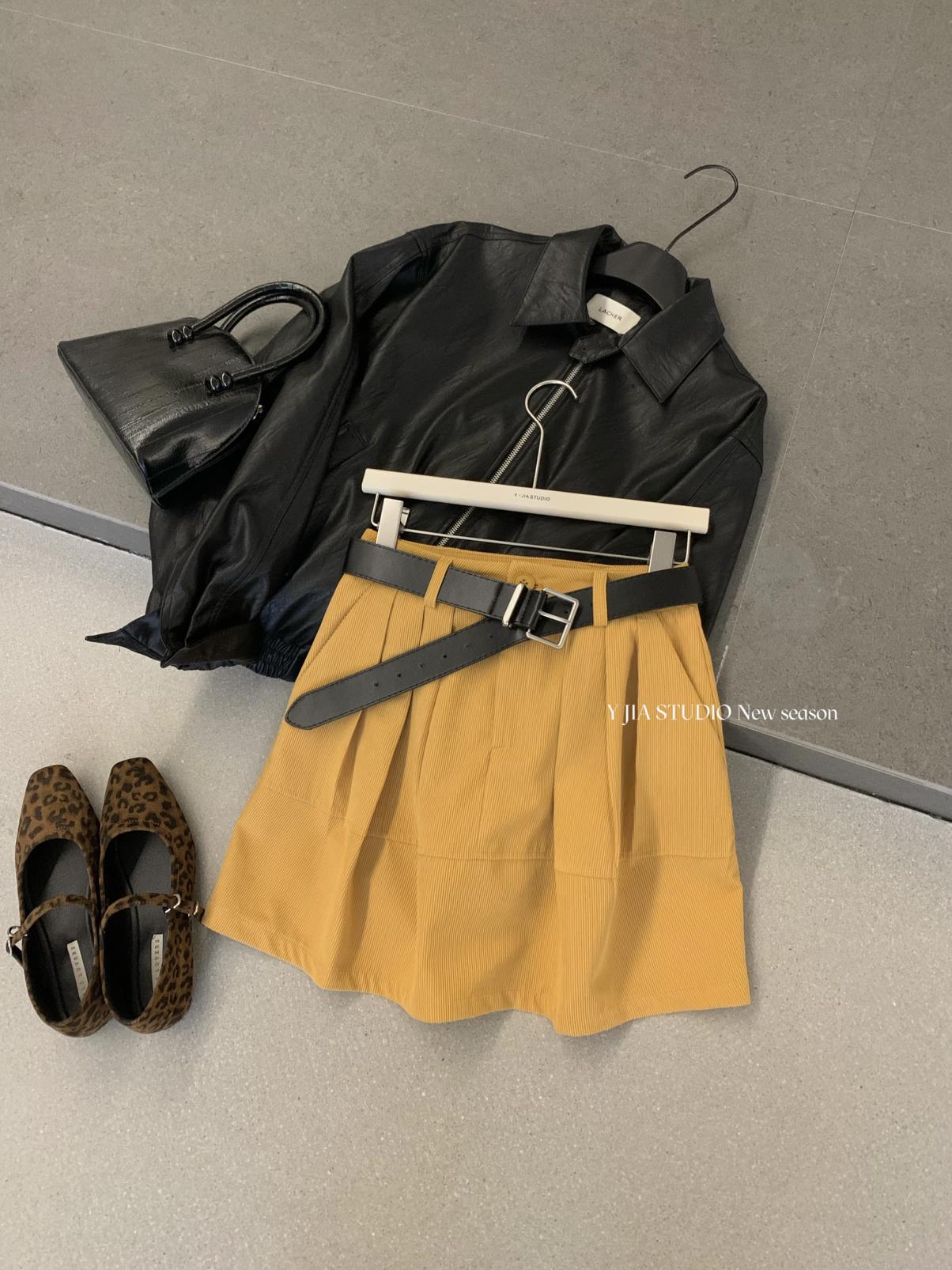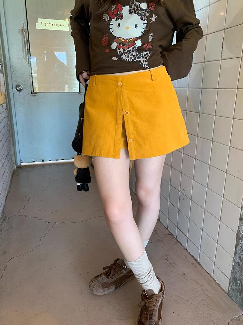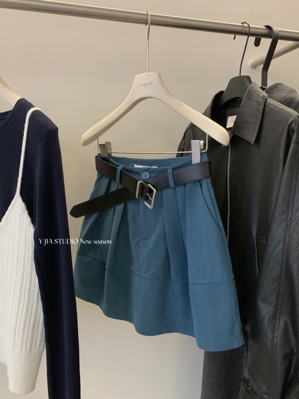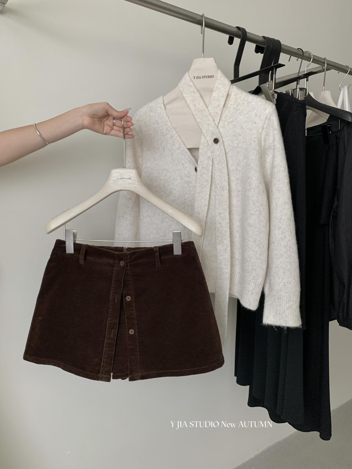 【C7221】摩登畫報 假兩件燈芯絨單排扣A字半身裙褲