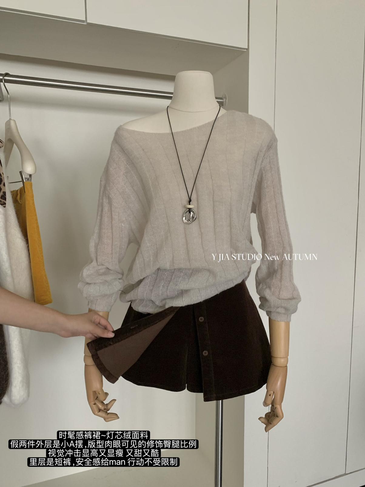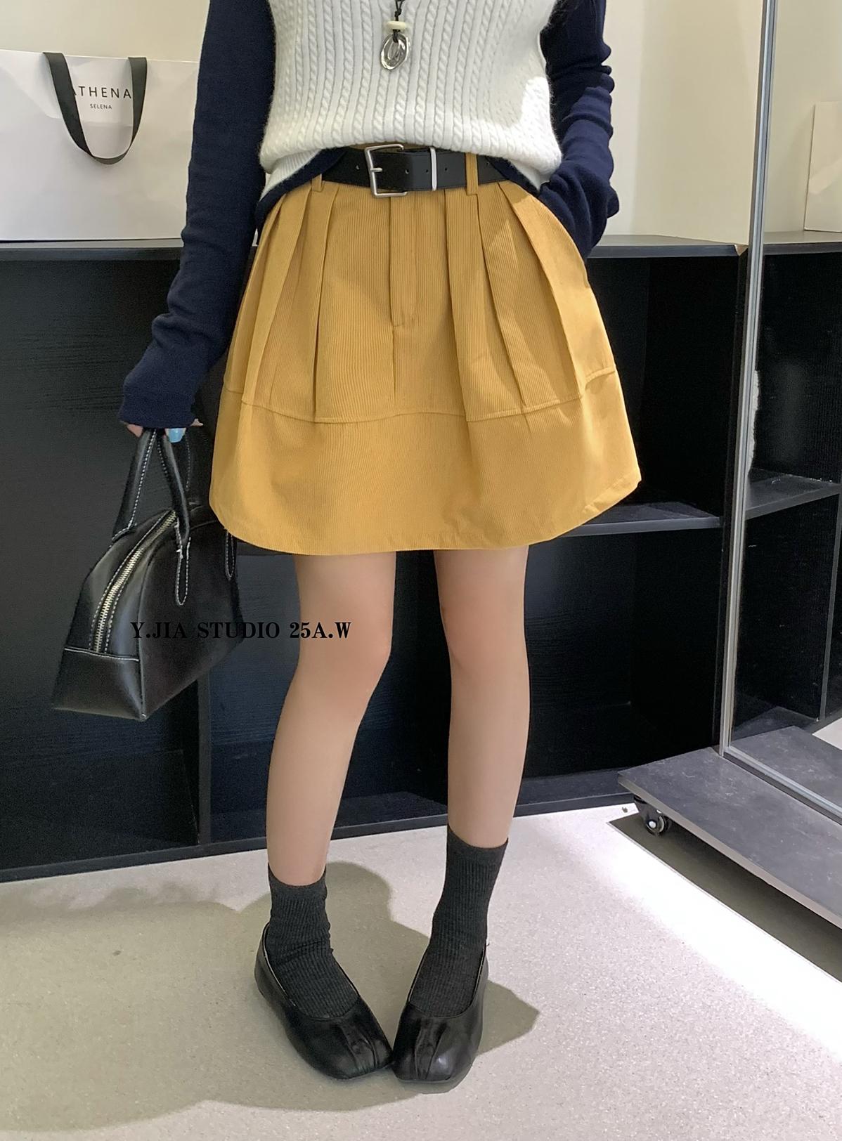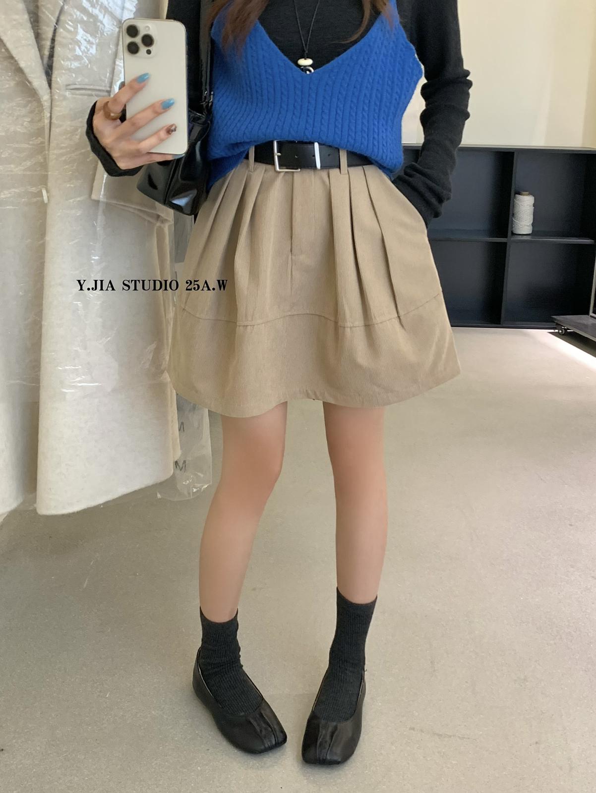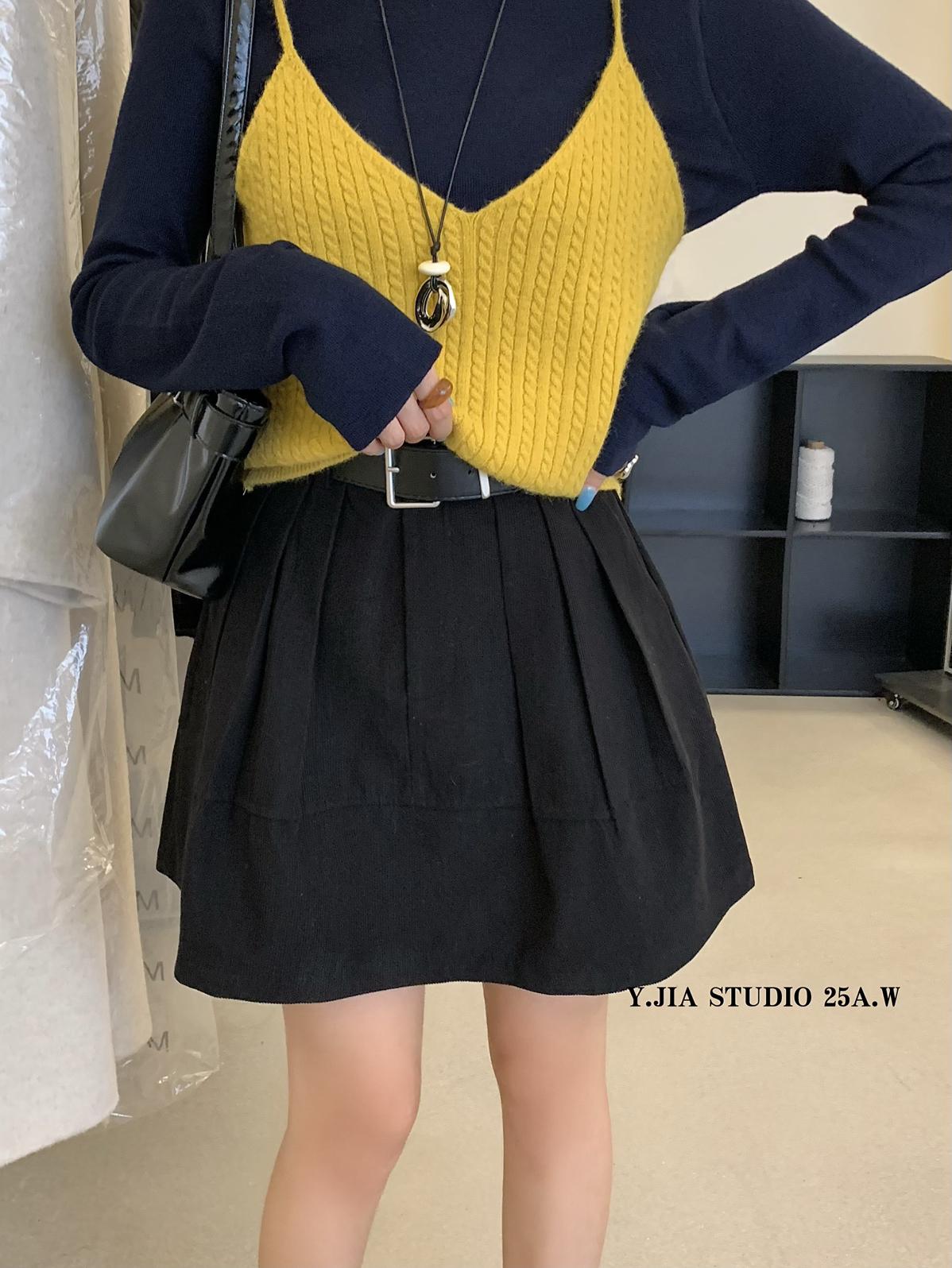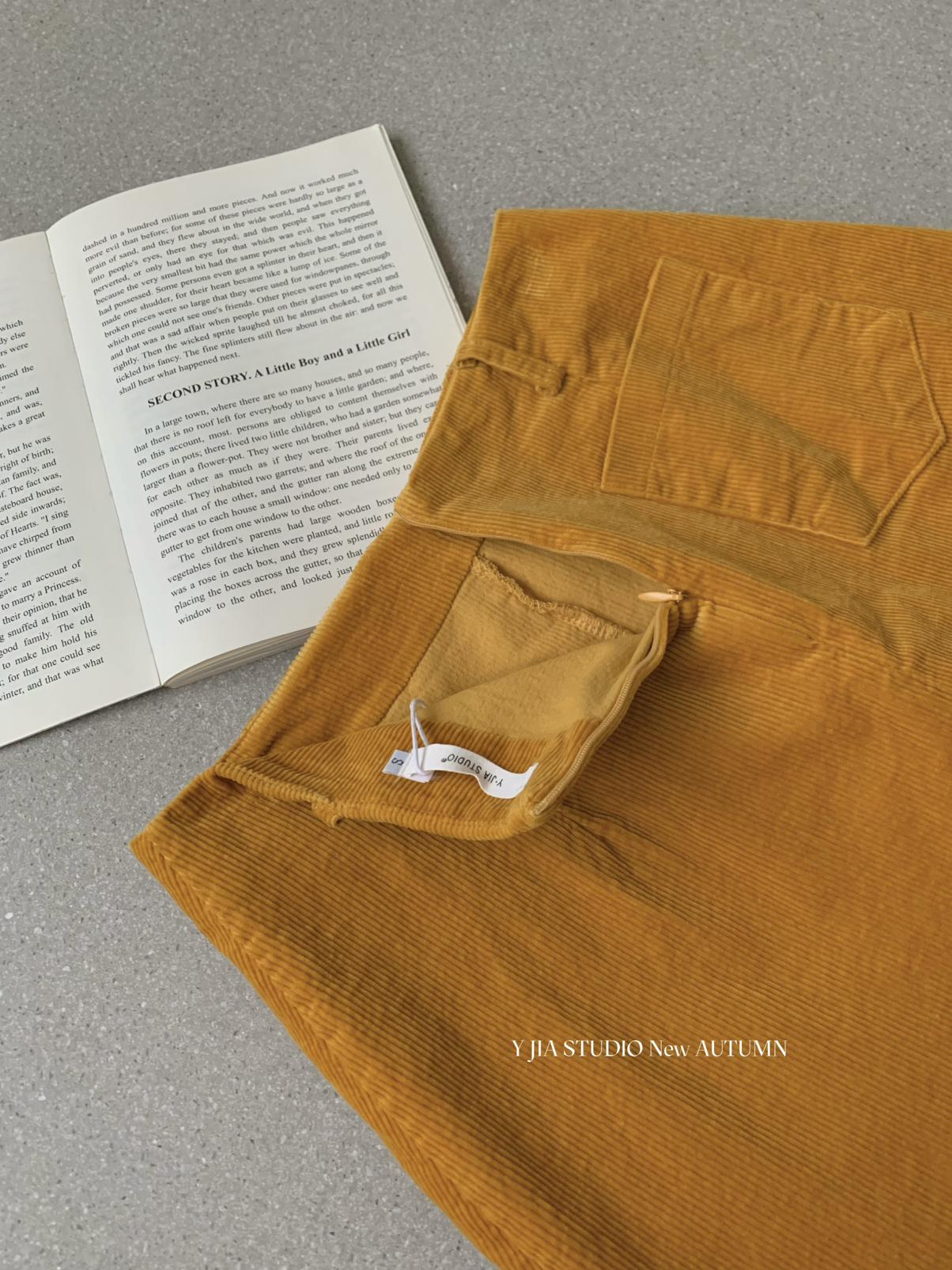 【C7221】摩登畫報 假兩件燈芯絨單排扣A字半身裙褲