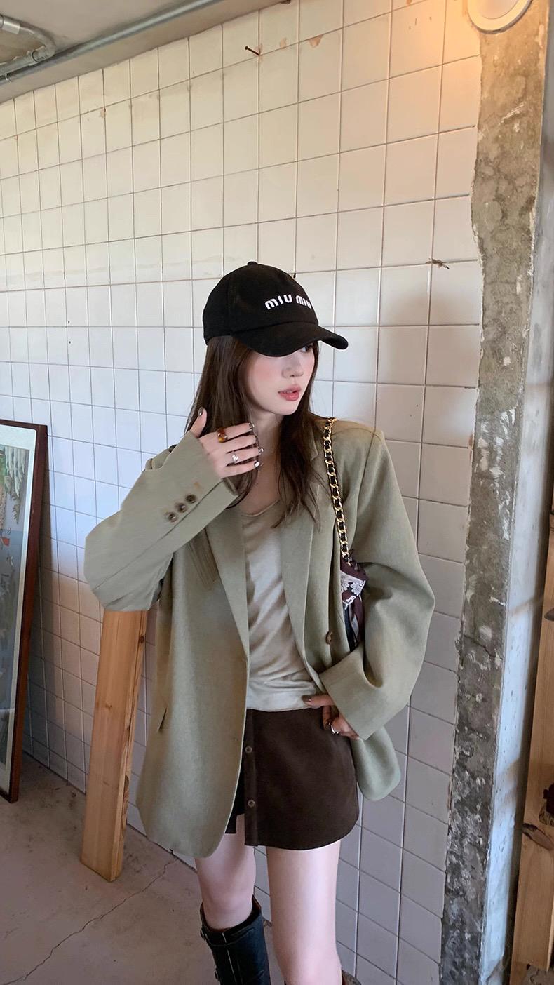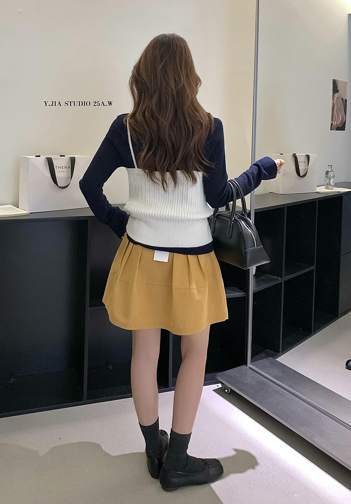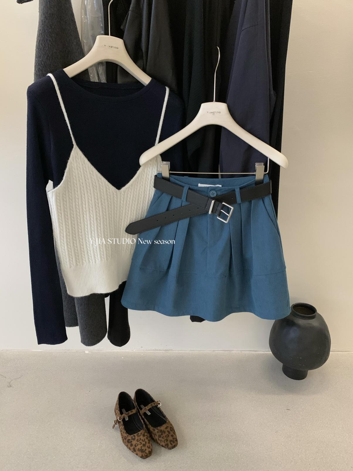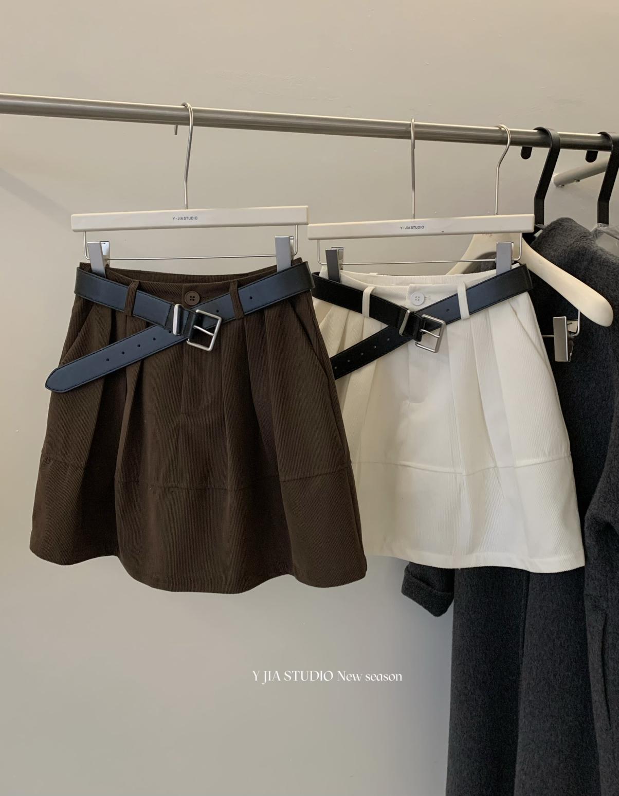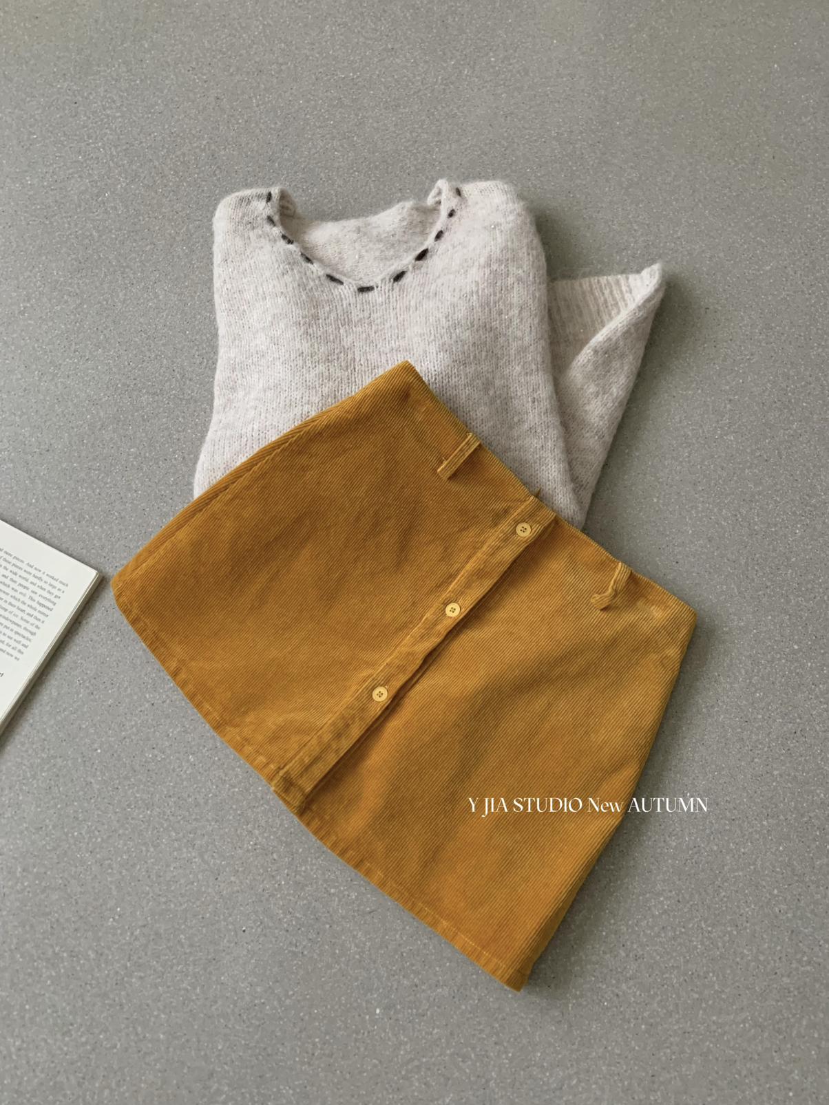 【C7221】摩登畫報 假兩件燈芯絨單排扣A字半身裙褲