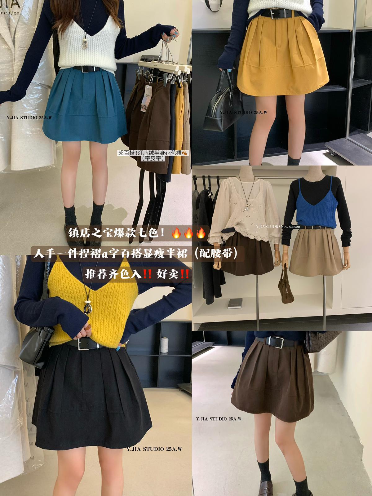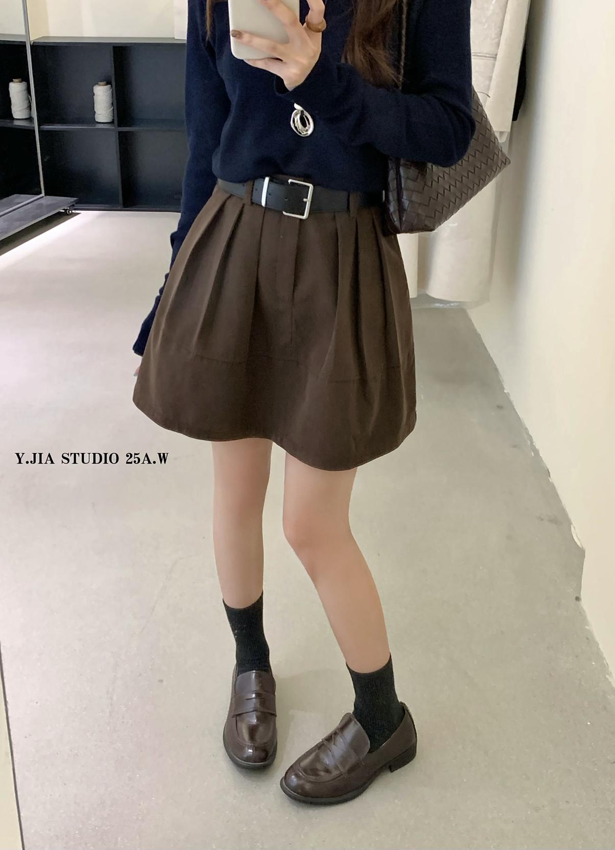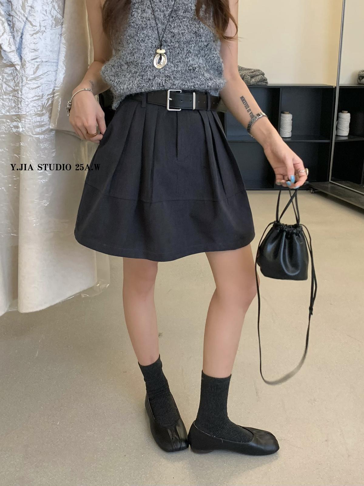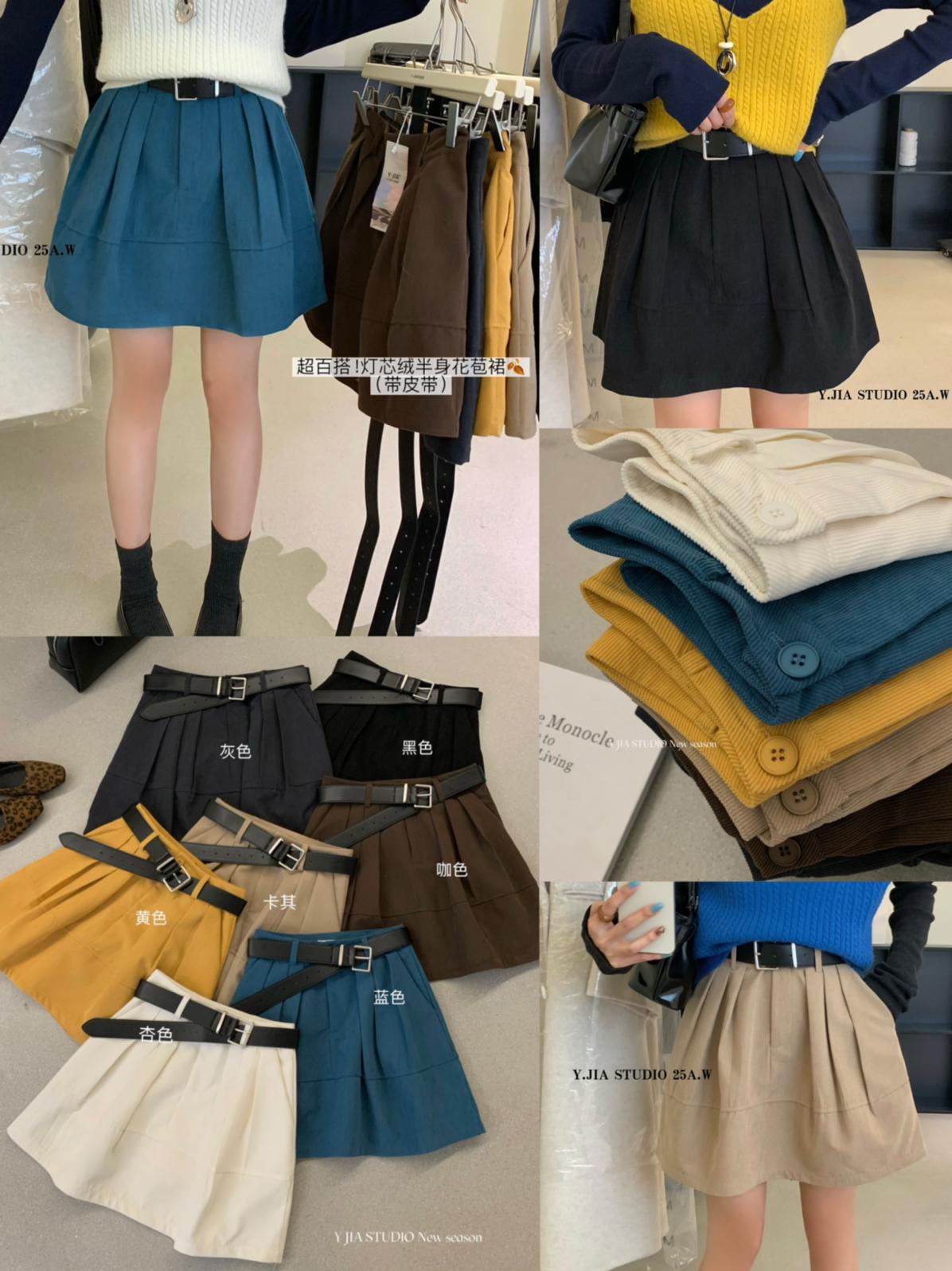 【C7227】全員自留款”百搭花苞半身裙(配腰帶)