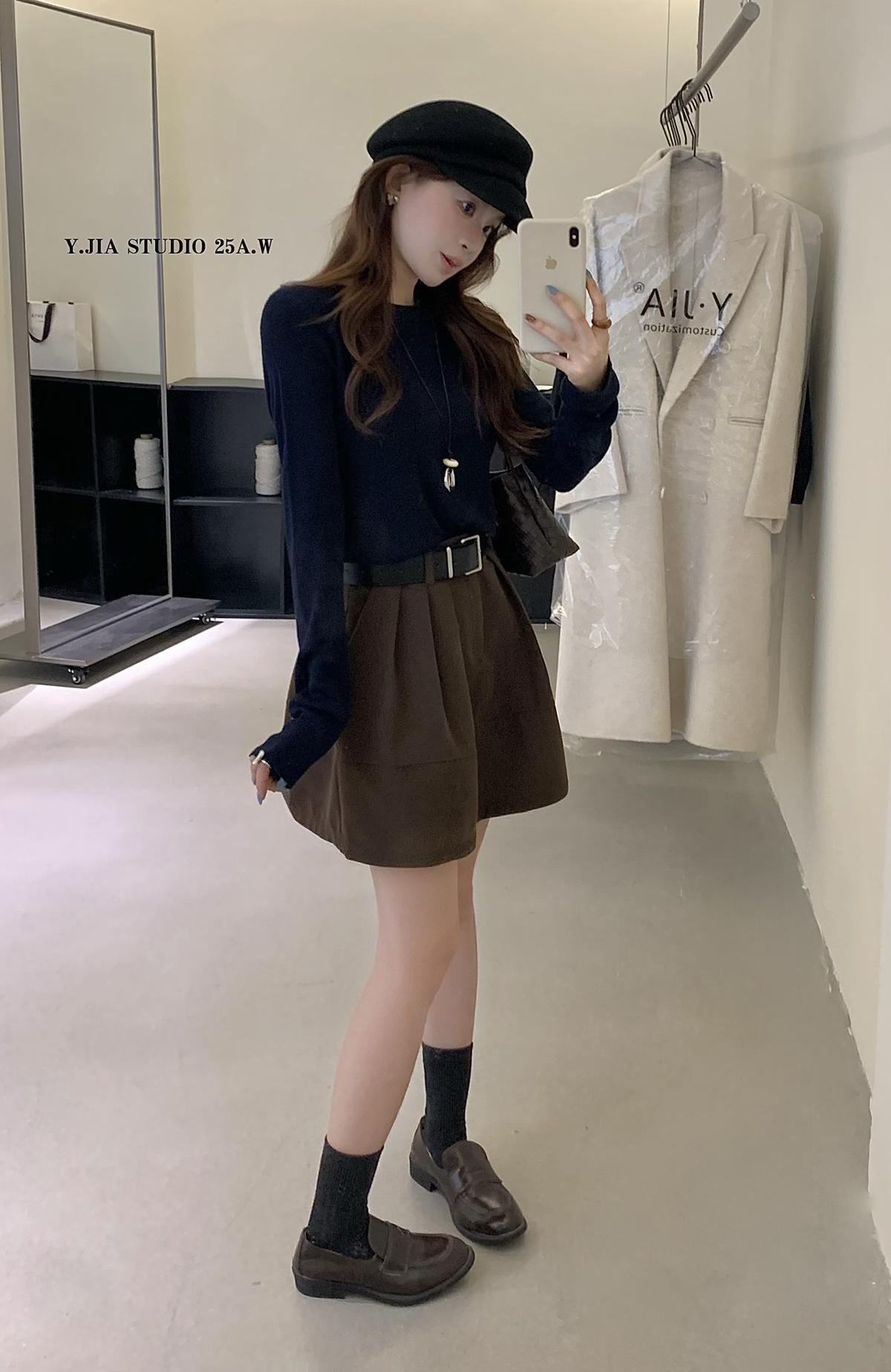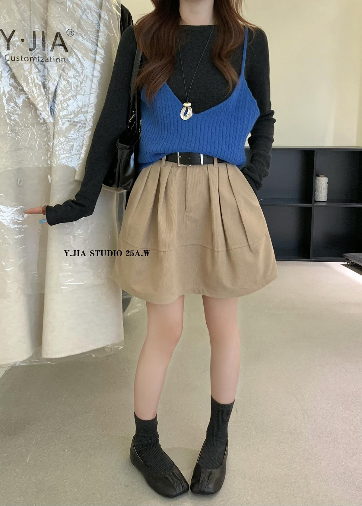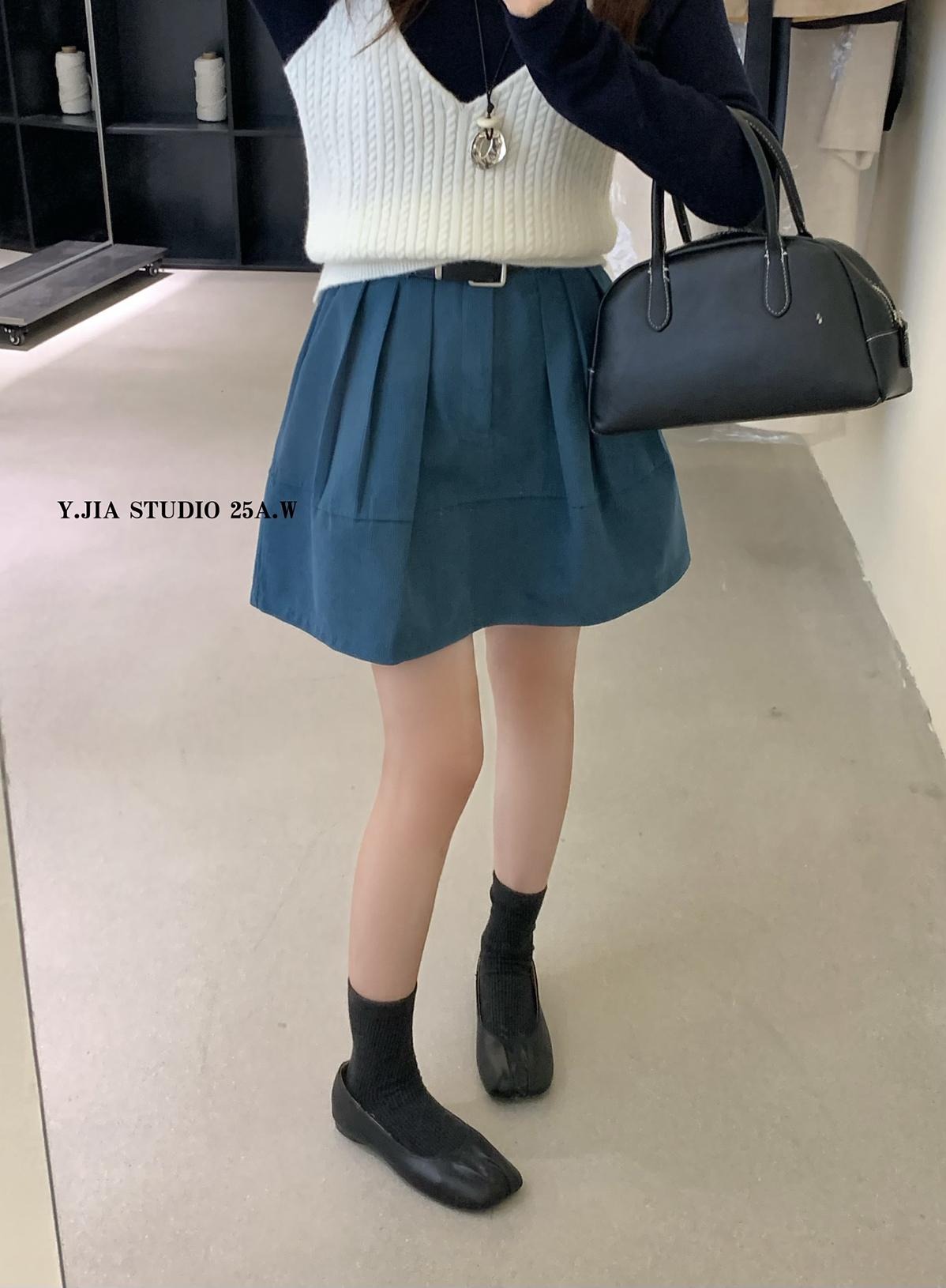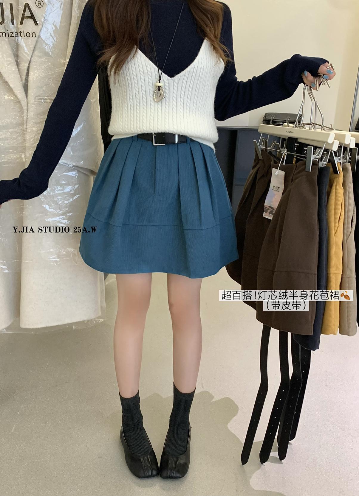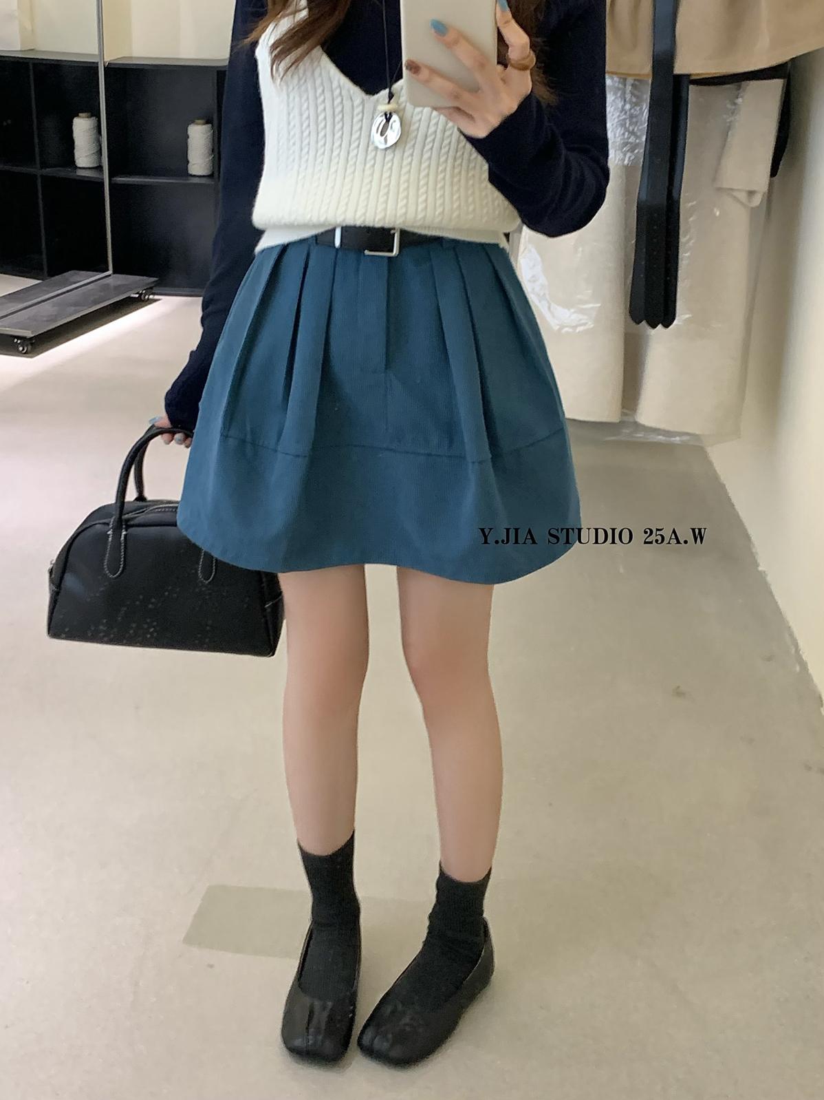 【C7227】全員自留款”百搭花苞半身裙(配腰帶)
