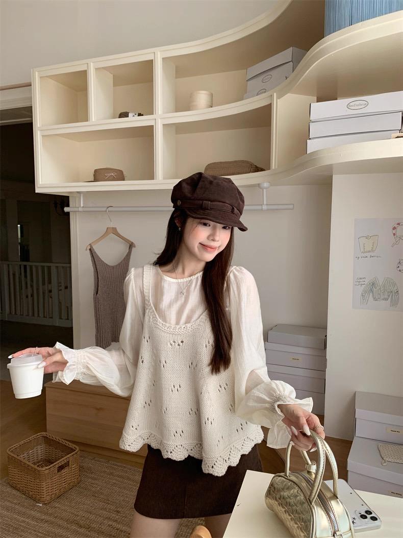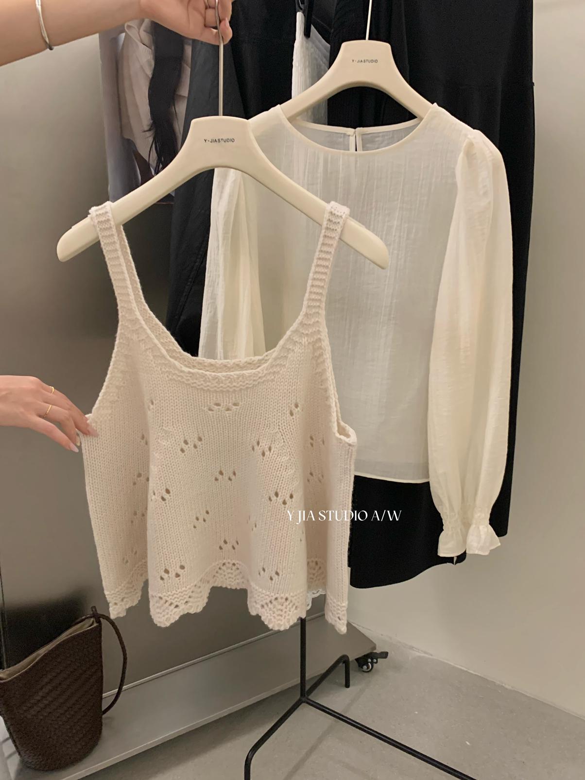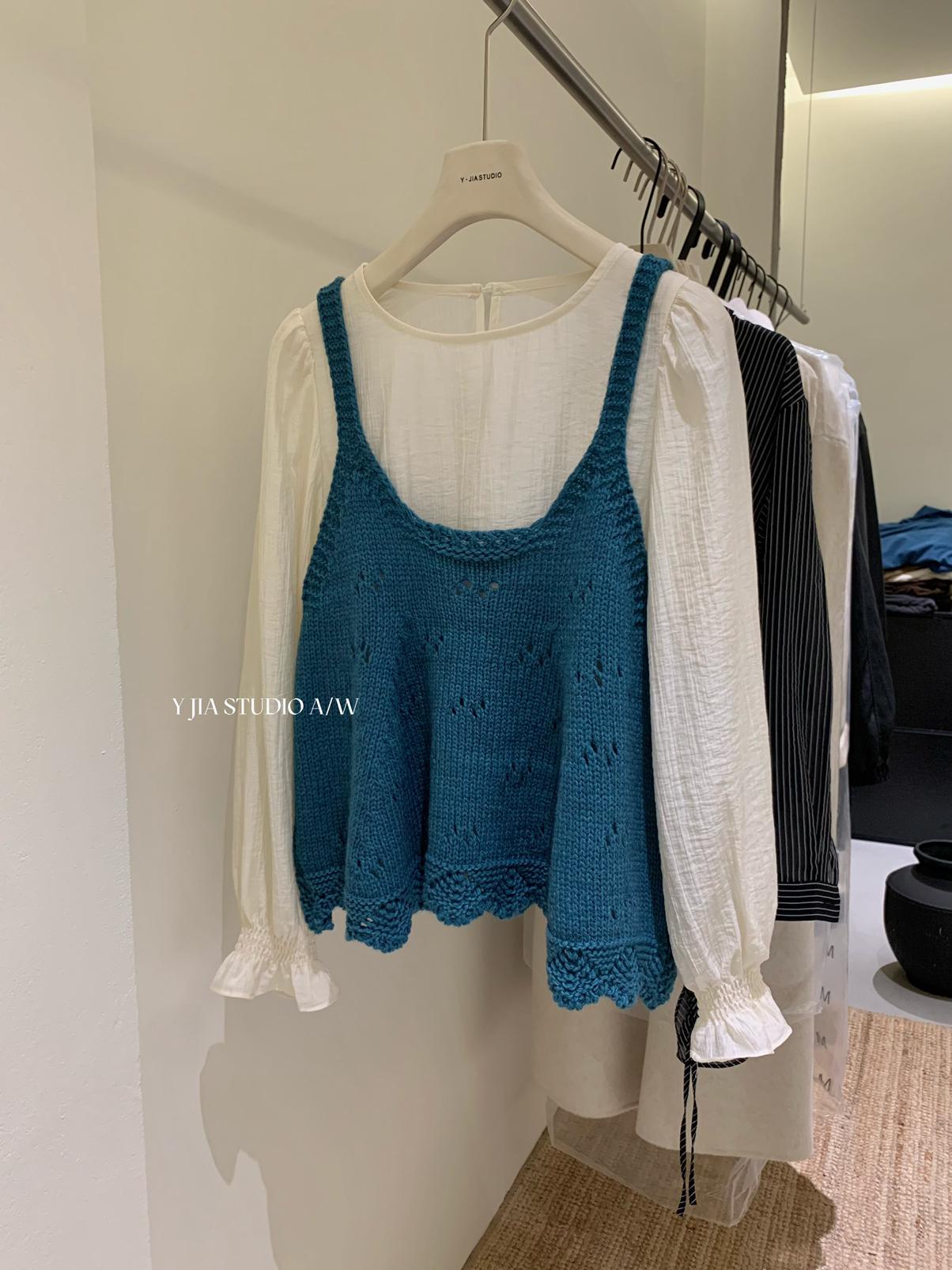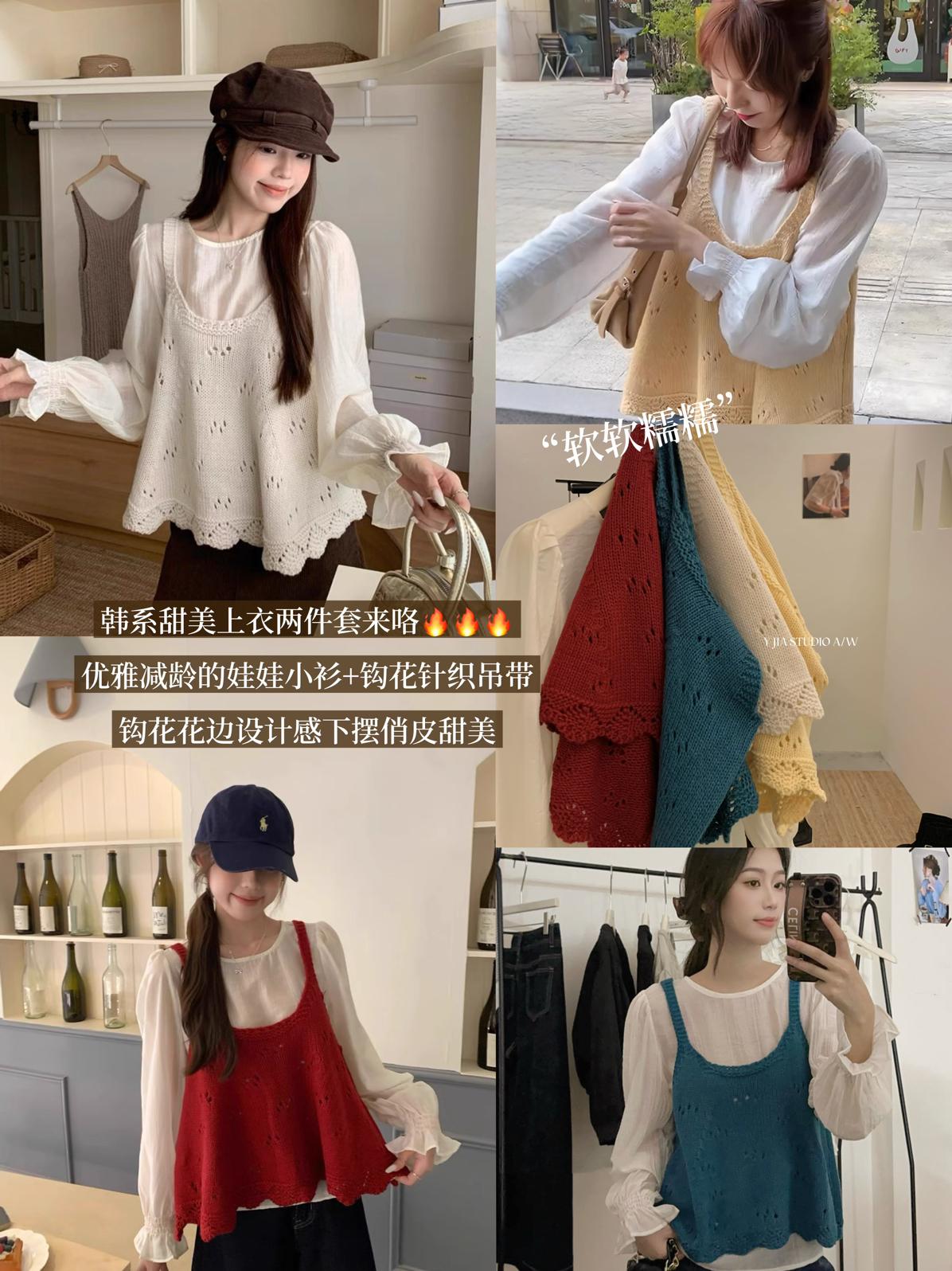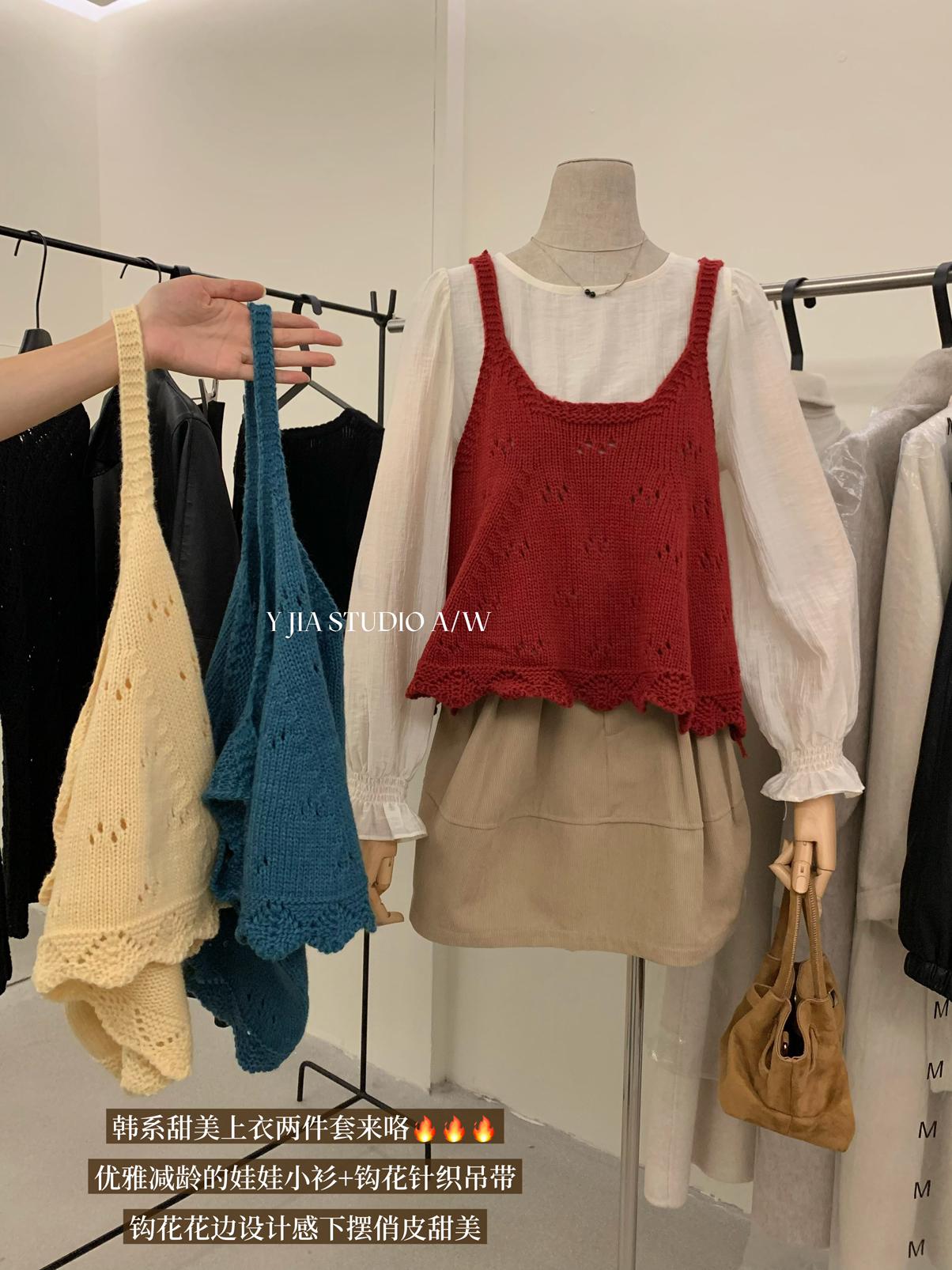 【C7228】甜美減齡娃娃小衫+鉤花針織吊帶背心套裝