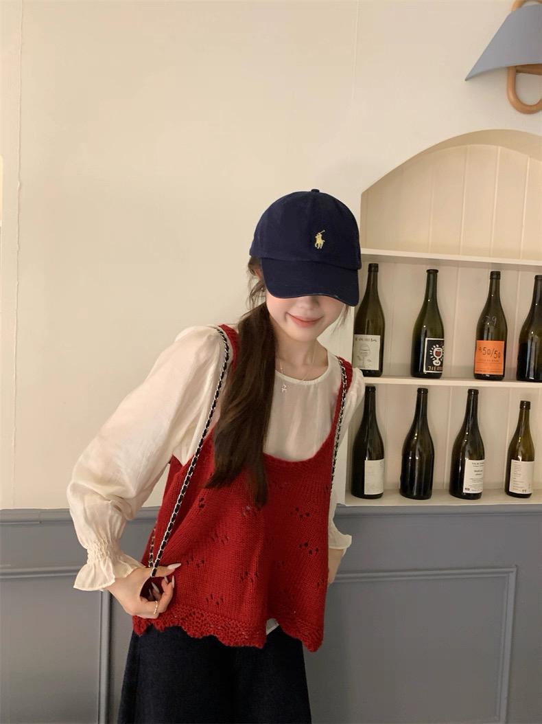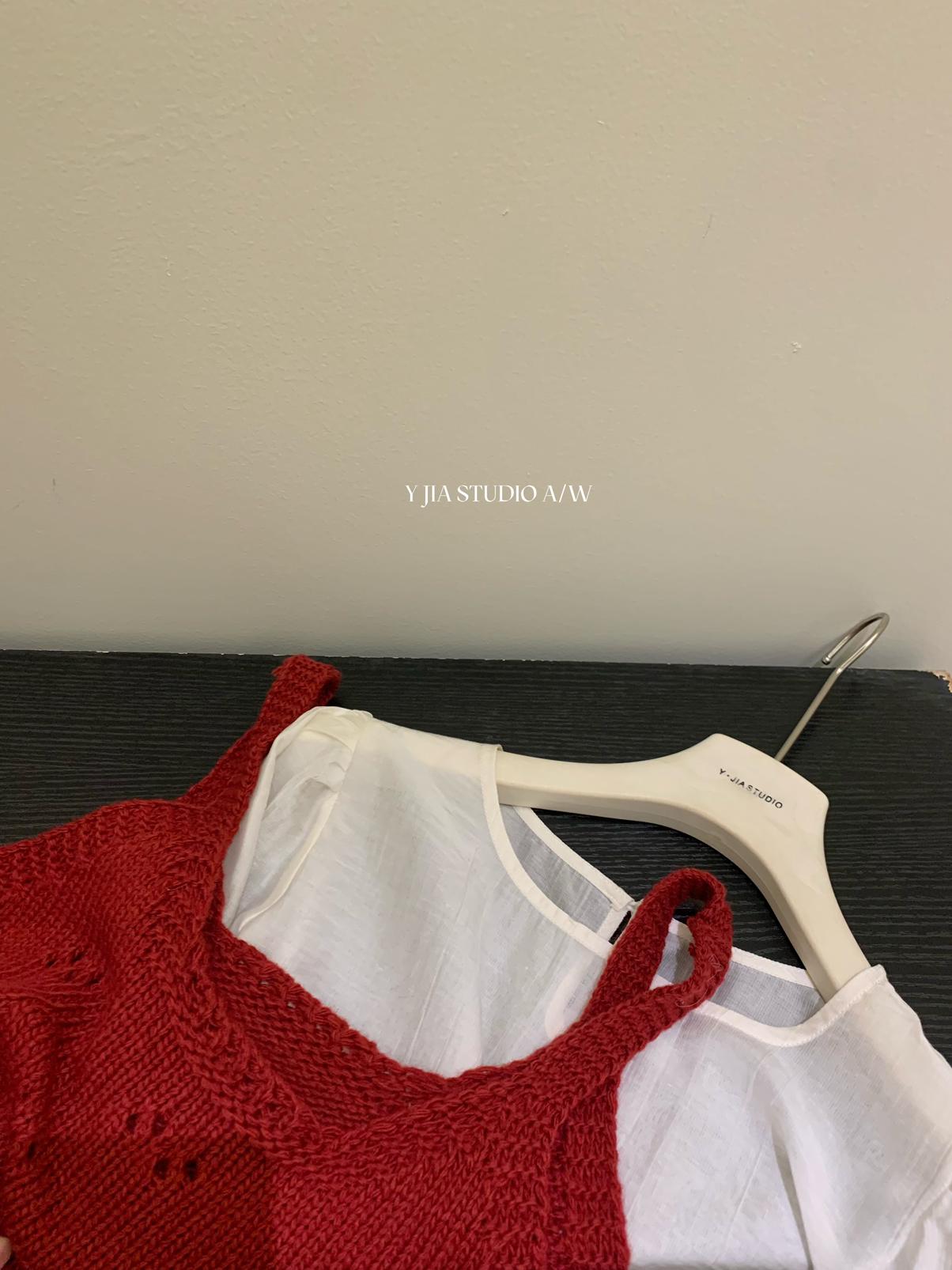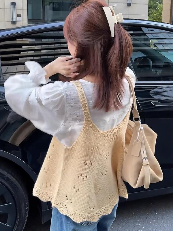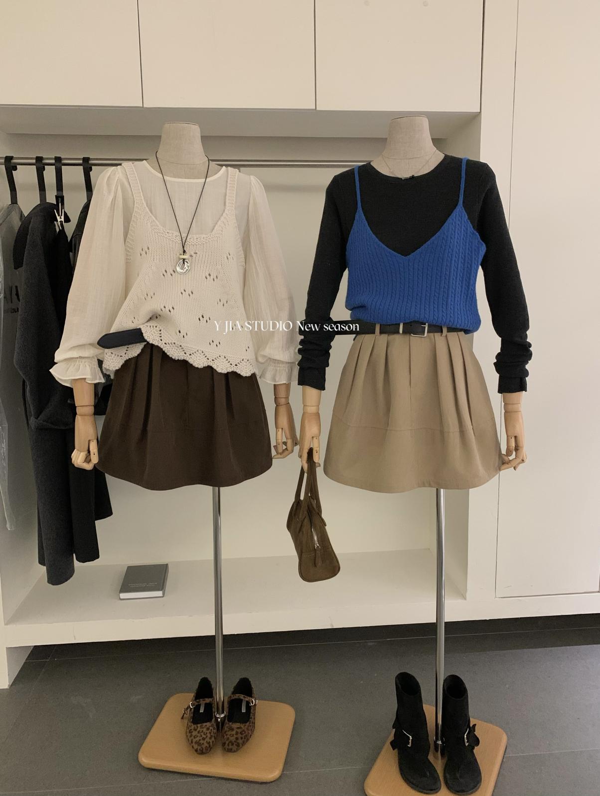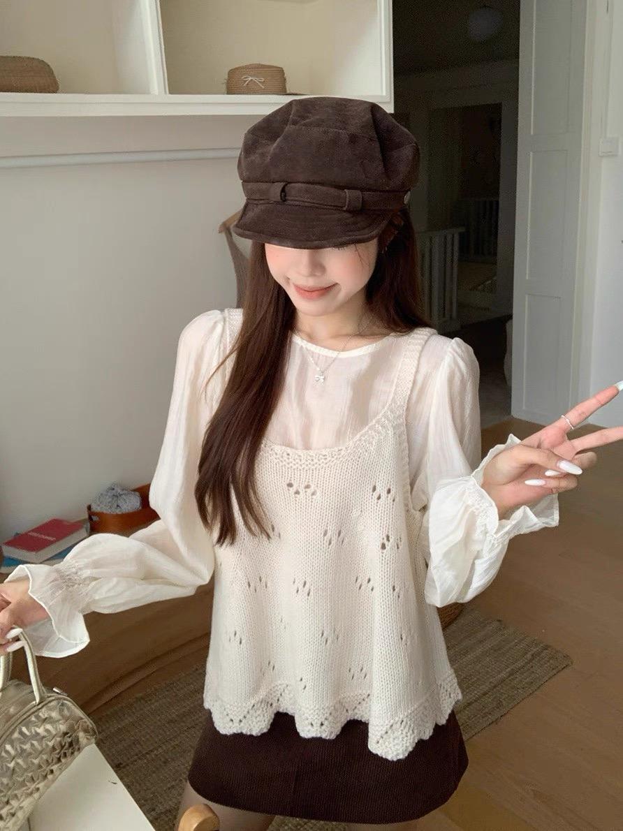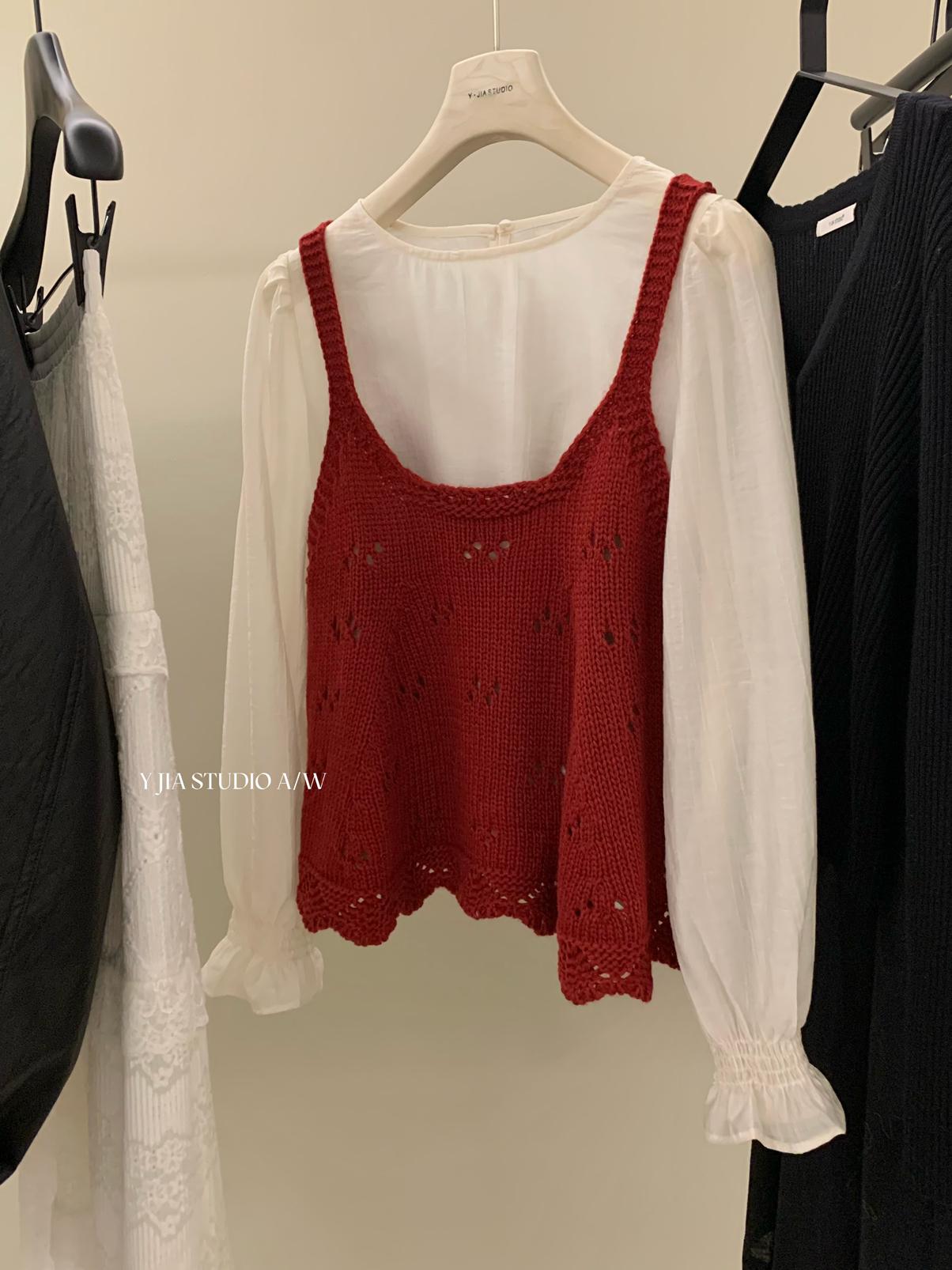 【C7228】甜美減齡娃娃小衫+鉤花針織吊帶背心套裝