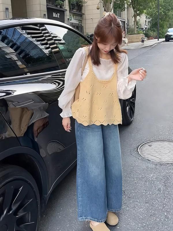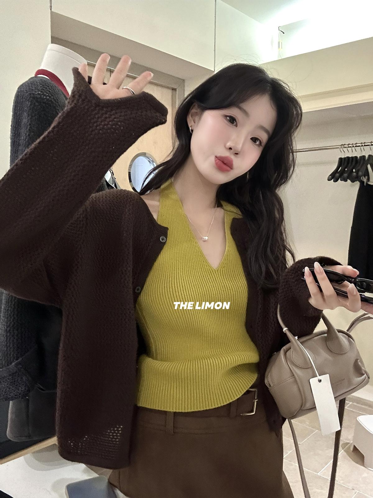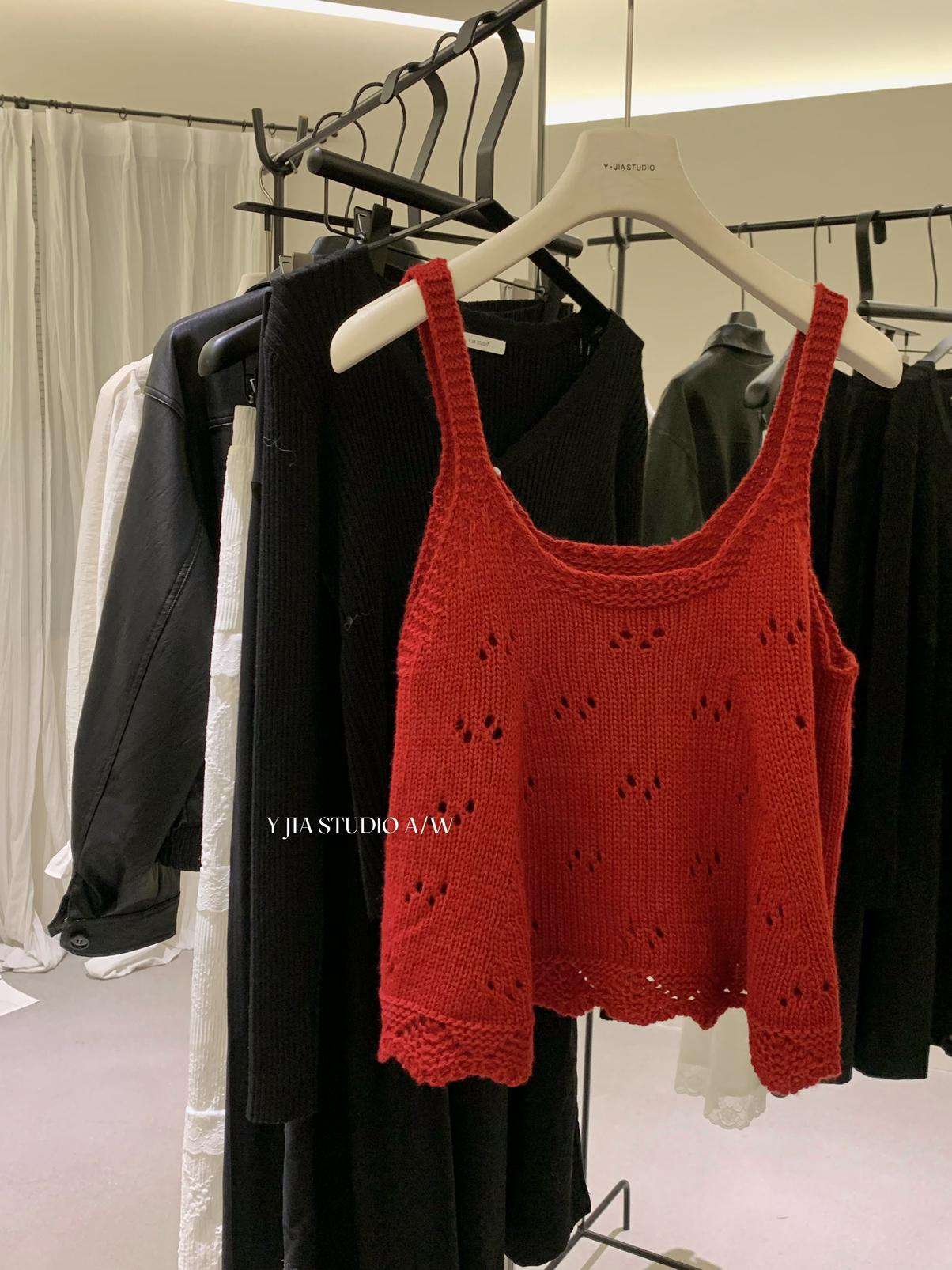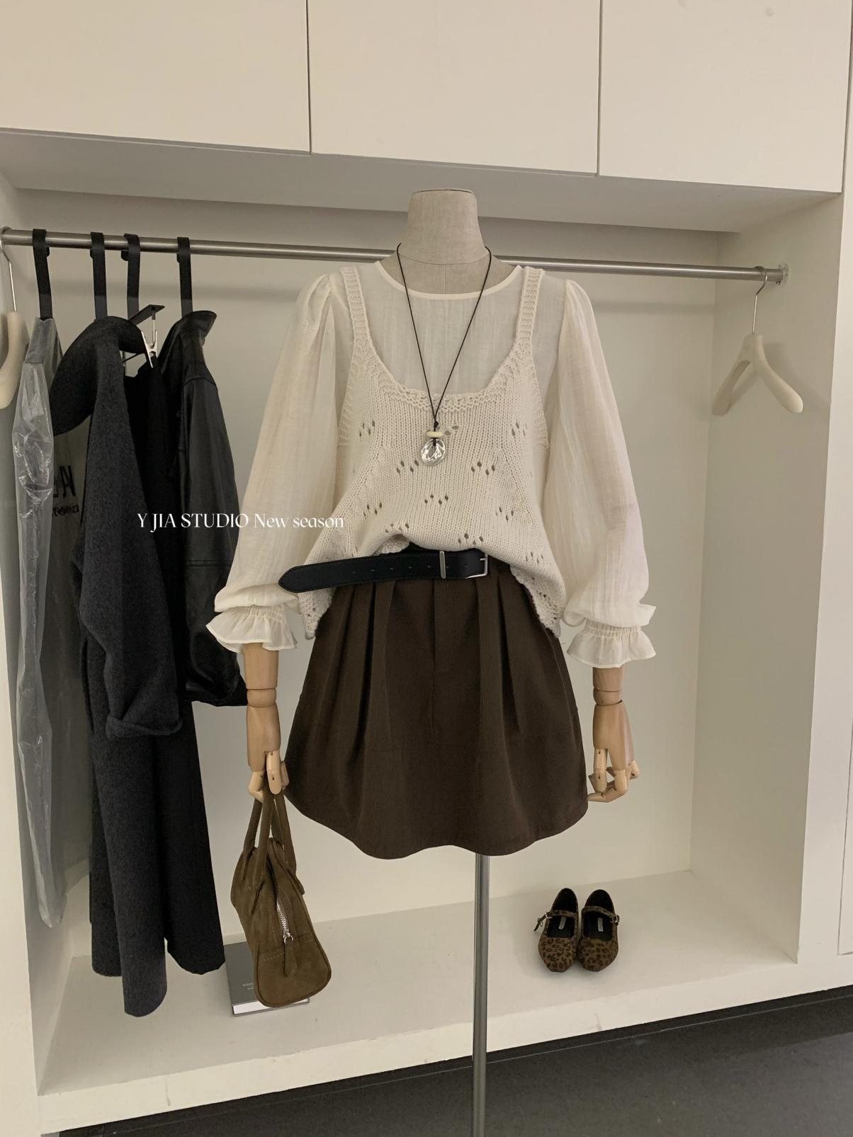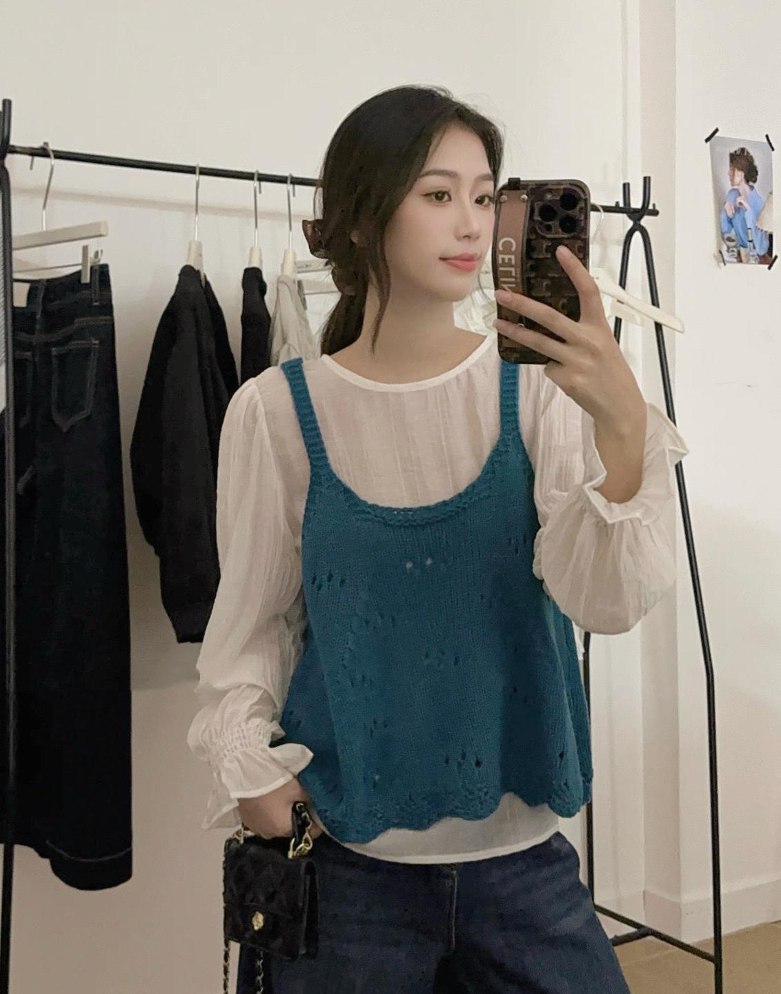 【C7228】甜美減齡娃娃小衫+鉤花針織吊帶背心套裝
