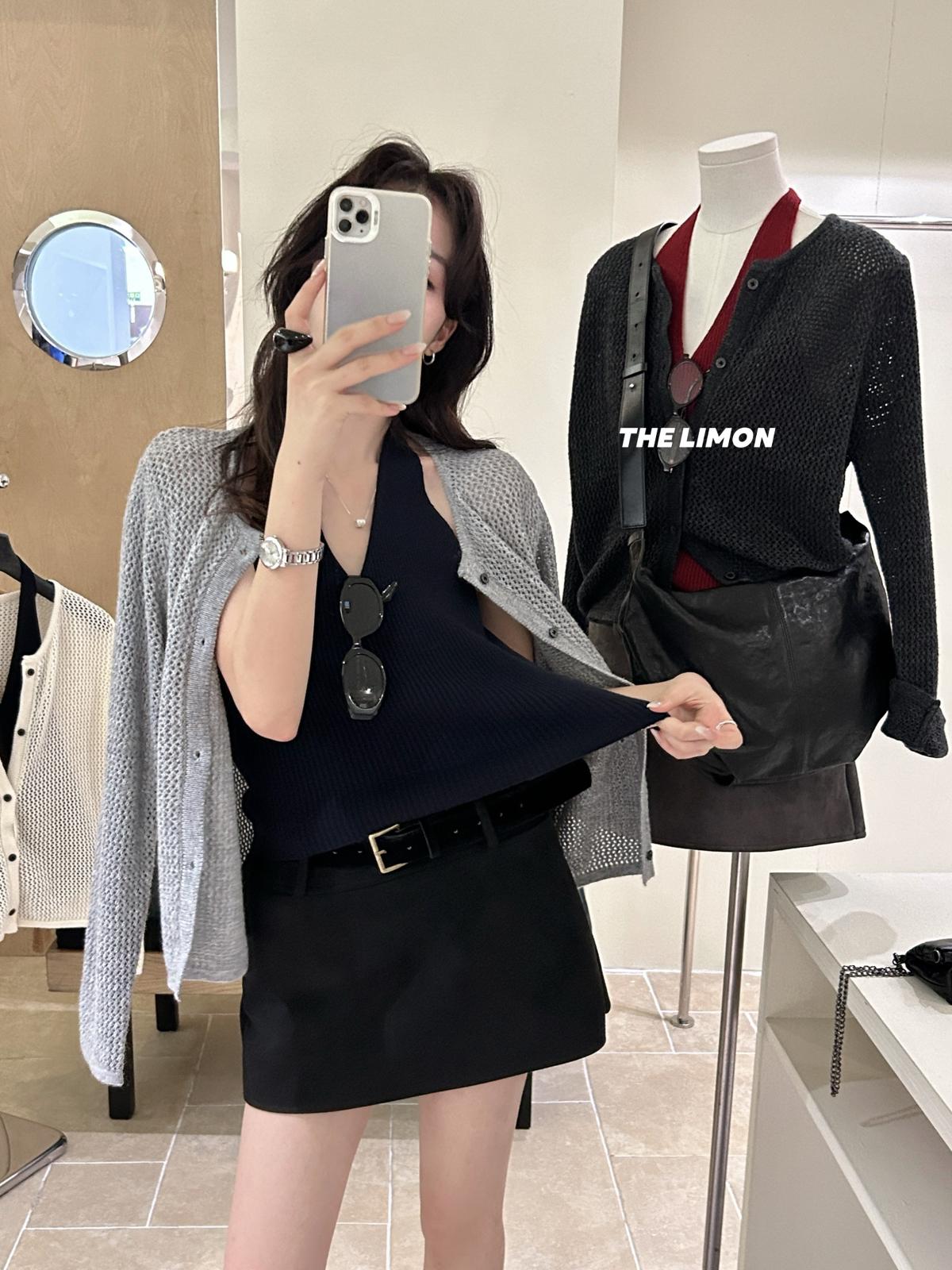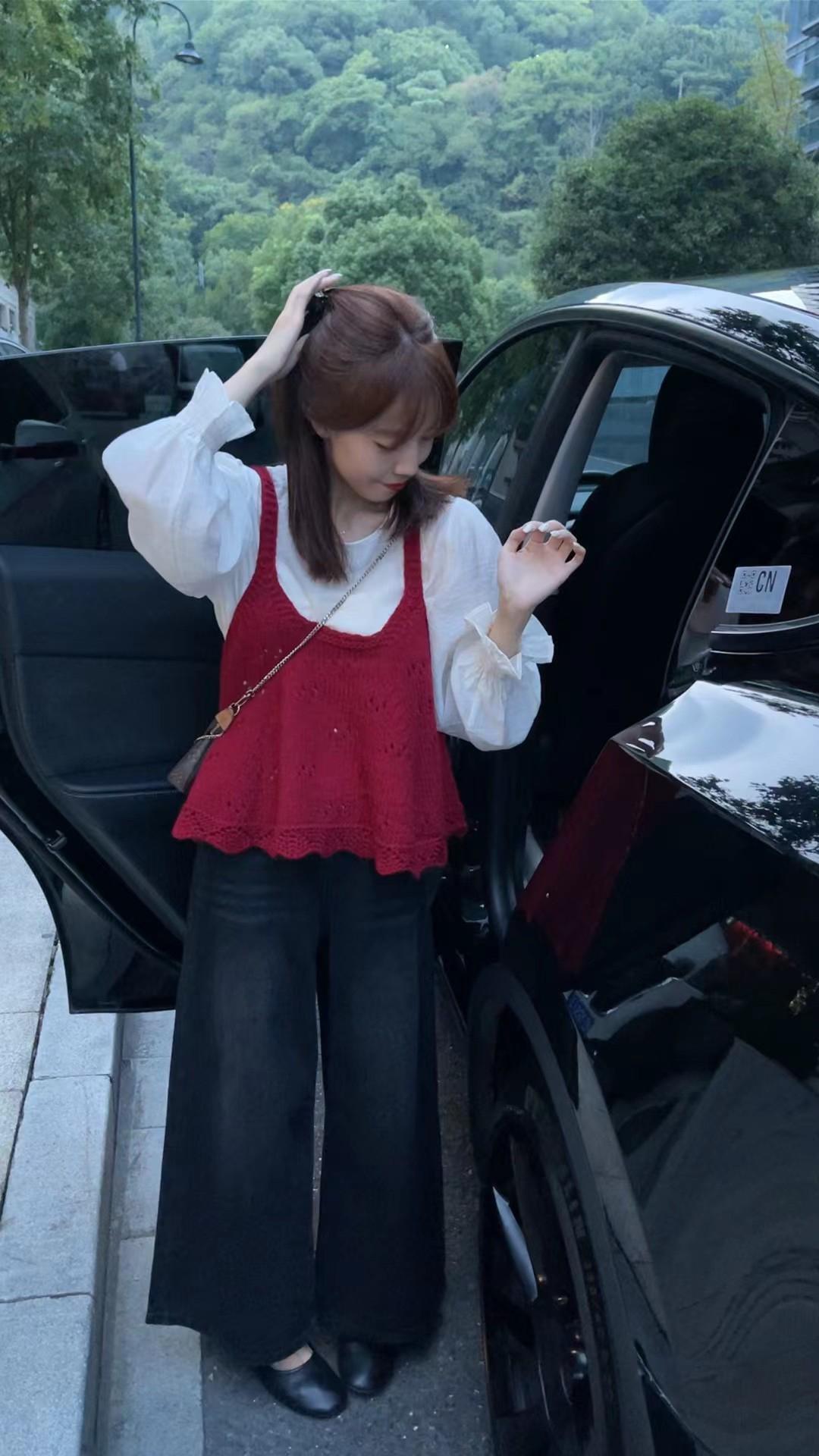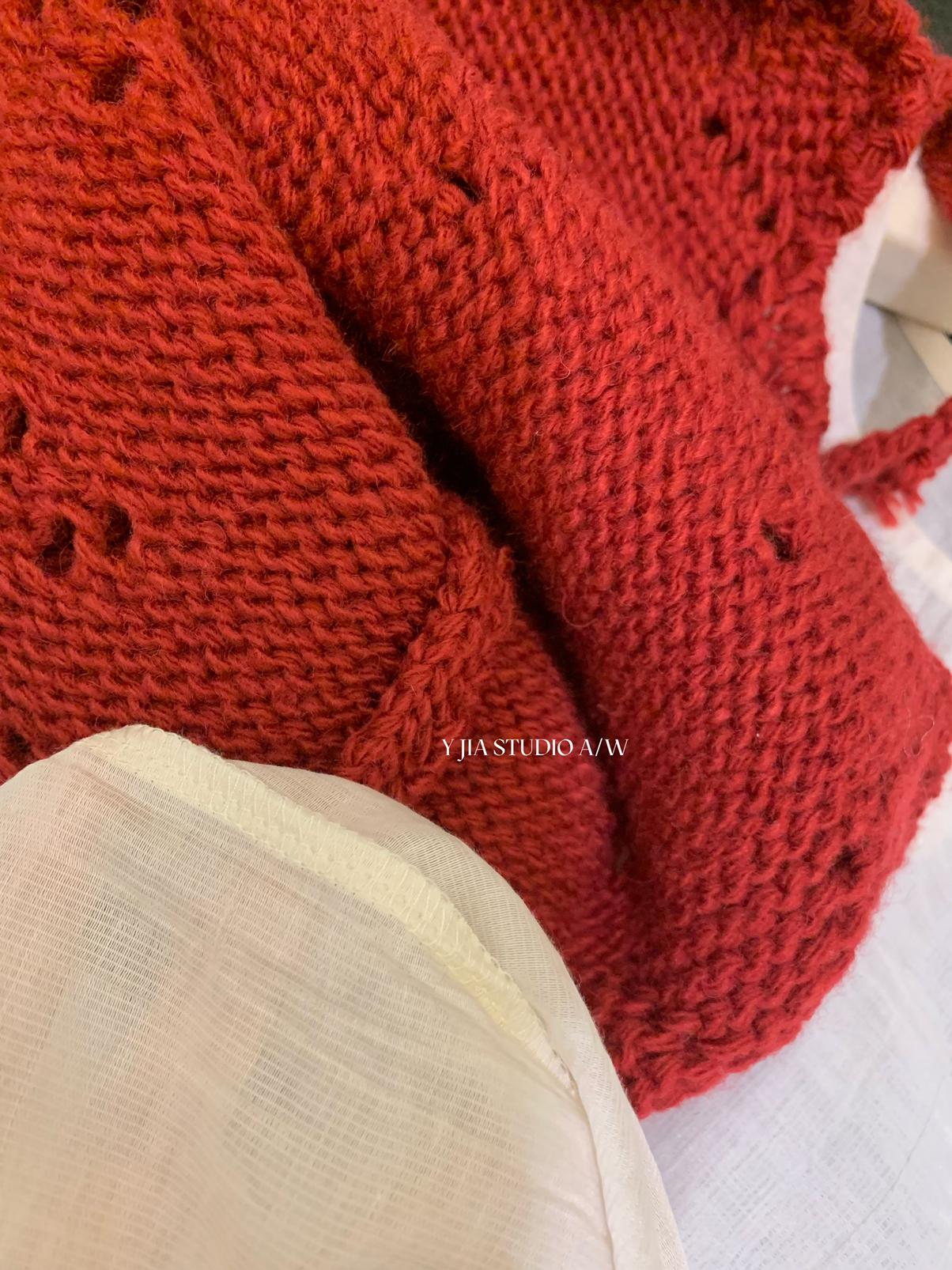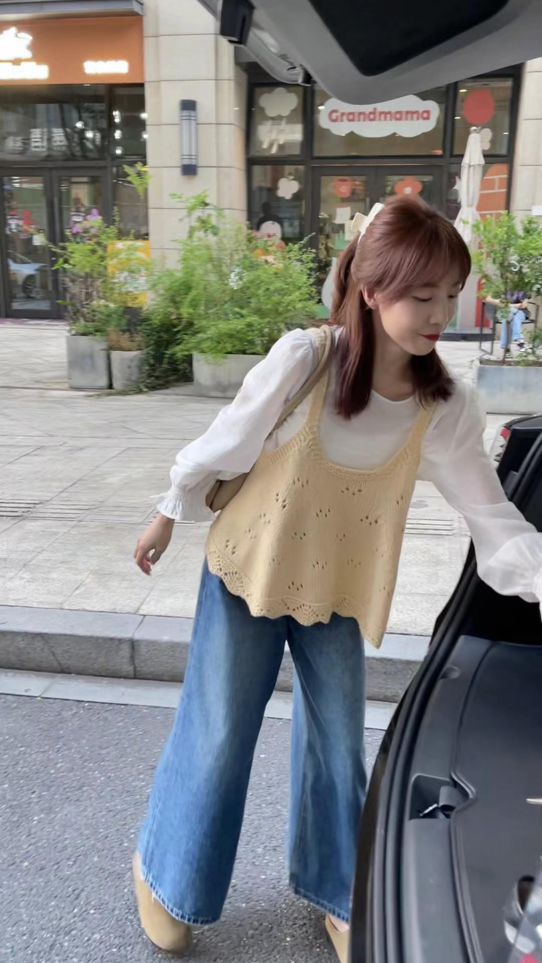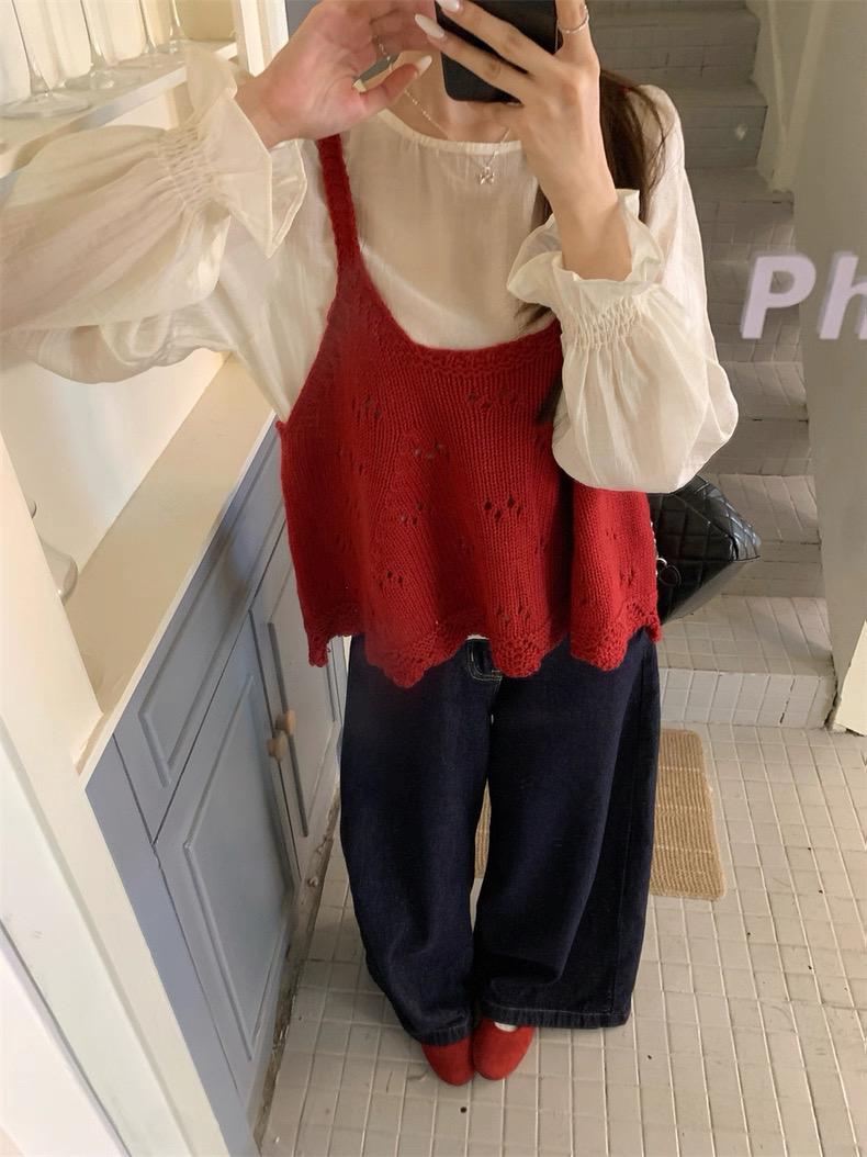 【C7228】甜美減齡娃娃小衫+鉤花針織吊帶背心套裝