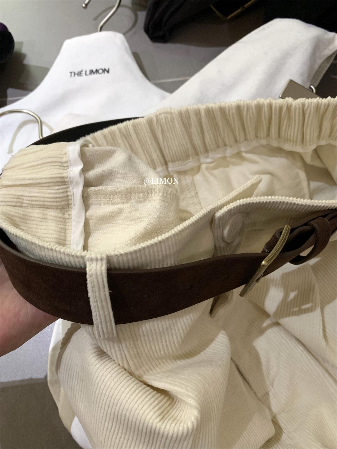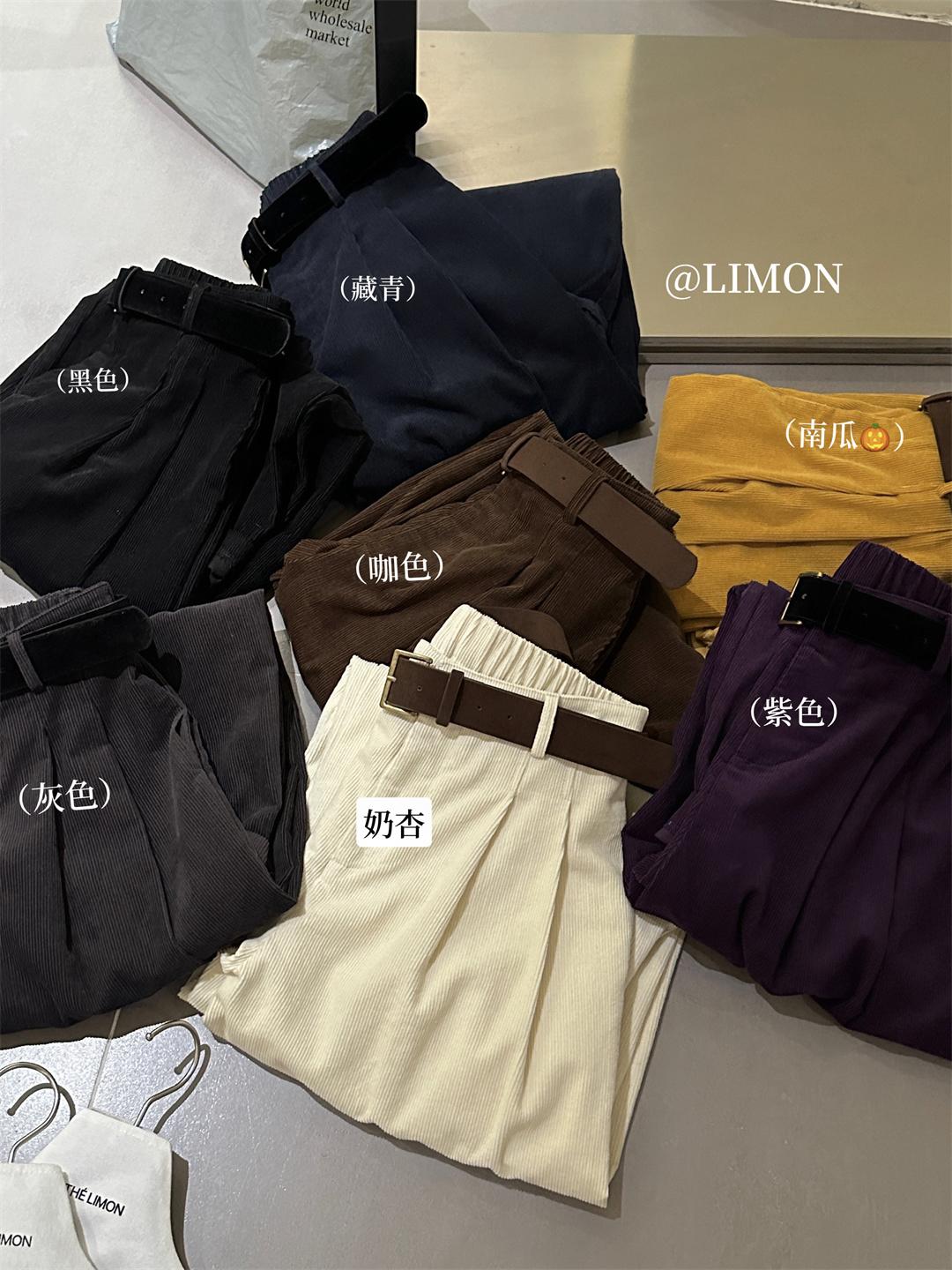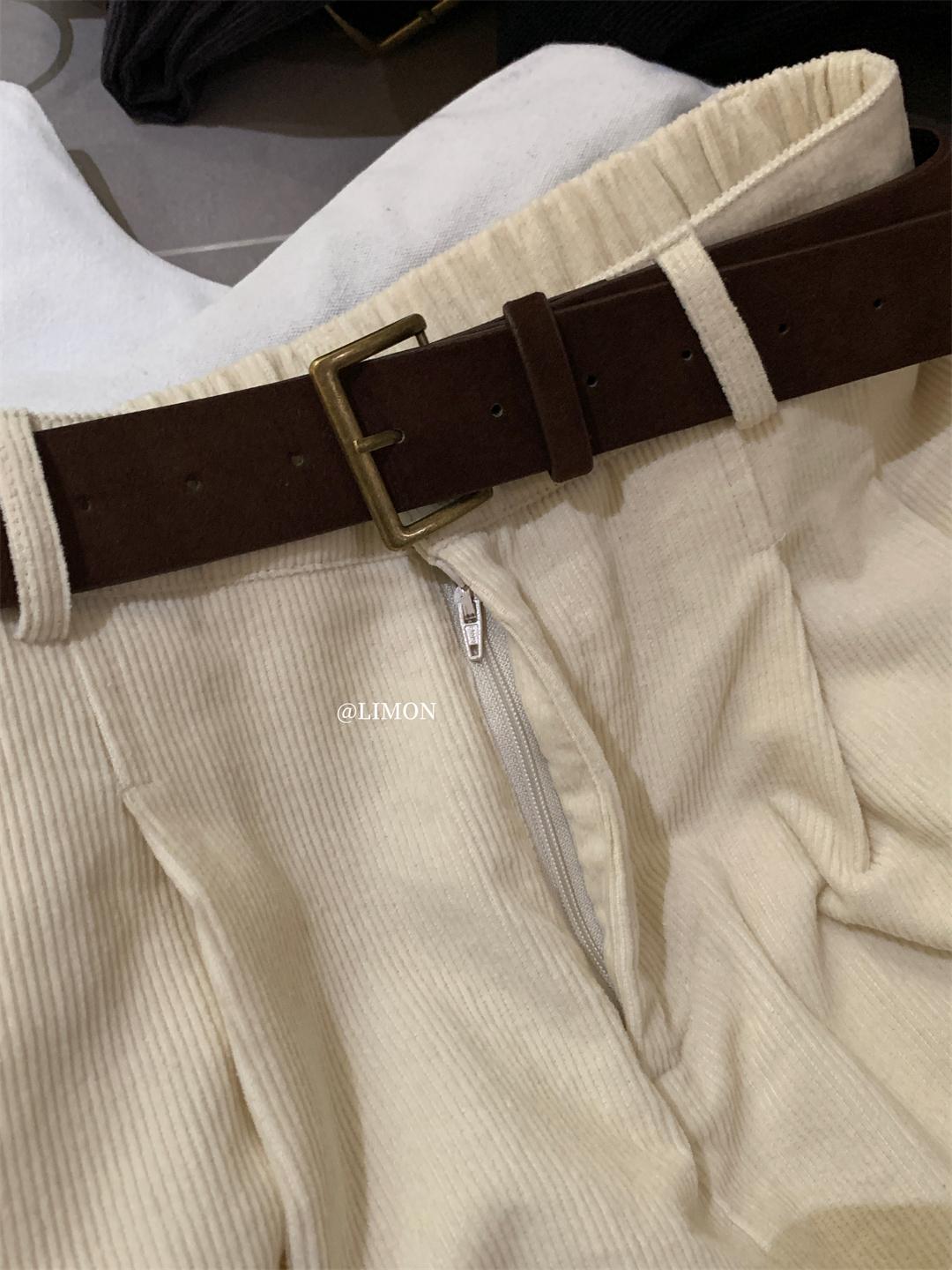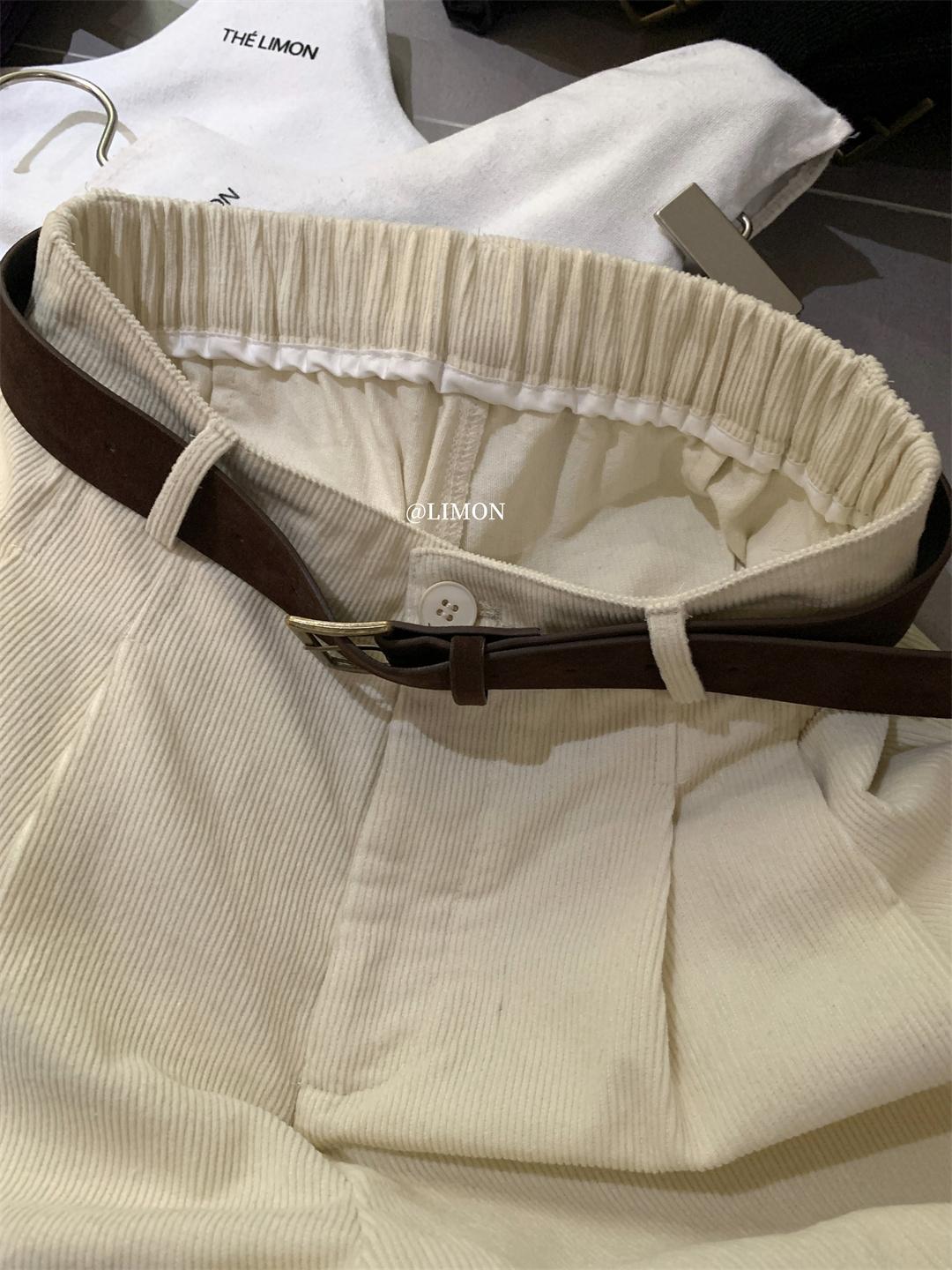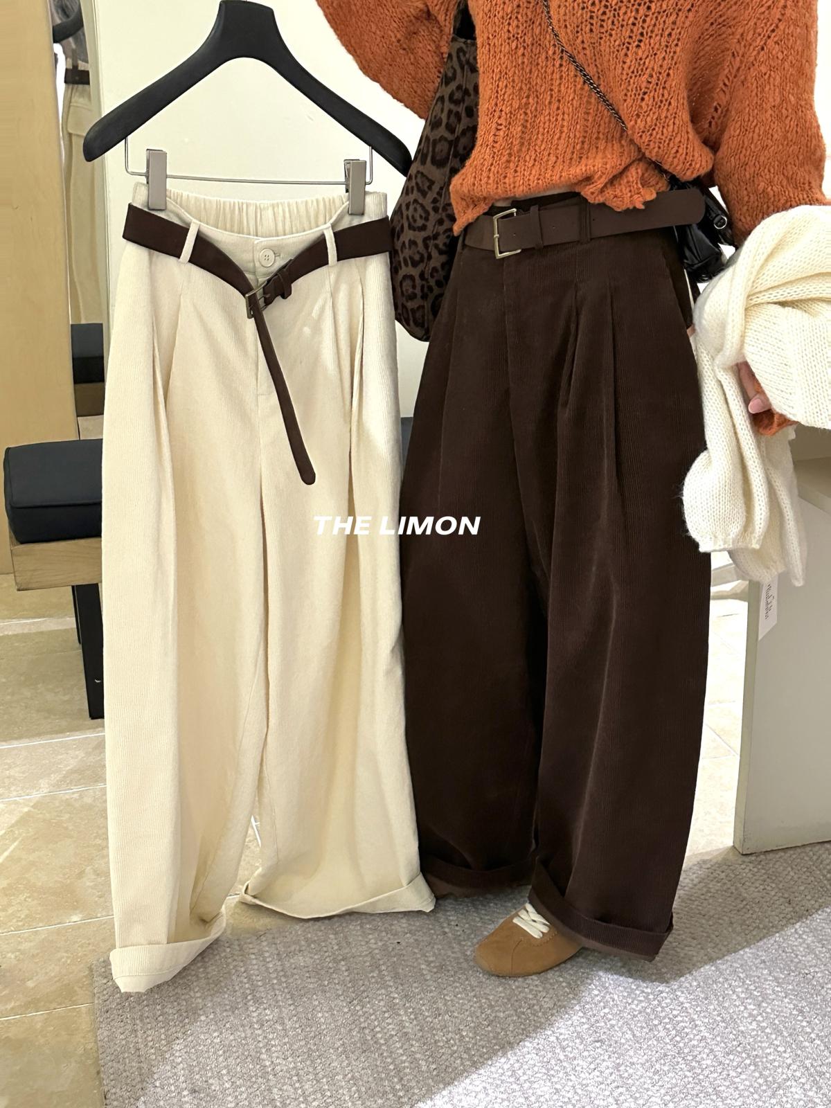 【C7248】復古燈芯絨百搭顯瘦闊腿休閒褲(配腰帶)