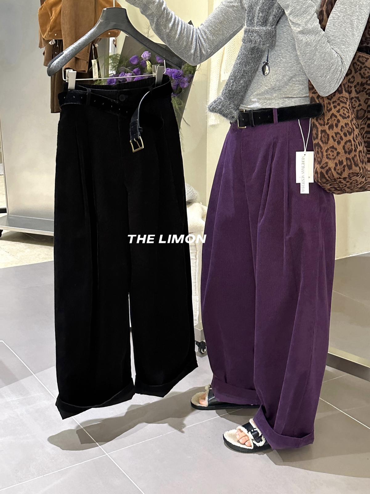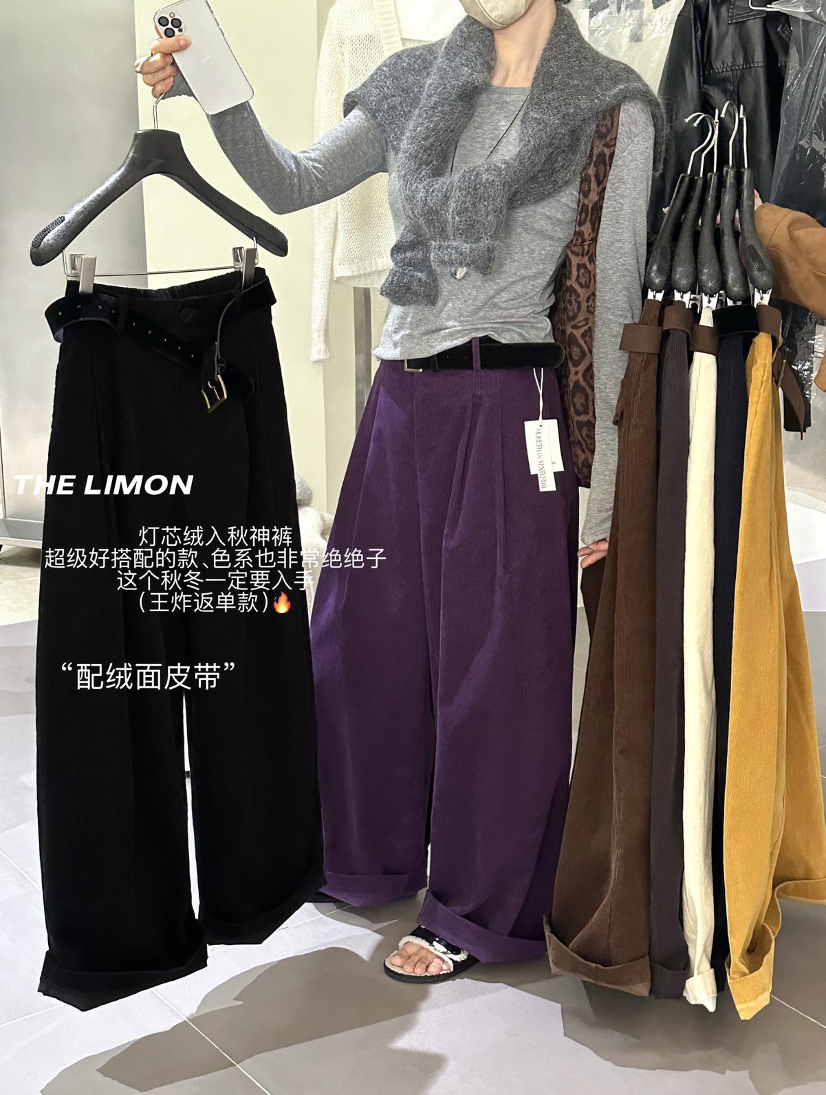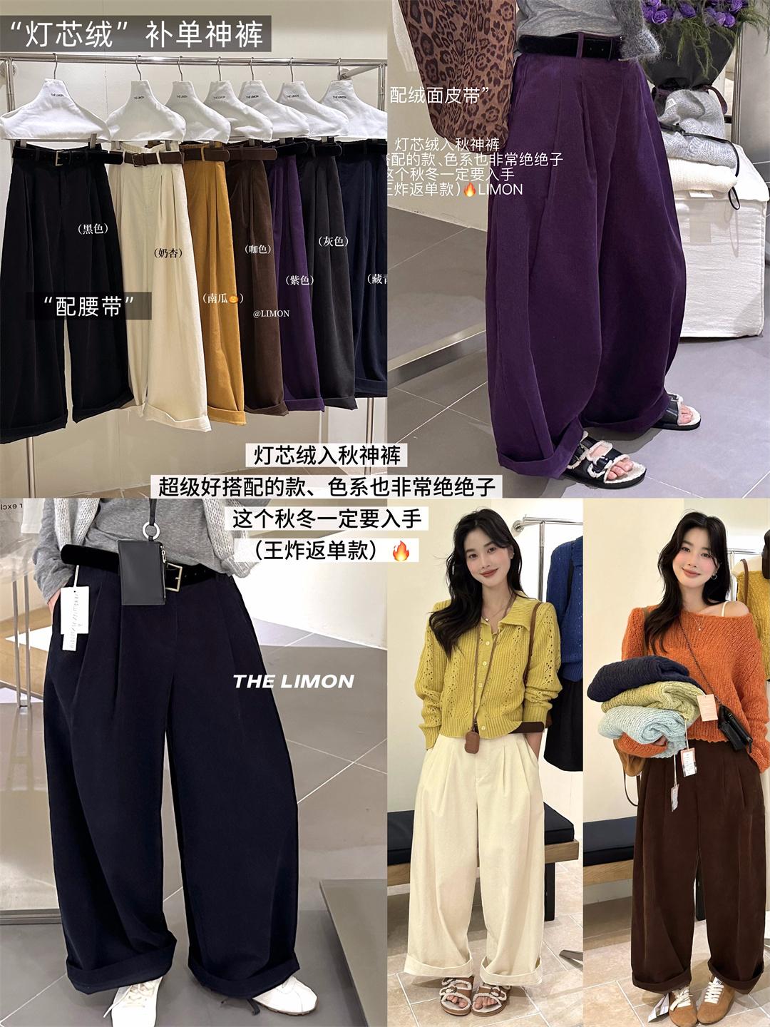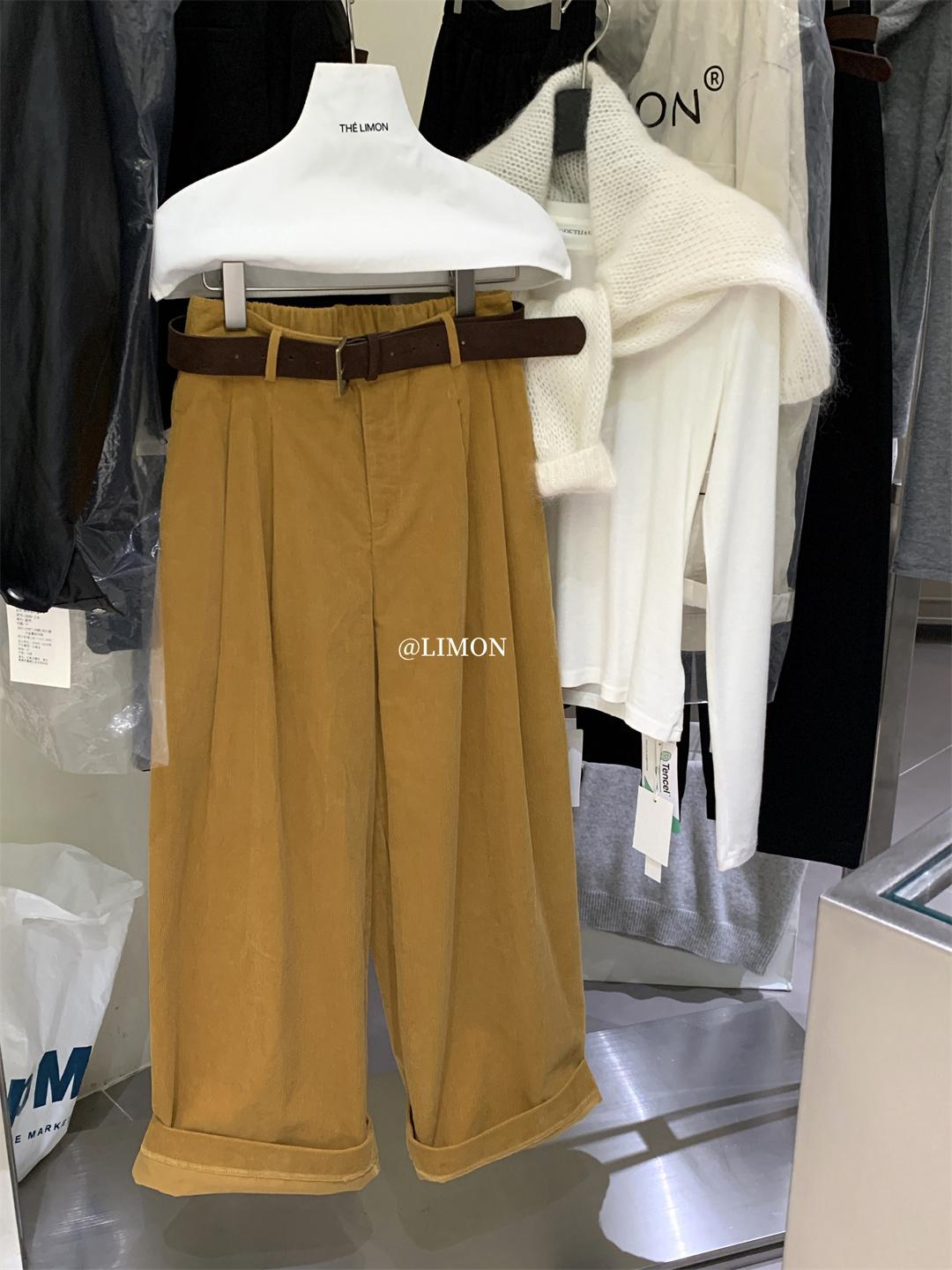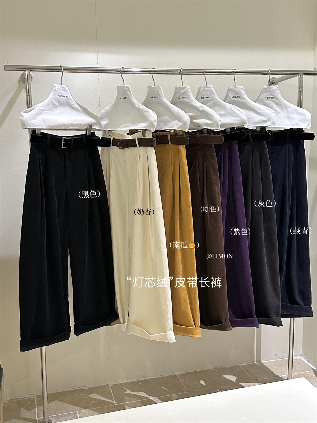 【C7248】復古燈芯絨百搭顯瘦闊腿休閒褲(配腰帶)
