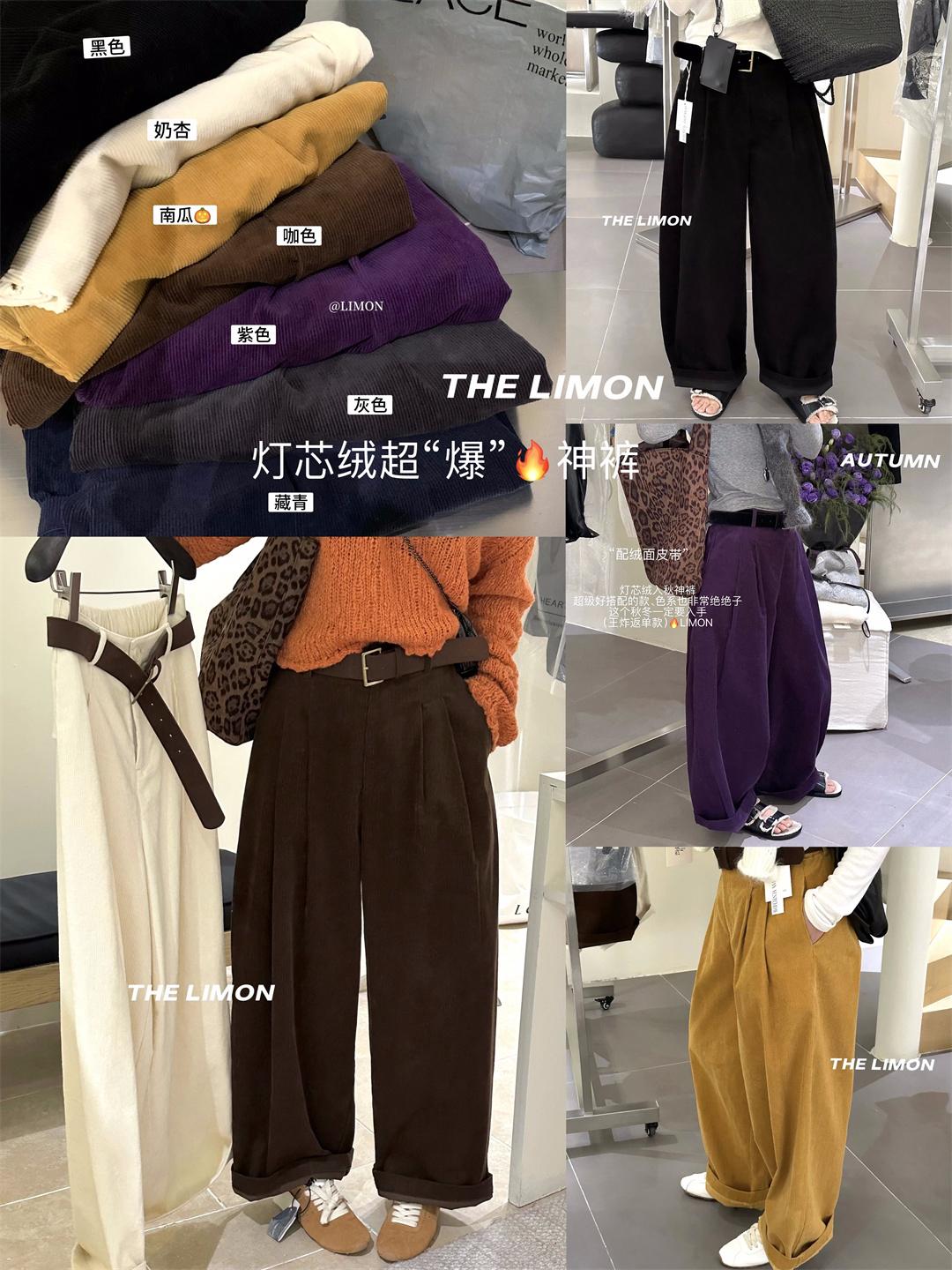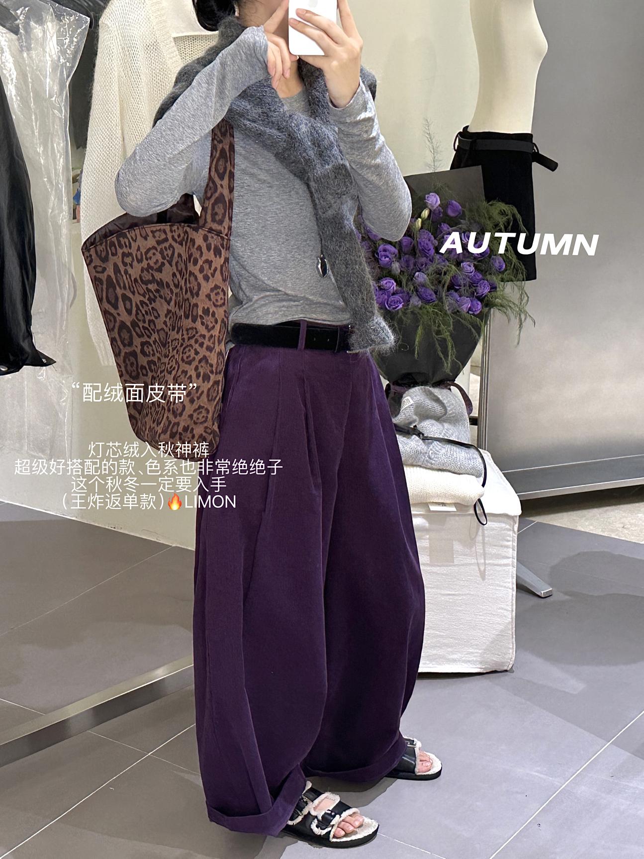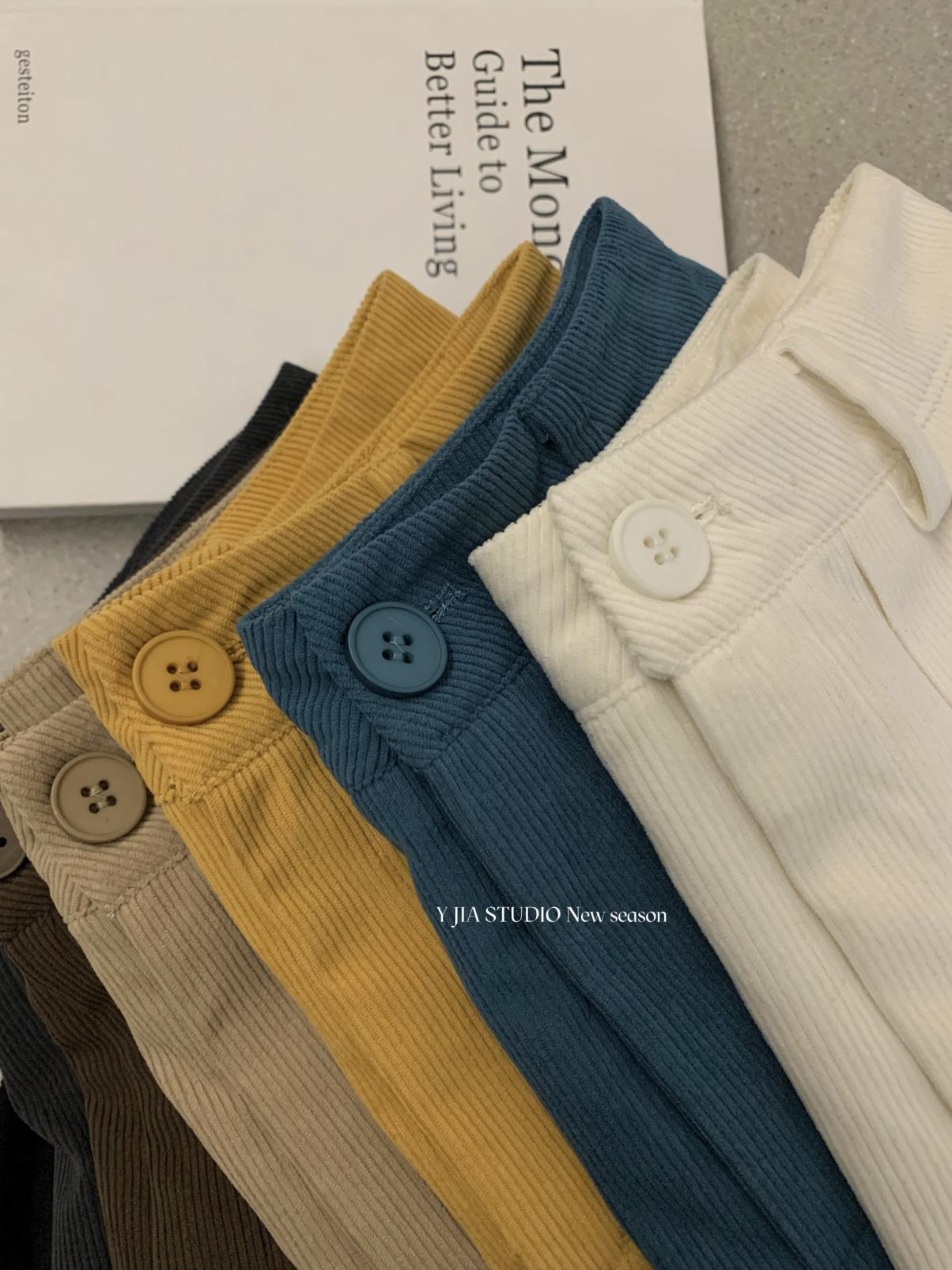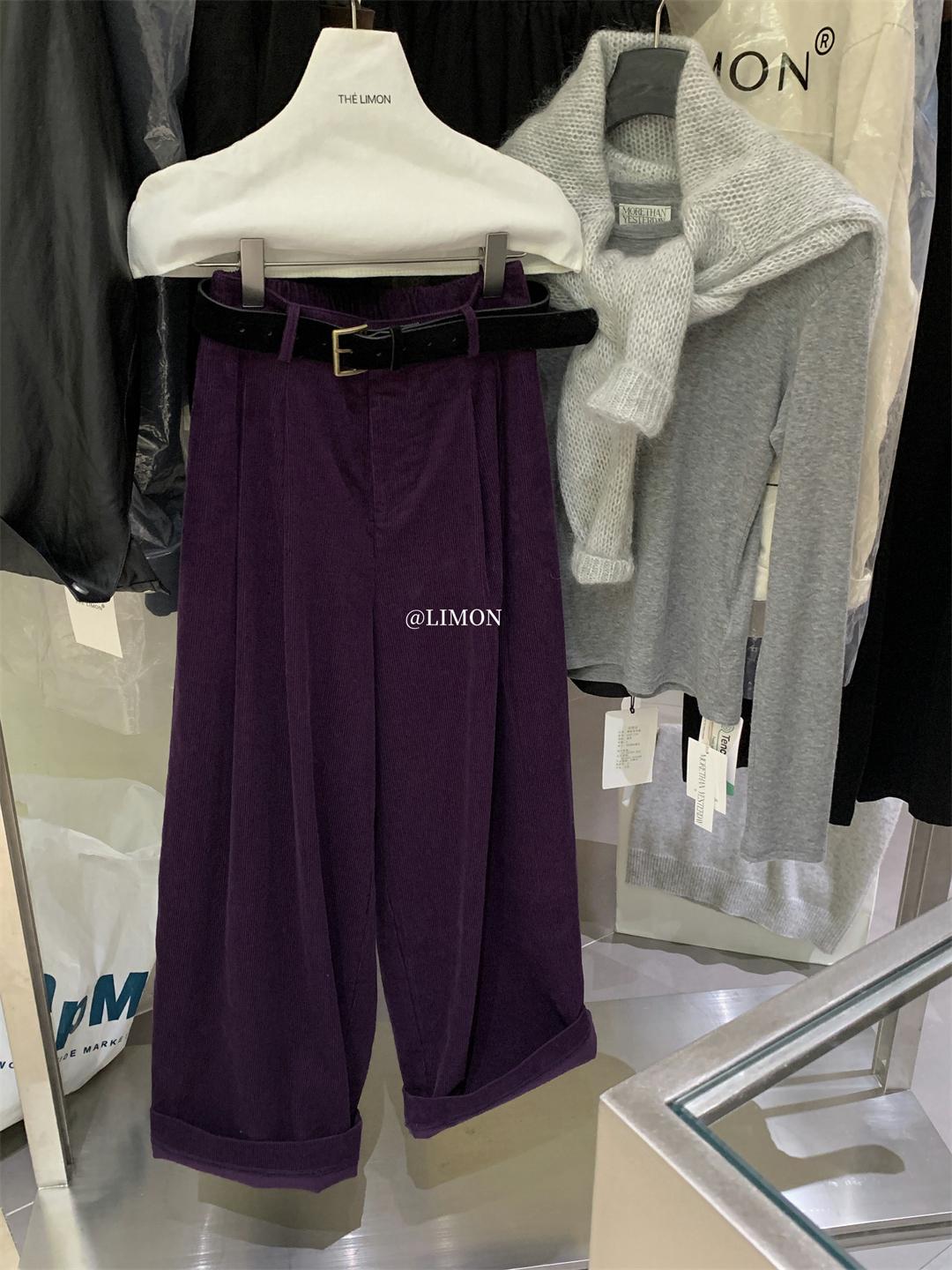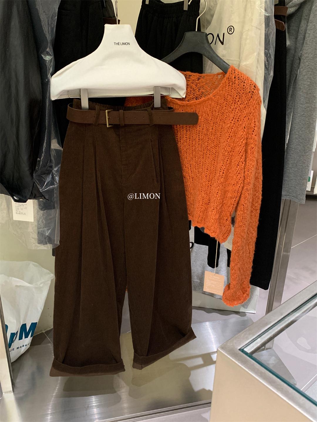 【C7248】復古燈芯絨百搭顯瘦闊腿休閒褲(配腰帶)