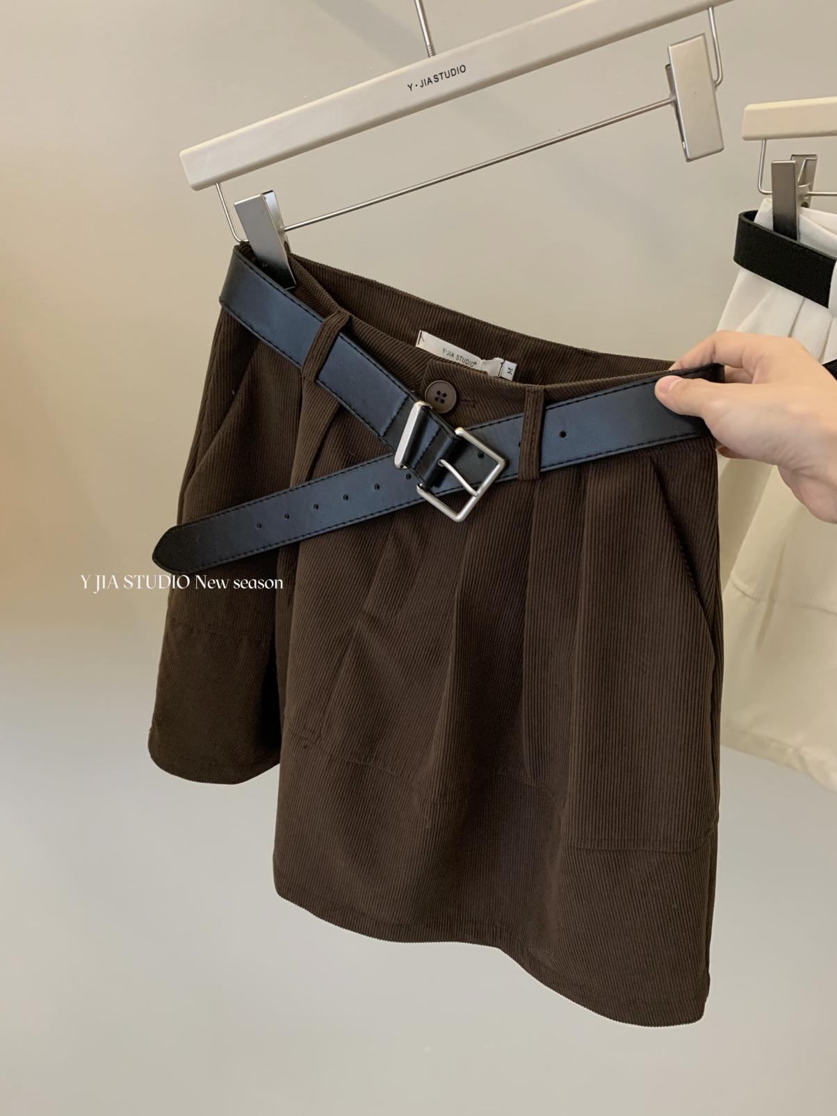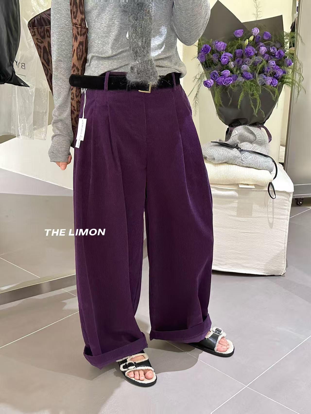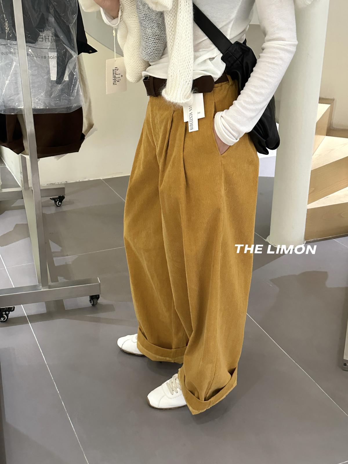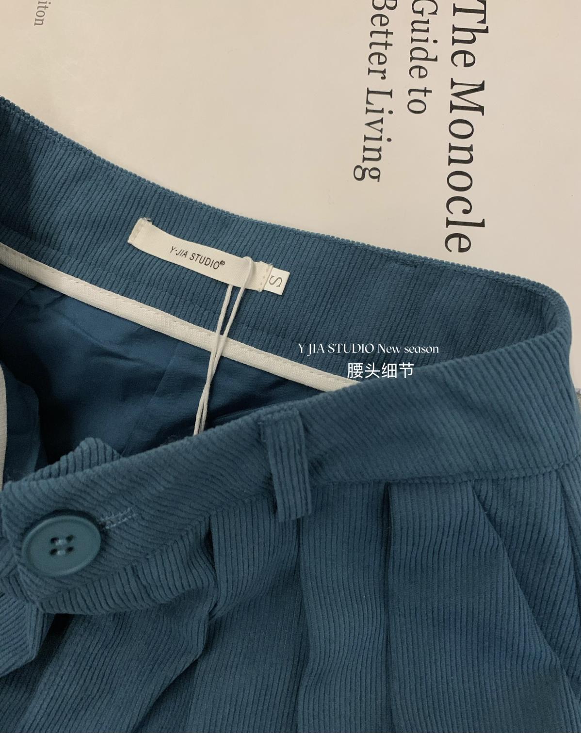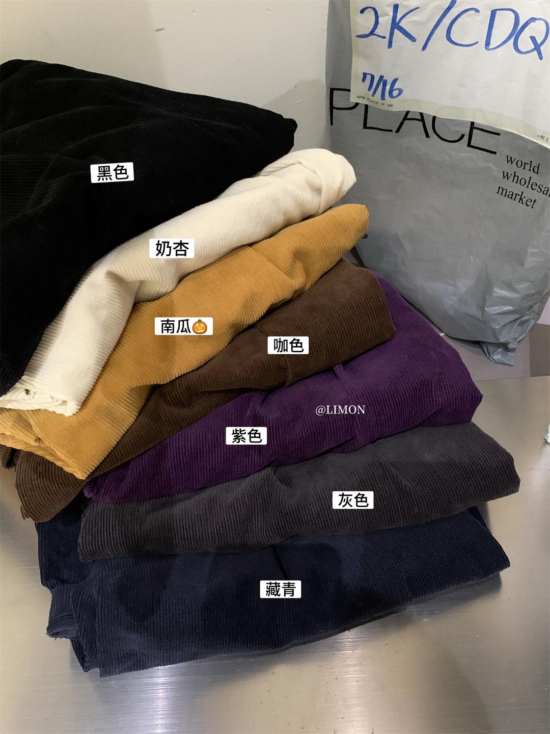 【C7248】復古燈芯絨百搭顯瘦闊腿休閒褲(配腰帶)