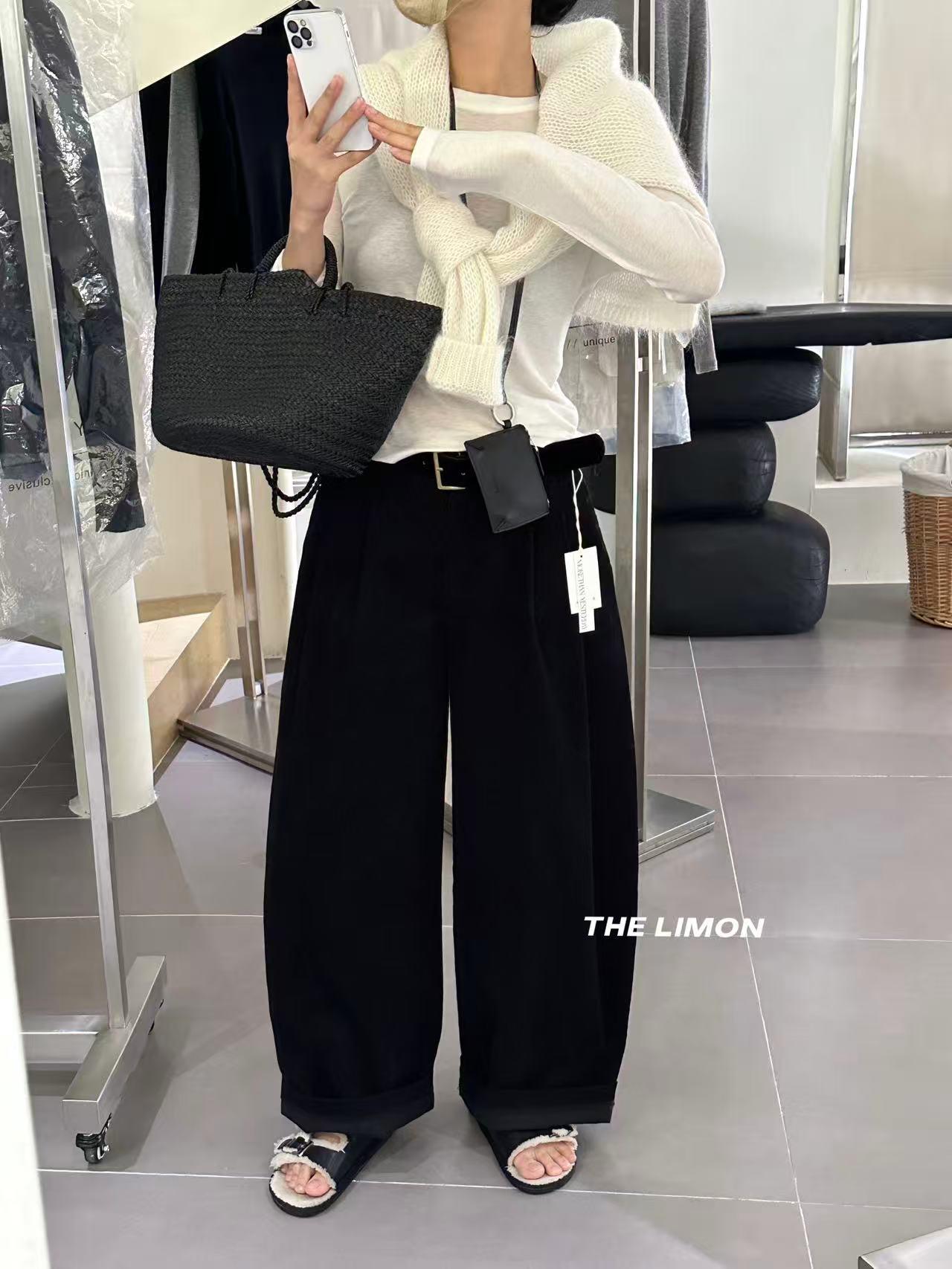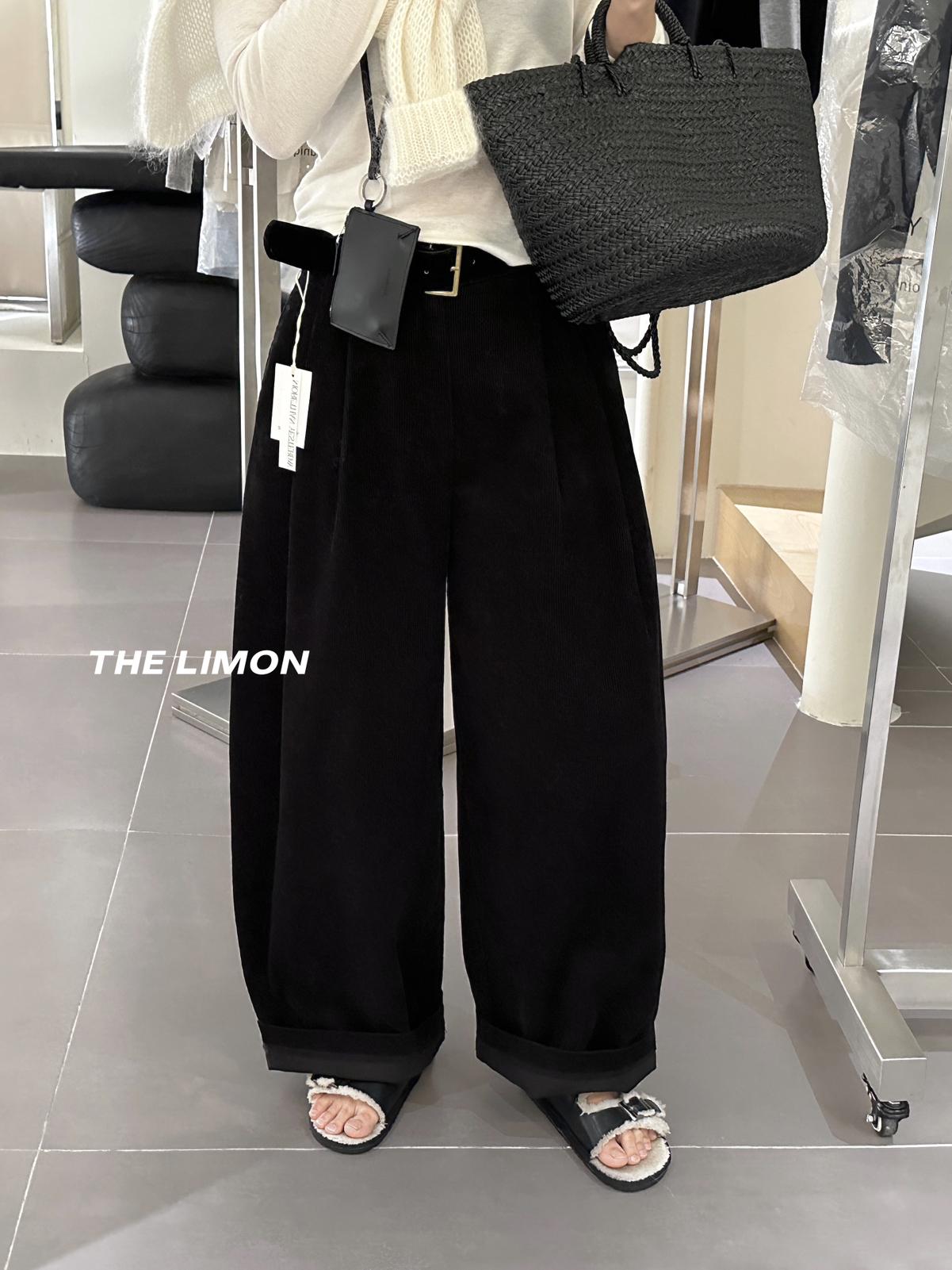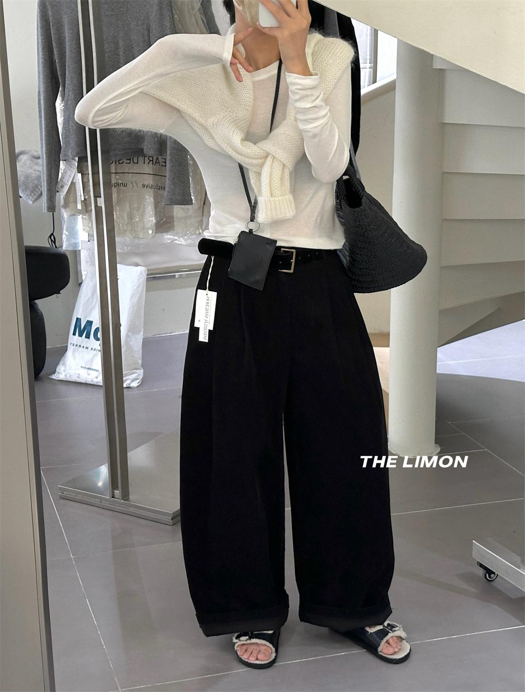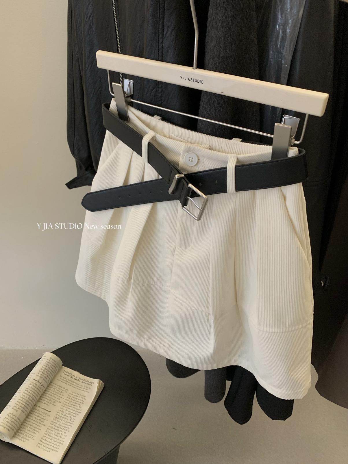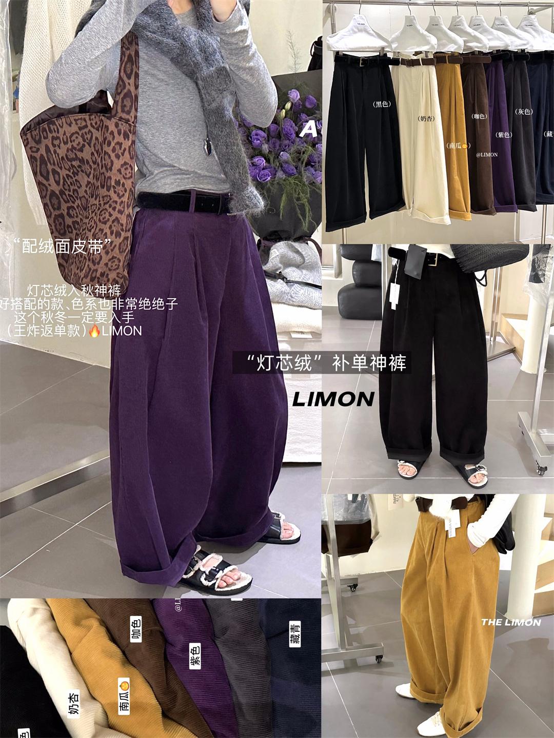 【C7248】復古燈芯絨百搭顯瘦闊腿休閒褲(配腰帶)