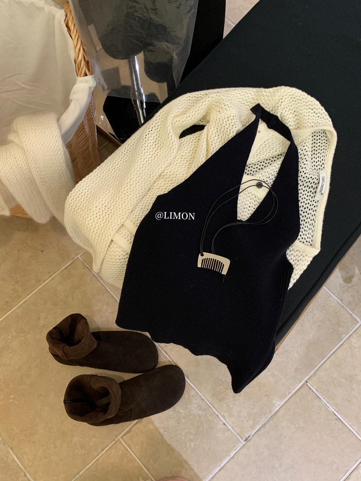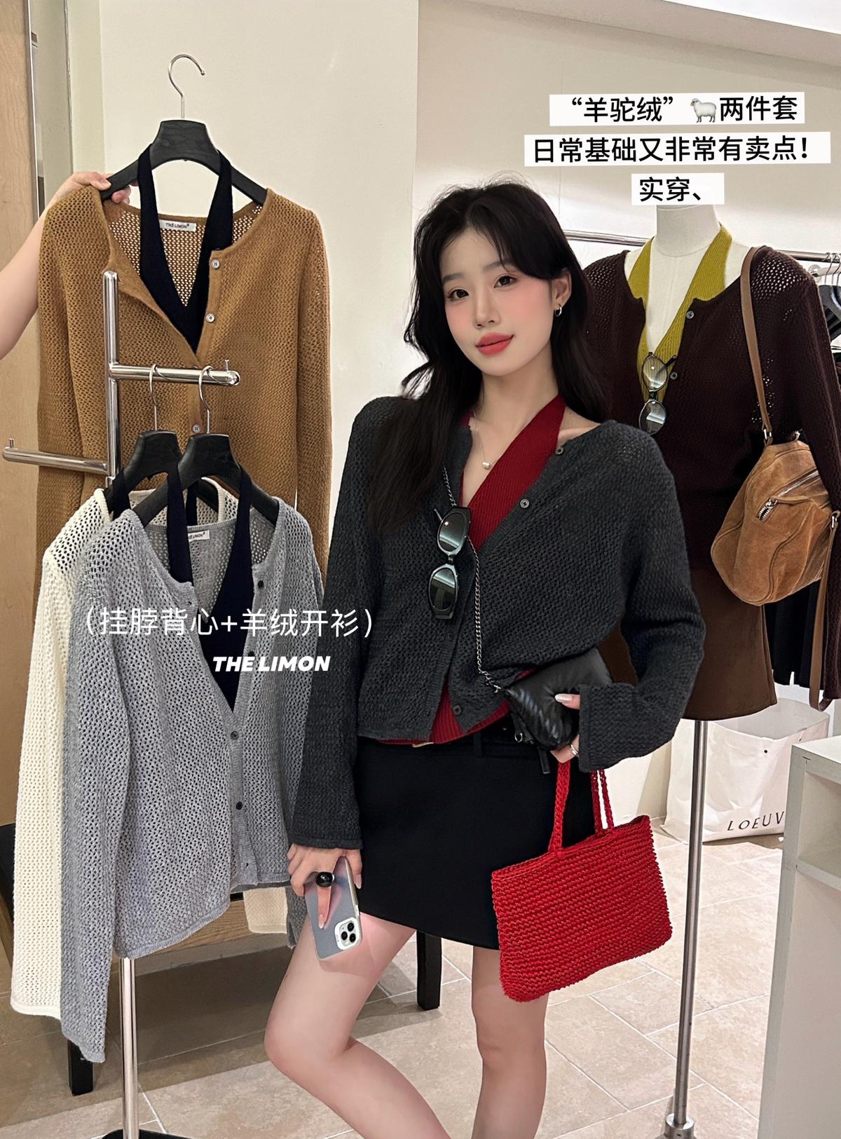 【C7250】氣質顯瘦掛脖背心+寬鬆針織開衫套裝(含32%羊毛)