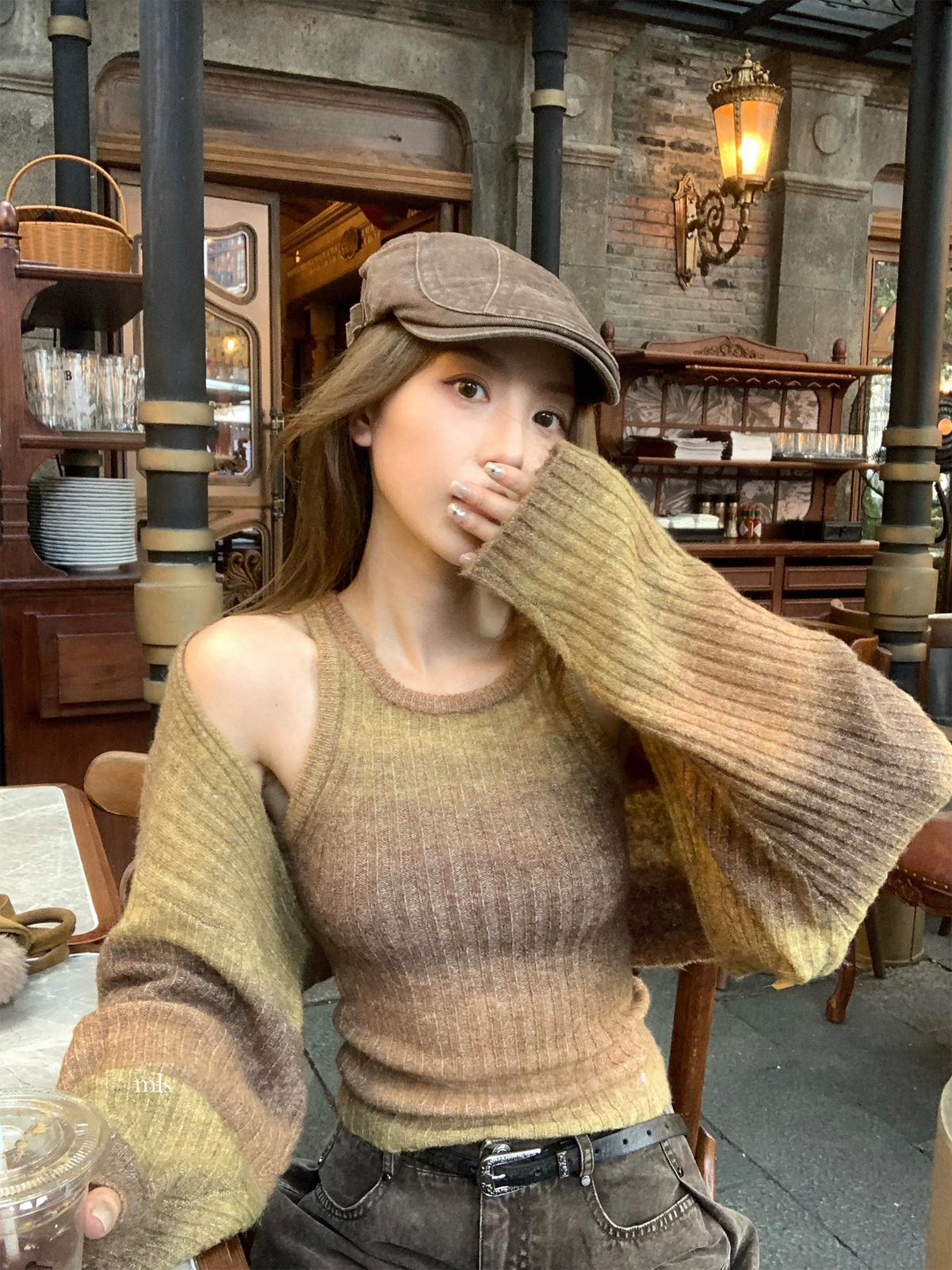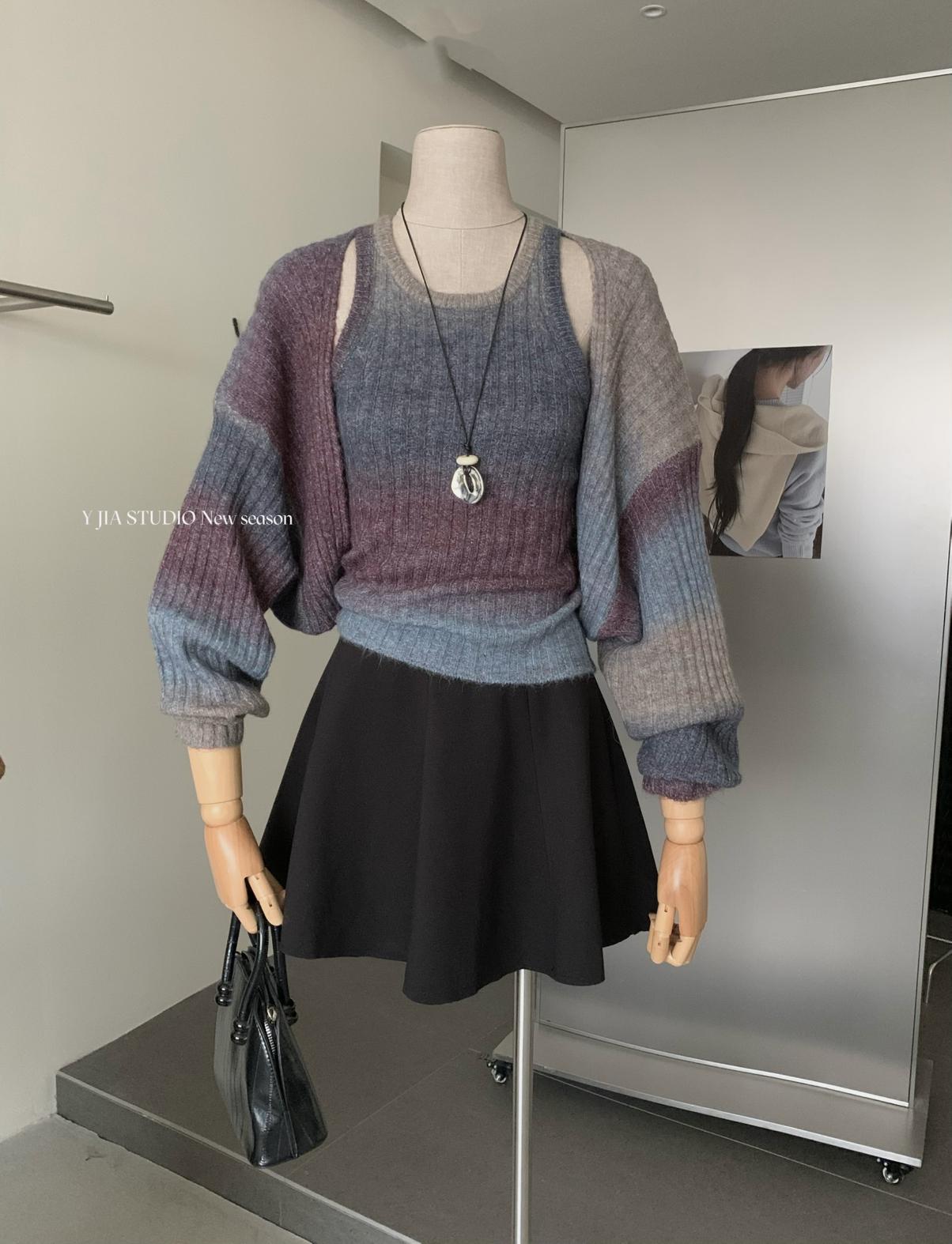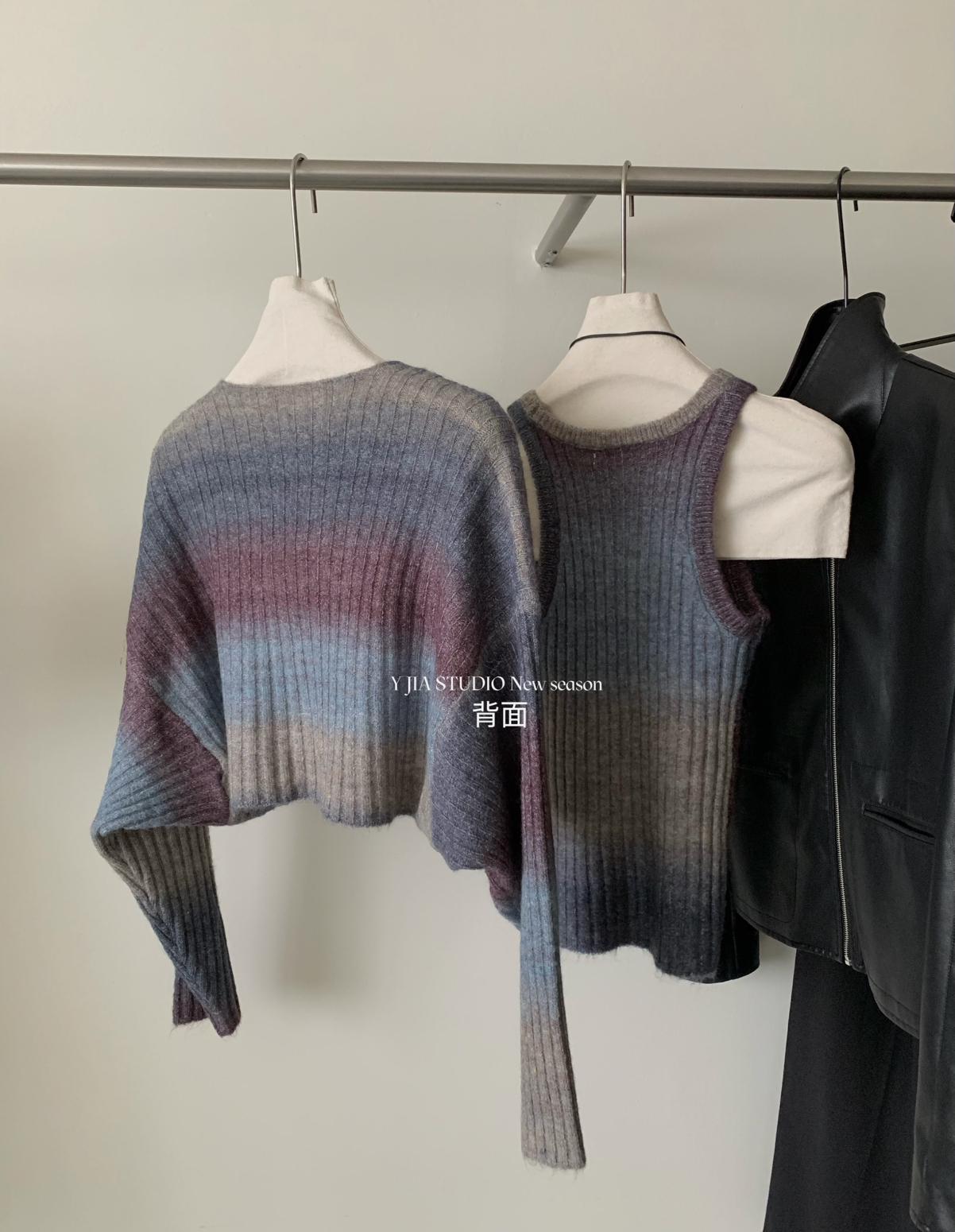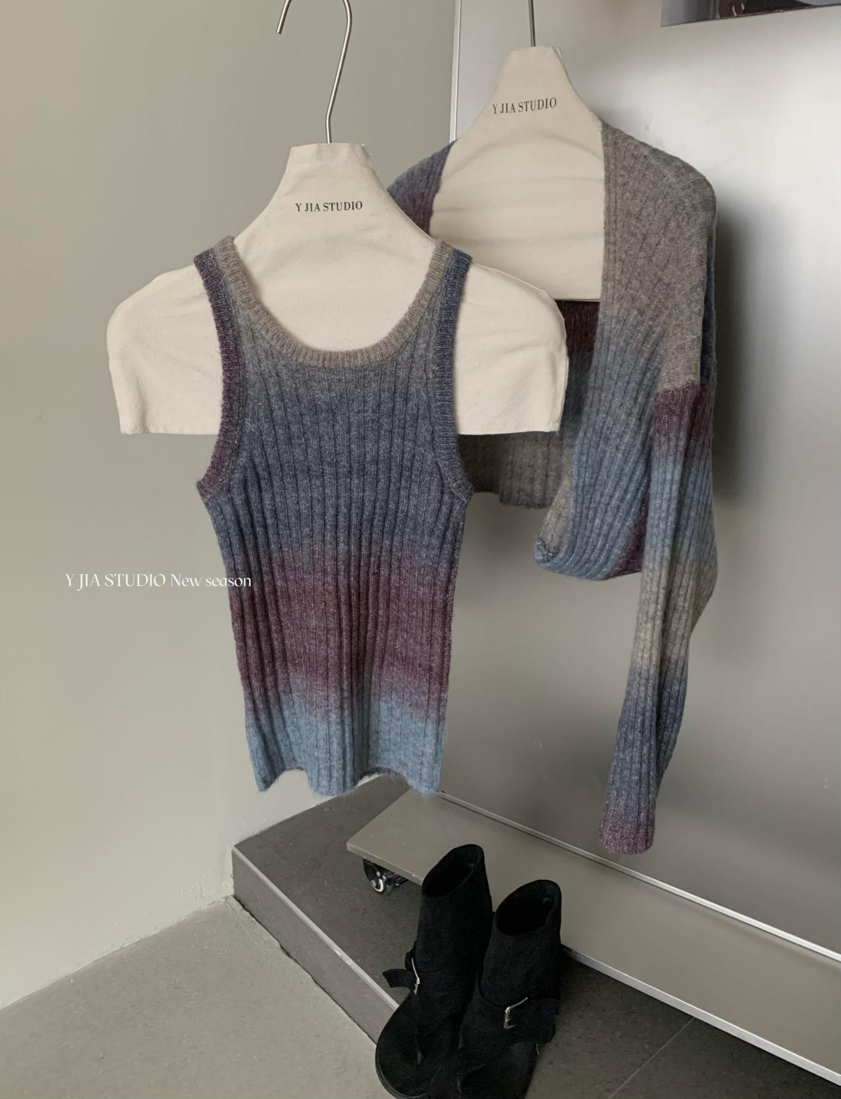 【C7223】漸變美學簡約百搭顯瘦針織開衫+顯瘦百搭背心套裝