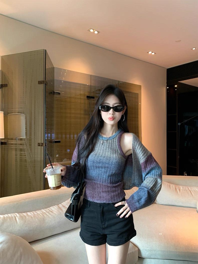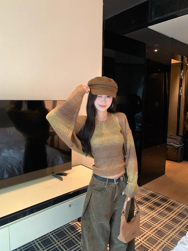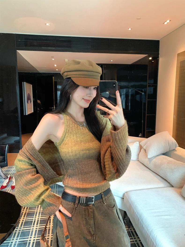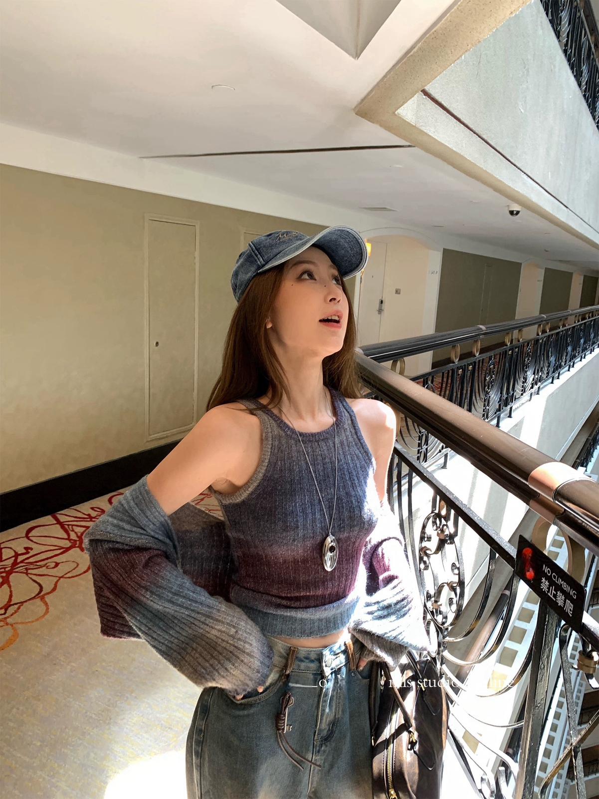 【C7223】漸變美學簡約百搭顯瘦針織開衫+顯瘦百搭背心套裝