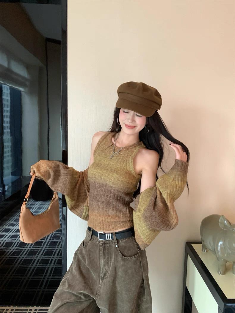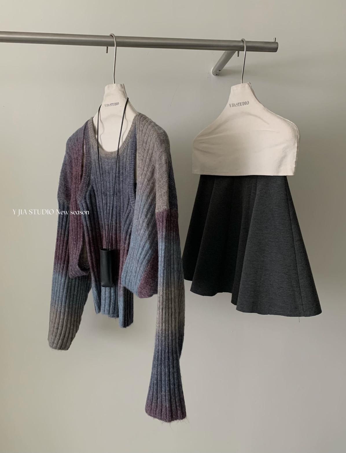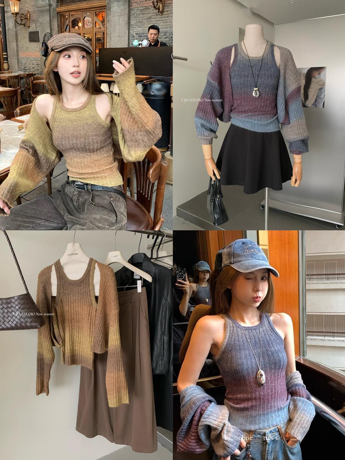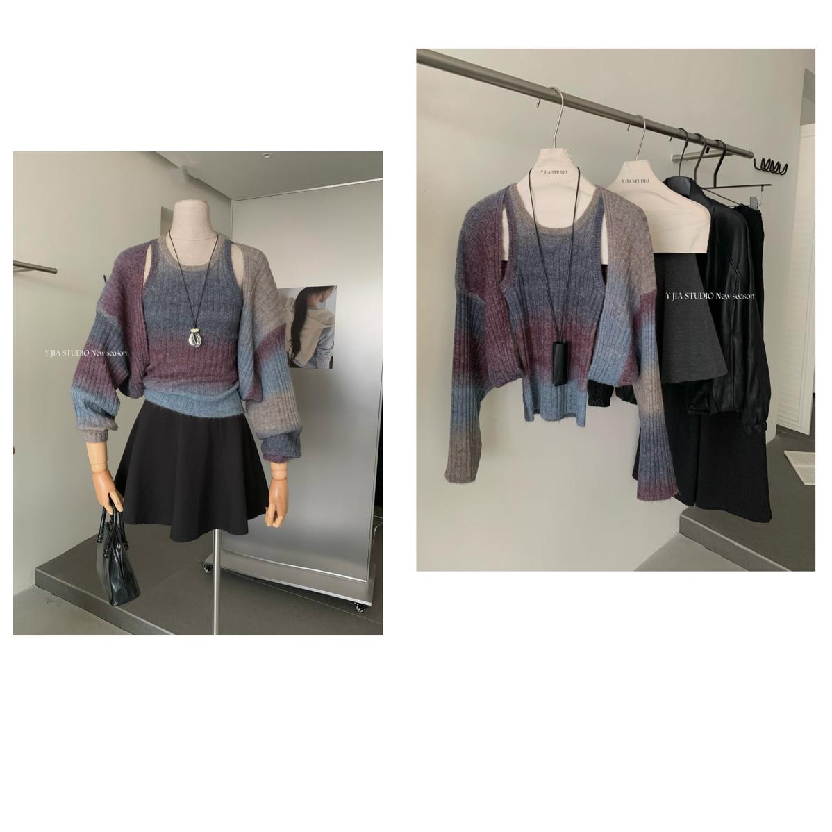 3. 【C7223】漸變美學簡約百搭顯瘦針織開衫+顯瘦百搭背心套裝