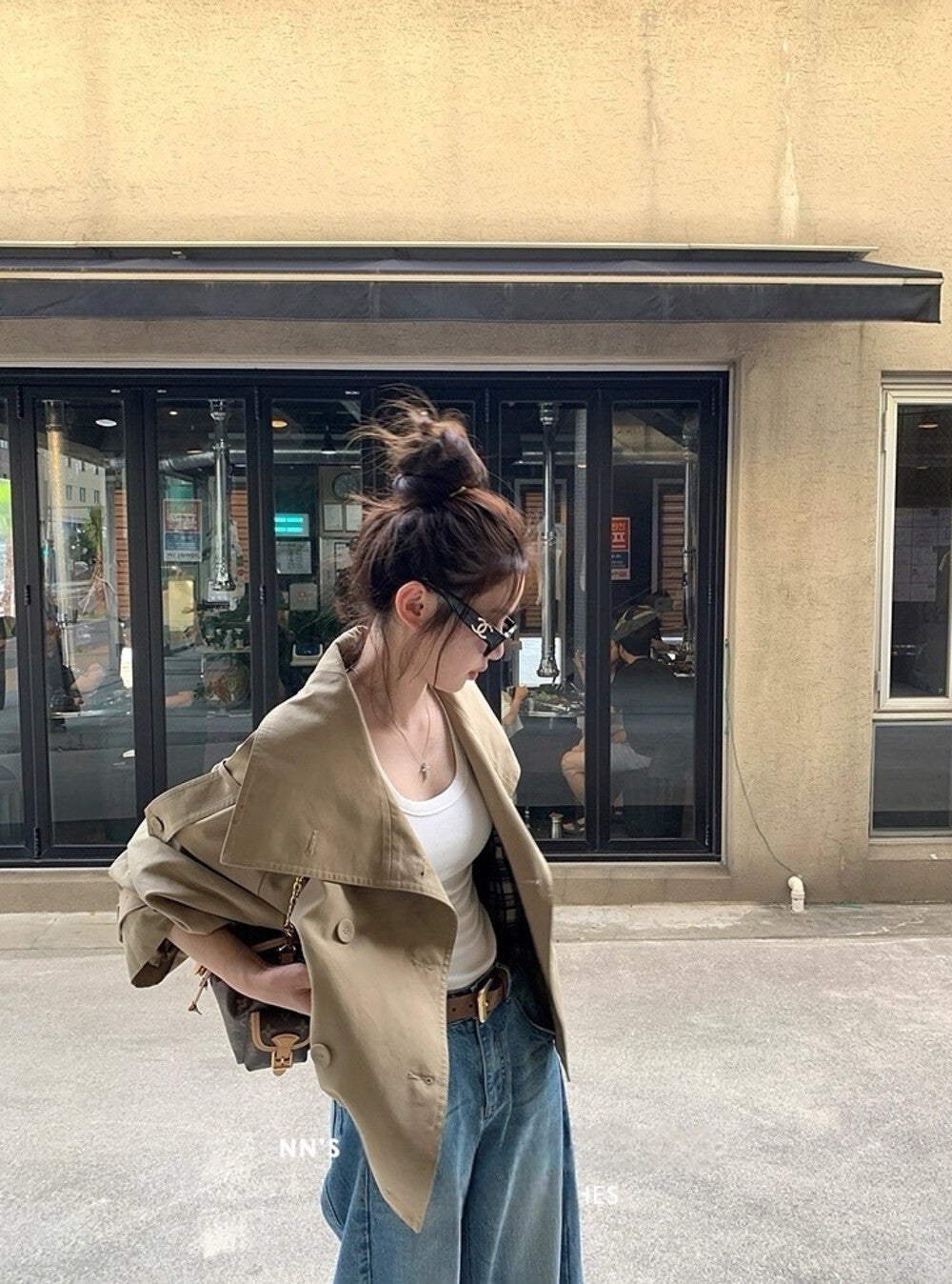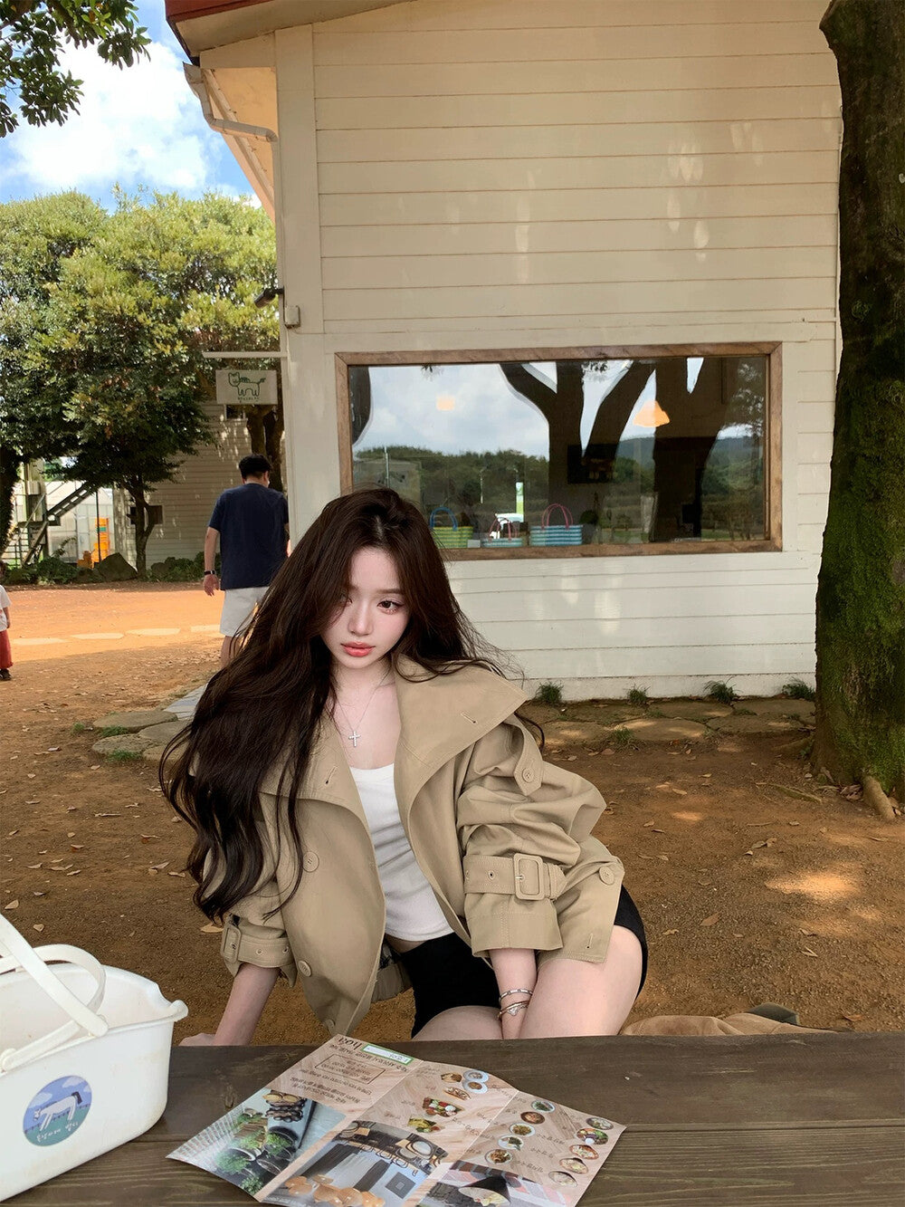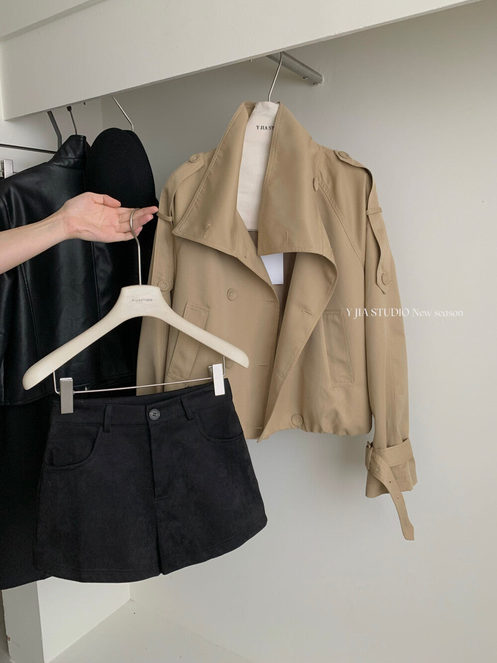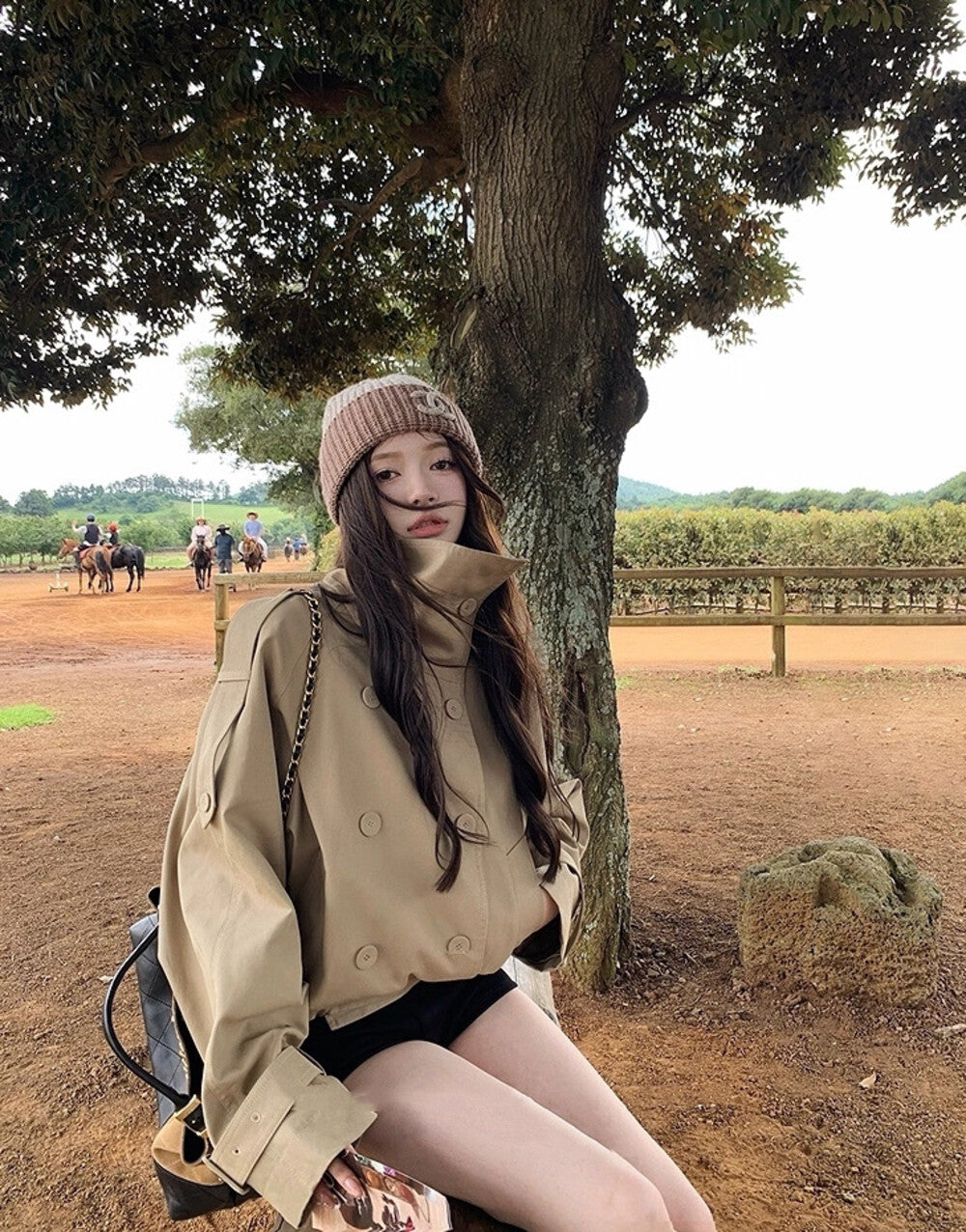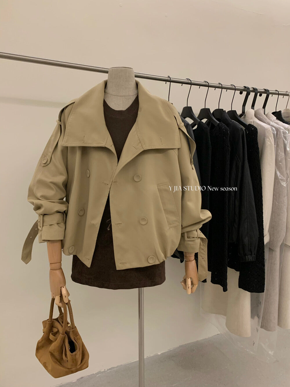 3. 【C7224】倫敦故事雙排扣立領寬鬆百搭風衣短外套
