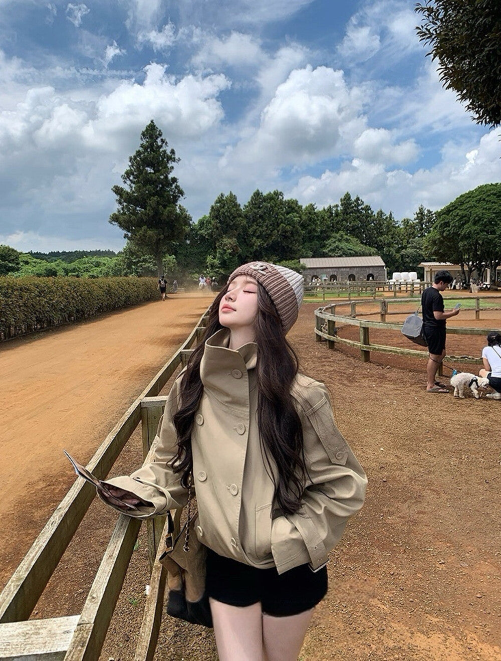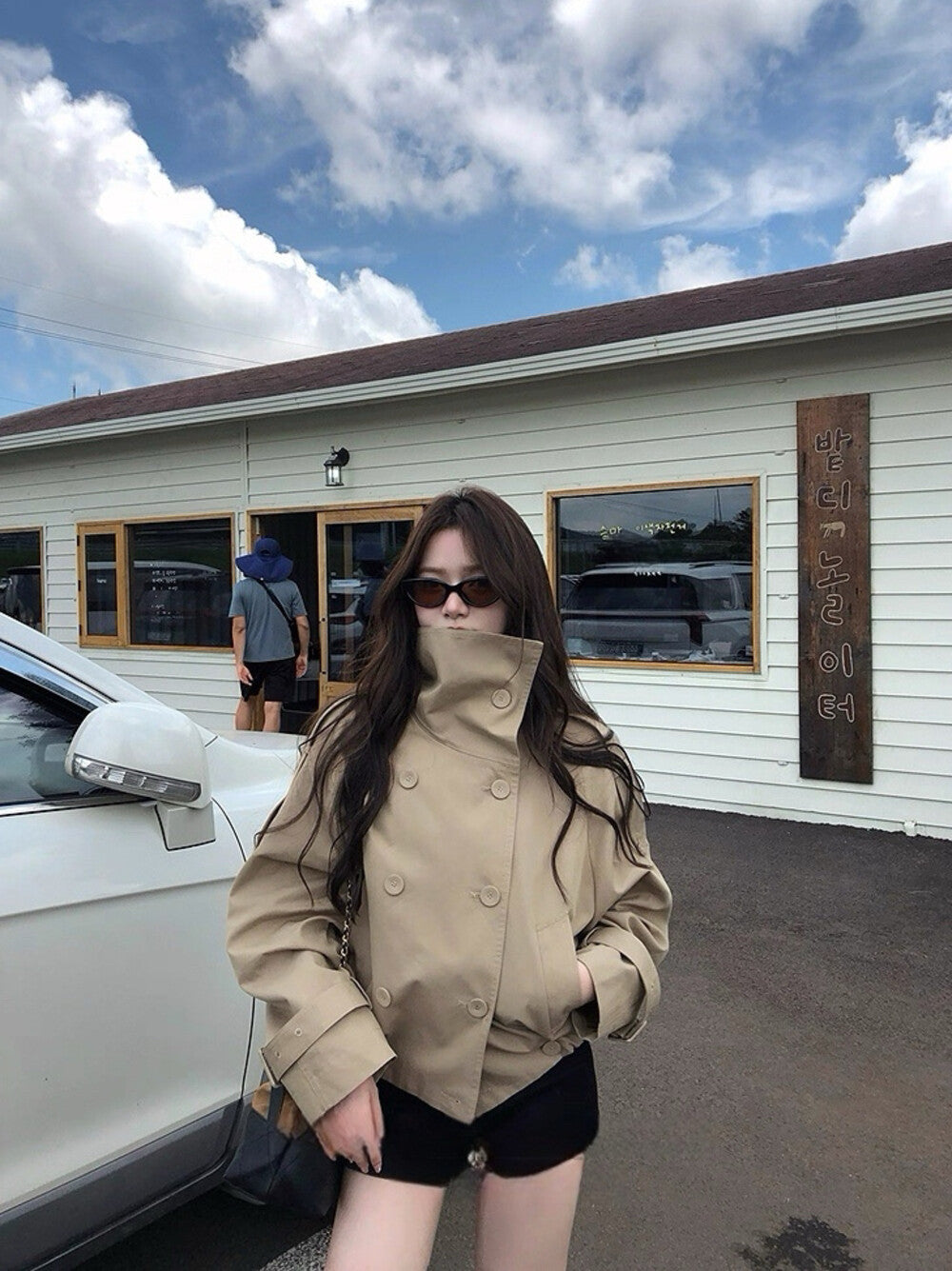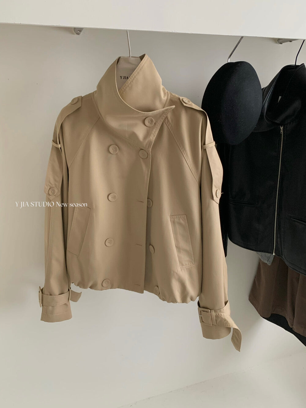 【C7224】倫敦故事雙排扣立領寬鬆百搭風衣短外套