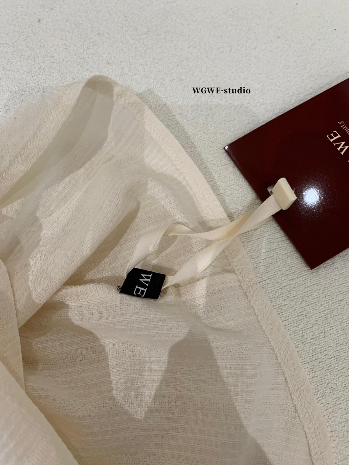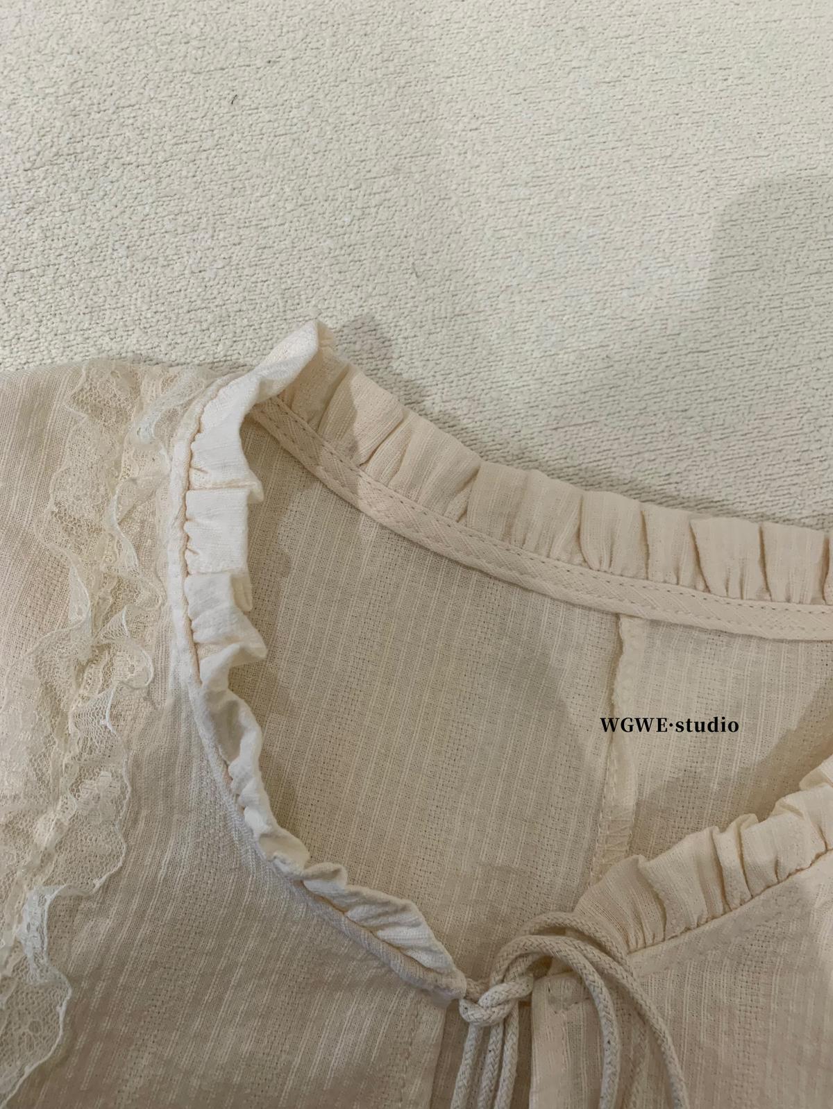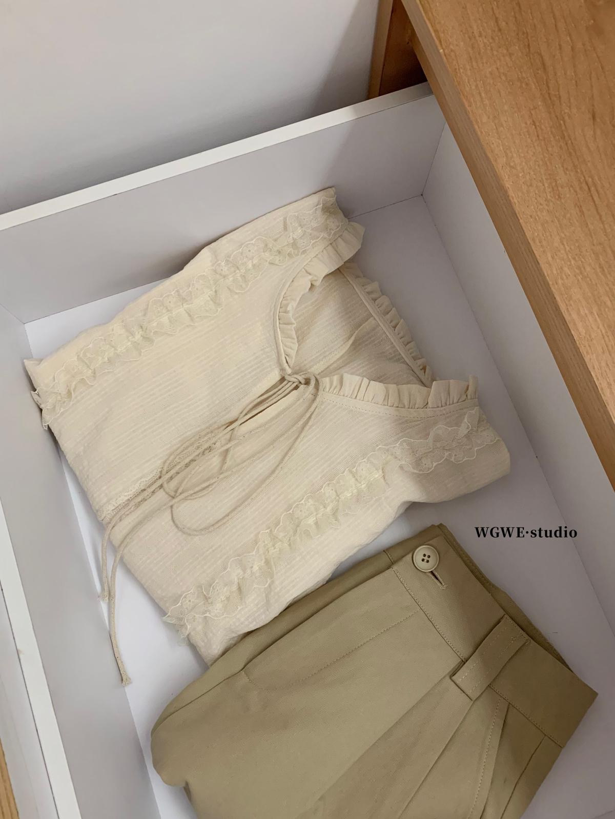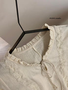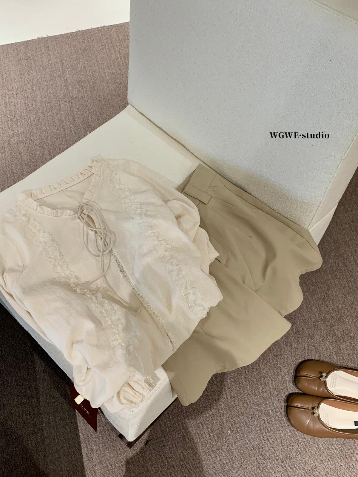 【C7235】法式繫帶木耳邊邊設計感溫柔寬鬆長袖新款簡約高級感小衫