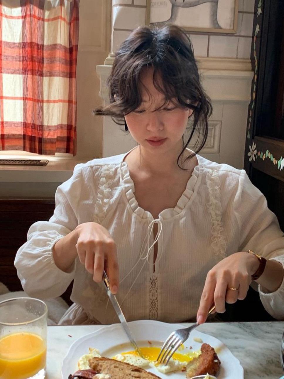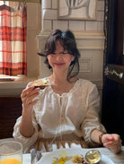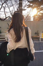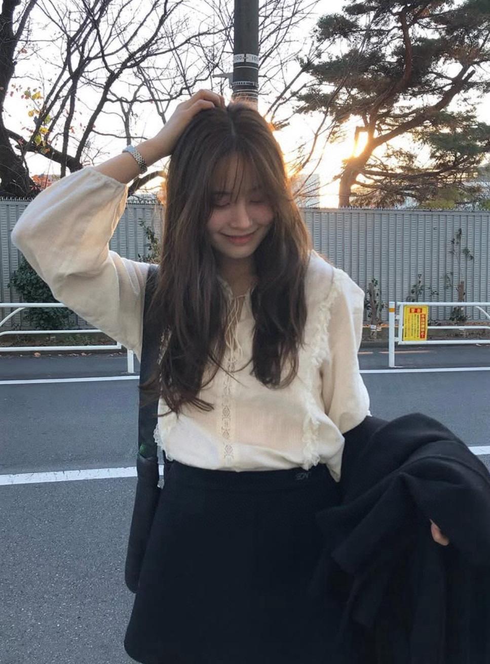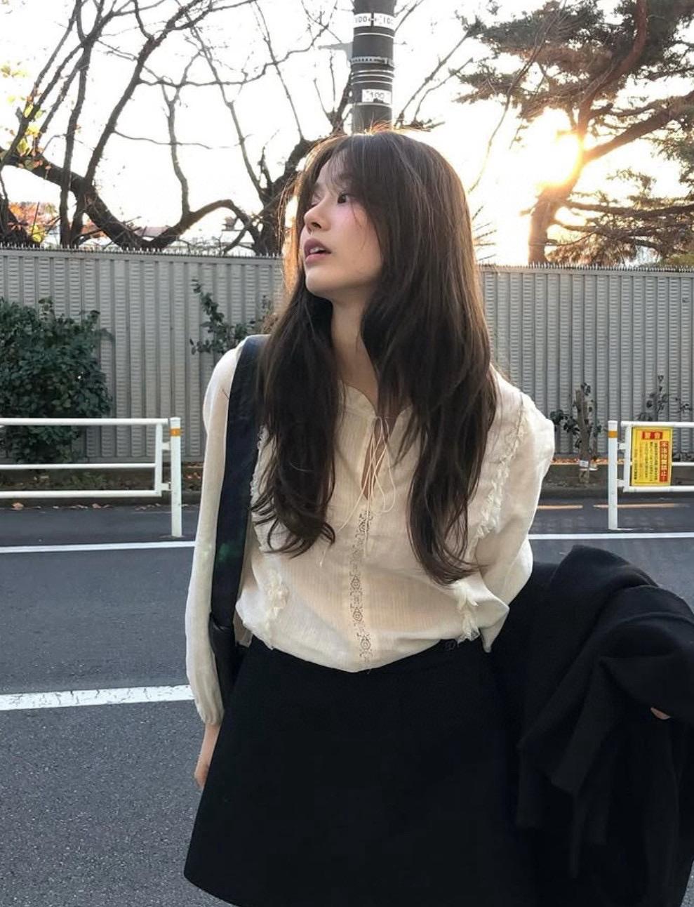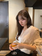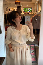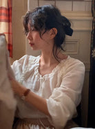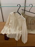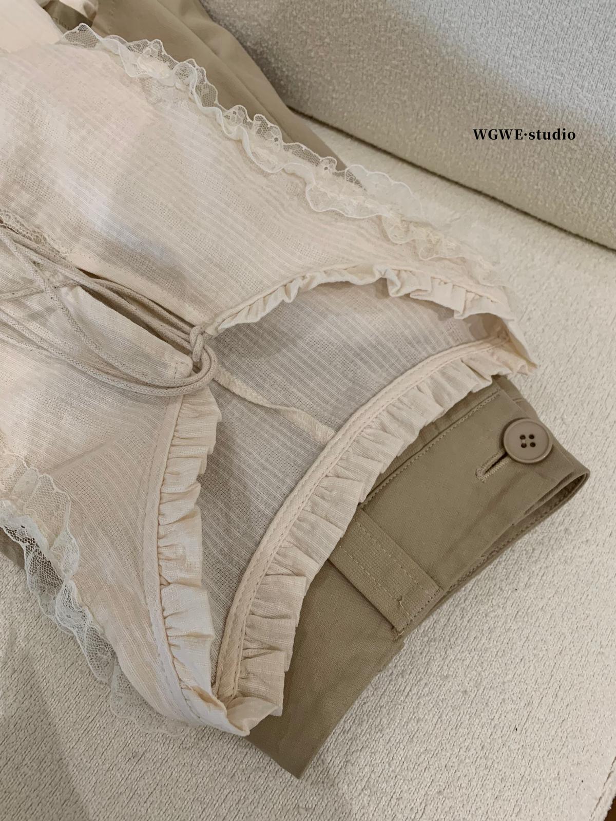 【C7235】法式繫帶木耳邊邊設計感溫柔寬鬆長袖新款簡約高級感小衫