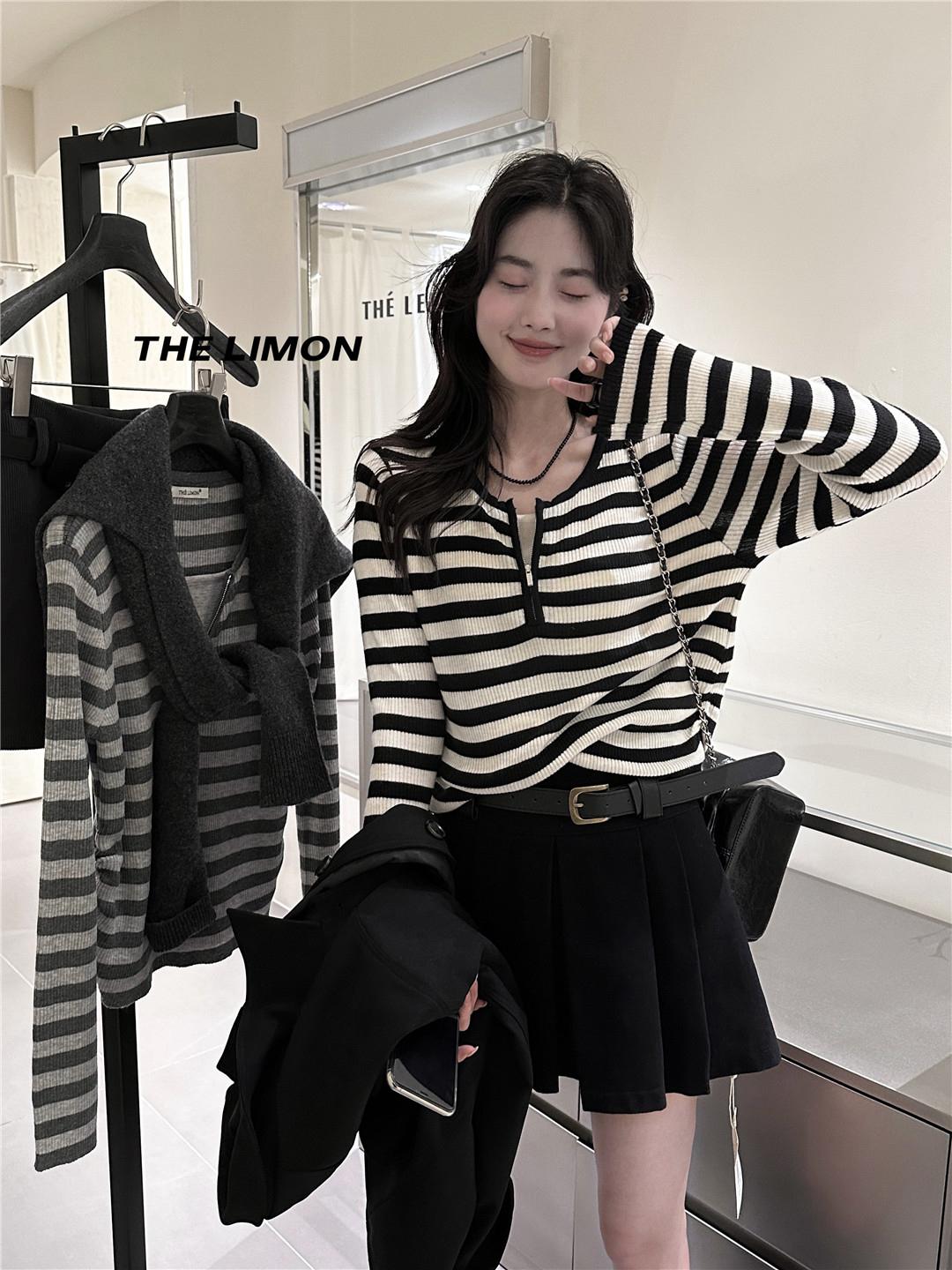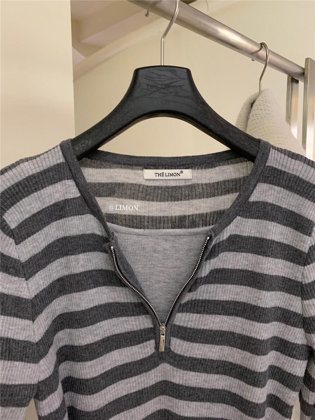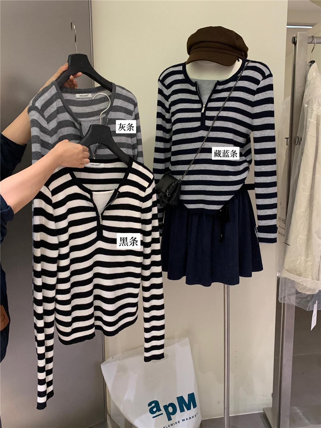3. 【C7246】韓系氛圍感假兩件條紋針織衫(含6%羊毛)