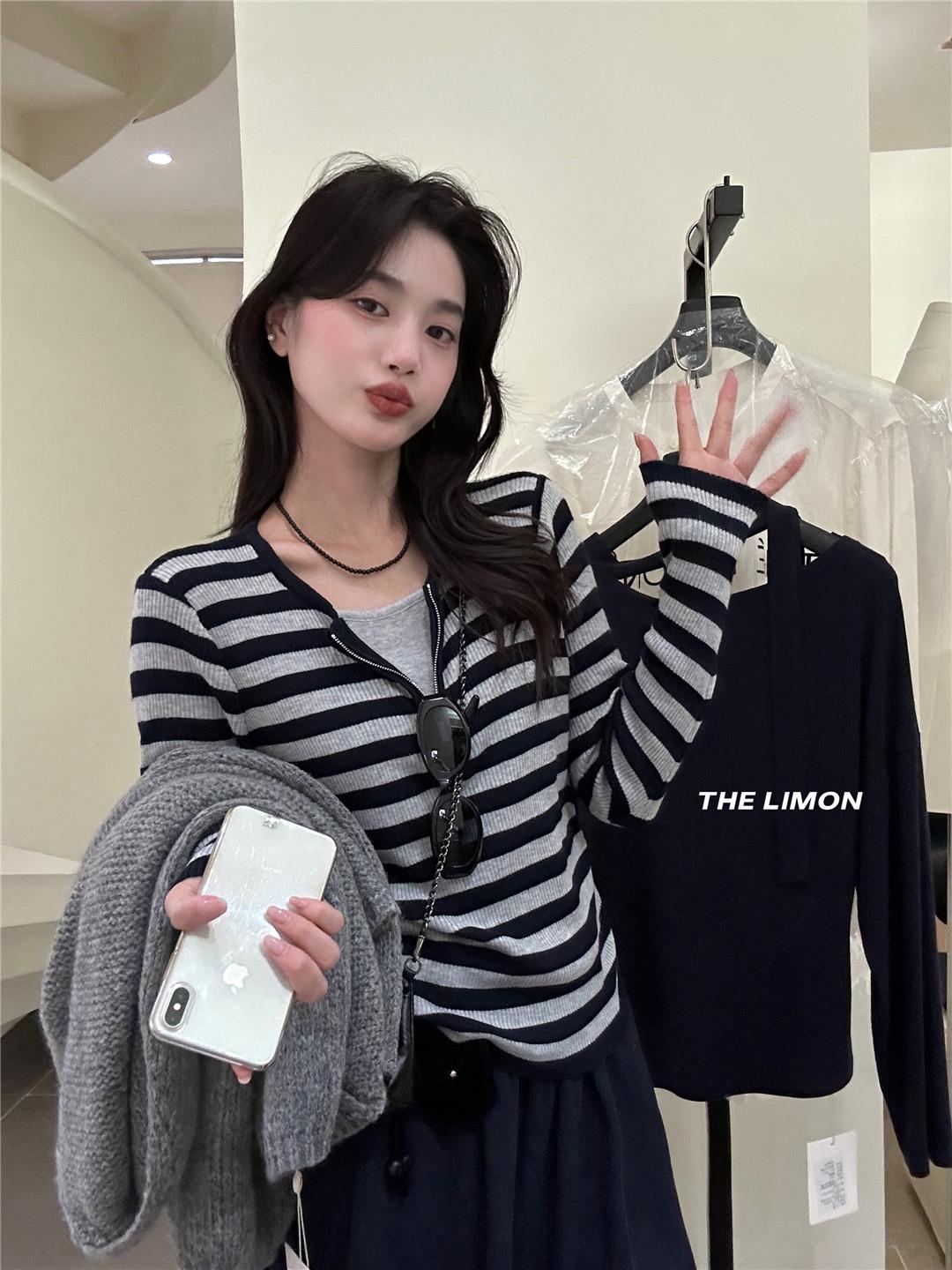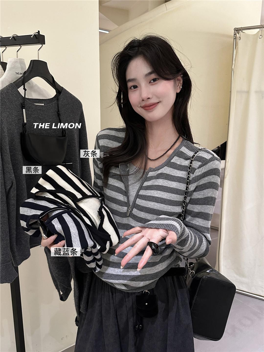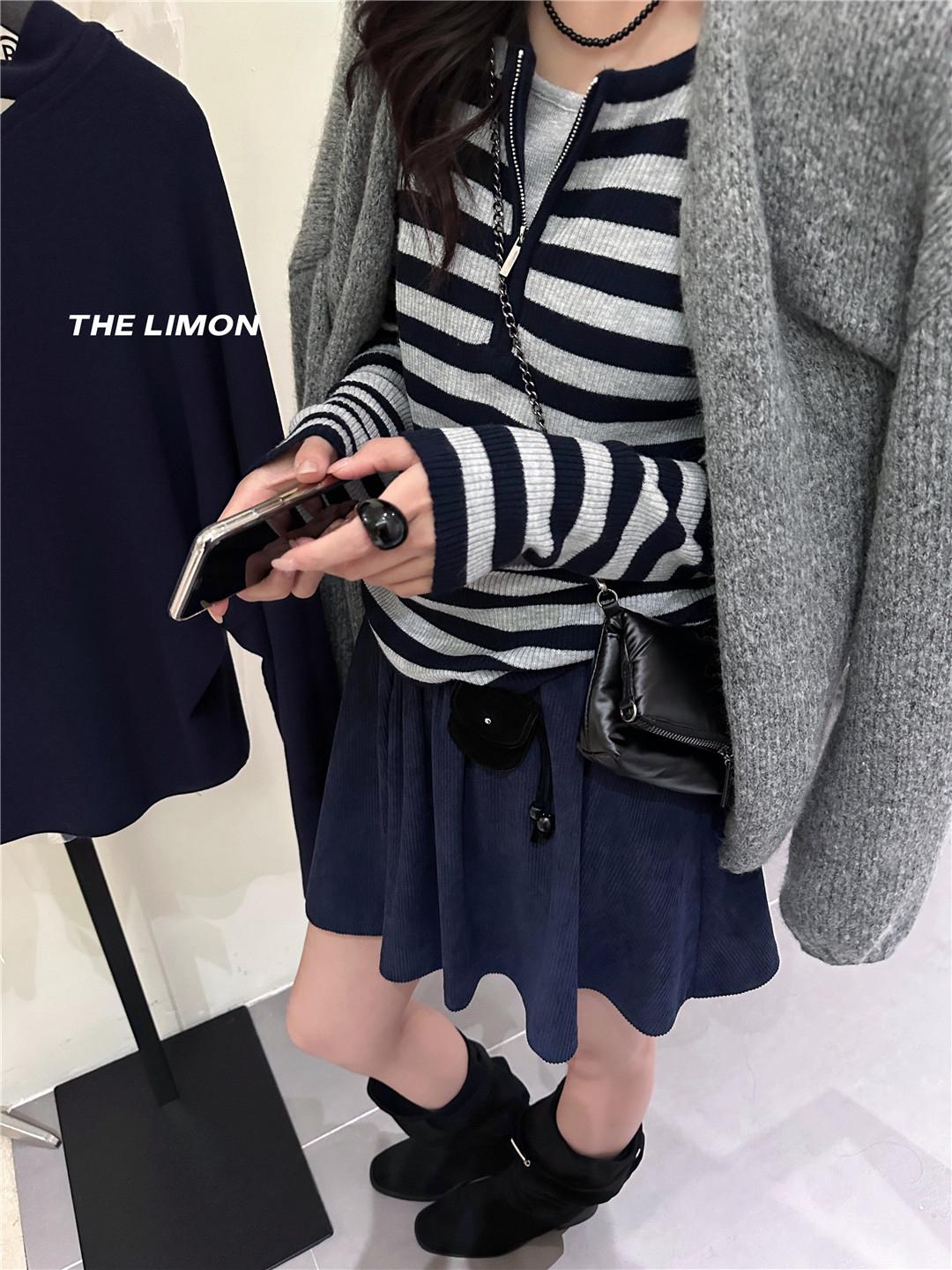 3. 【C7246】韓系氛圍感假兩件條紋針織衫(含6%羊毛)