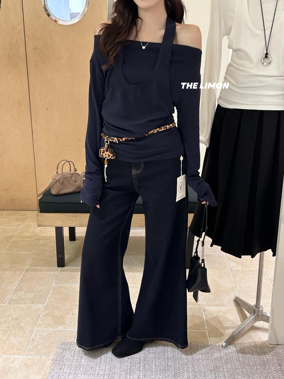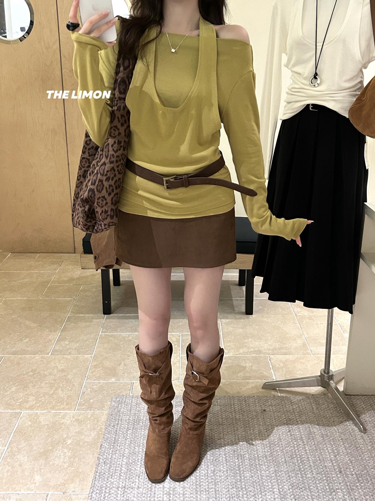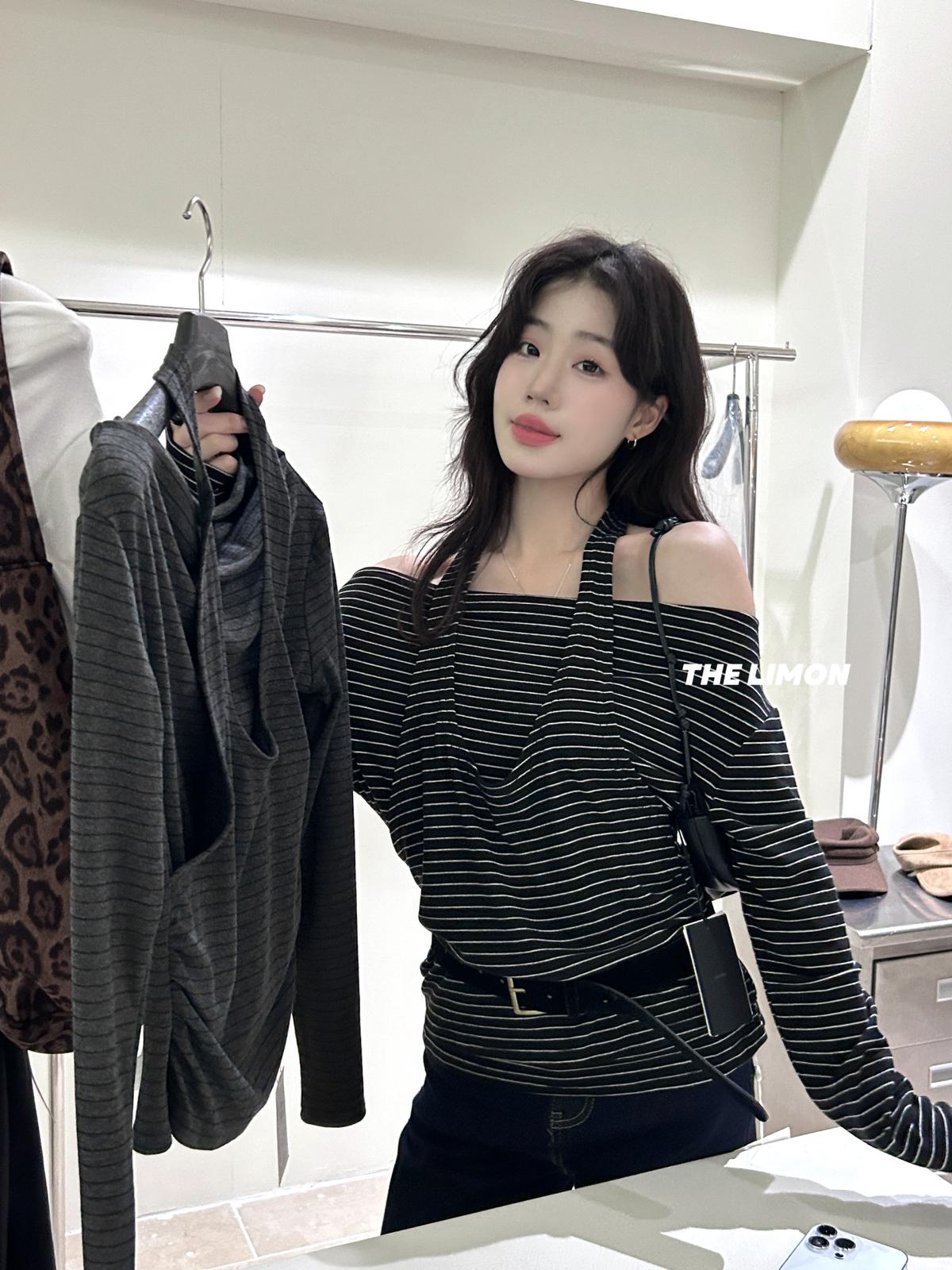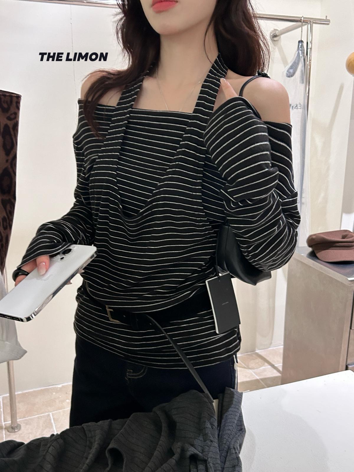 3. 【C7252】鬆弛又純欲穿搭!掛脖式假兩件長袖T恤