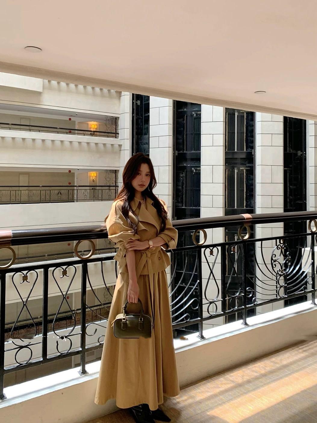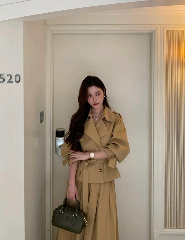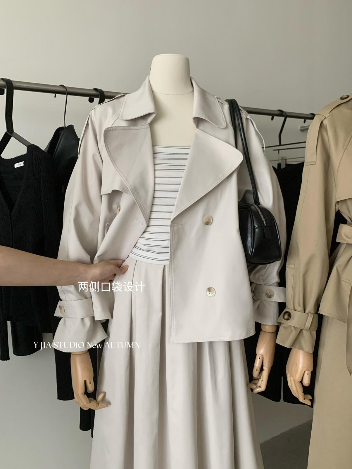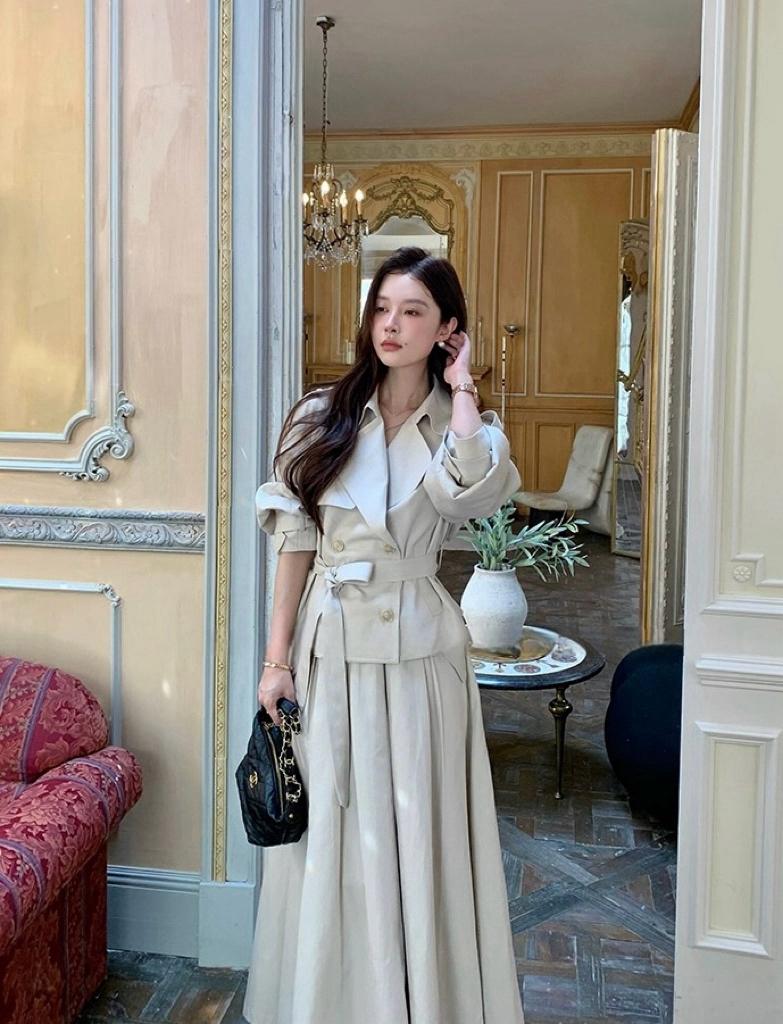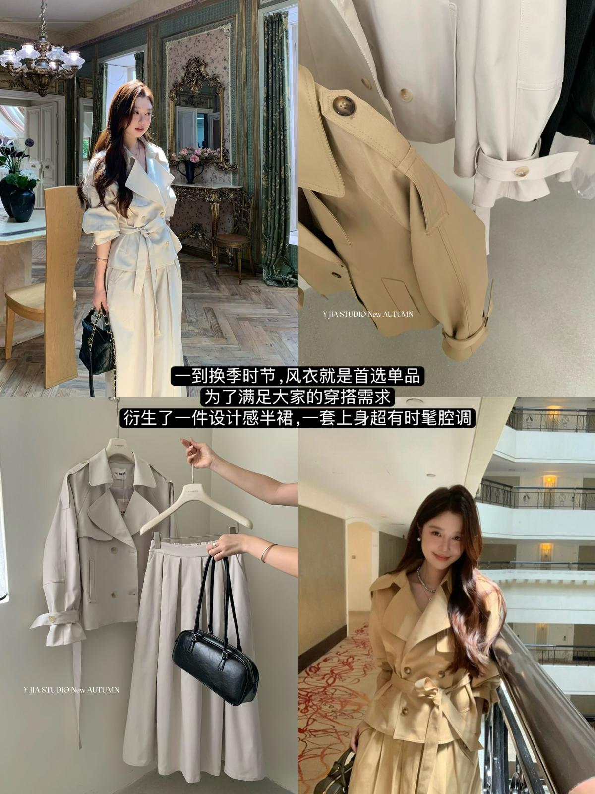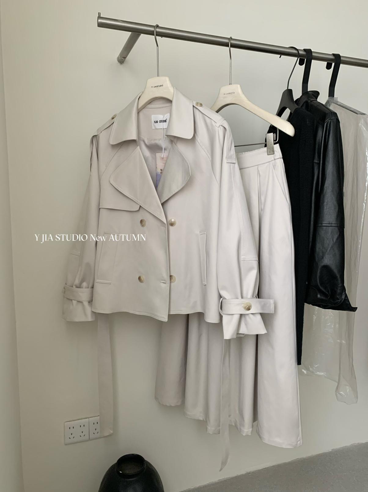 【C7256】英倫畫刊風衣+半身裙一套上身超有時髦腔調套裝(配腰繩)