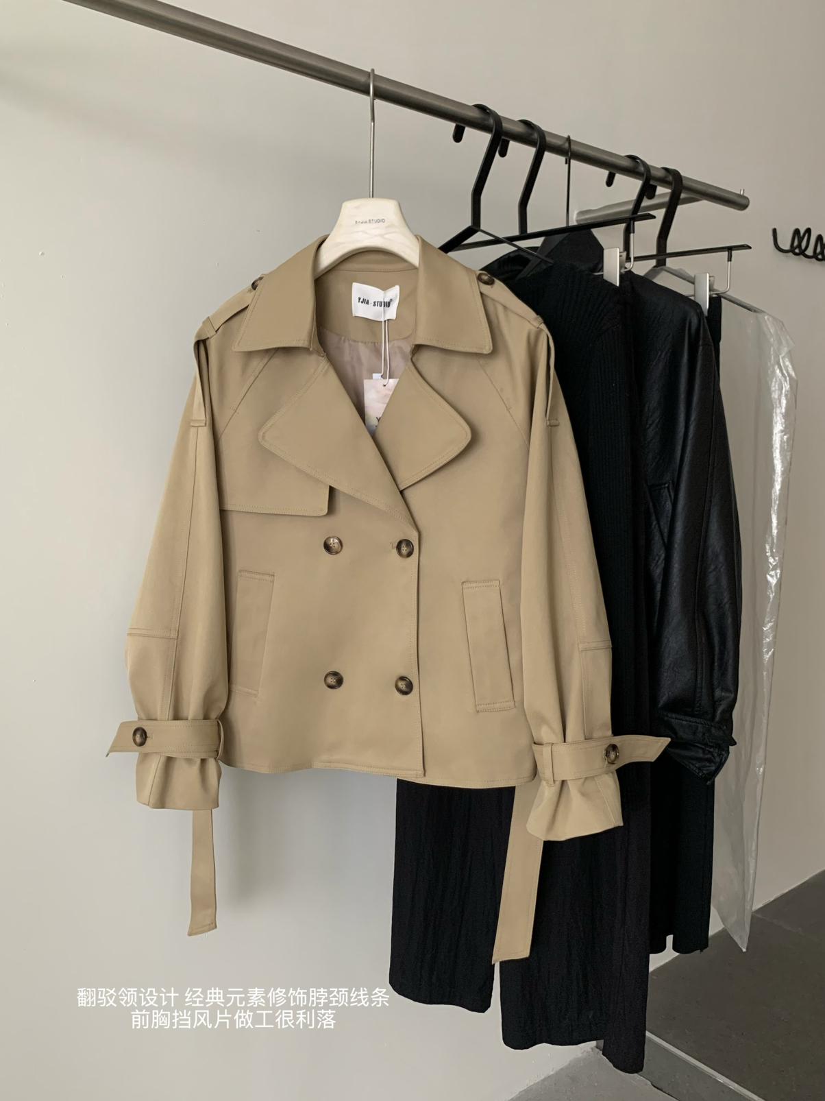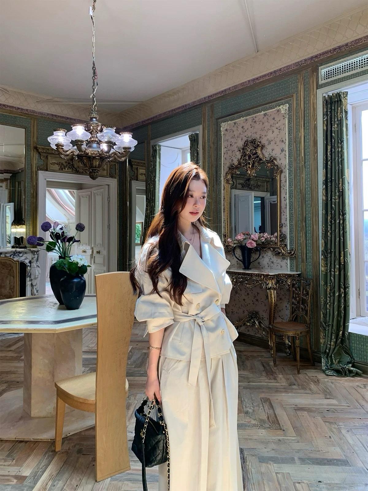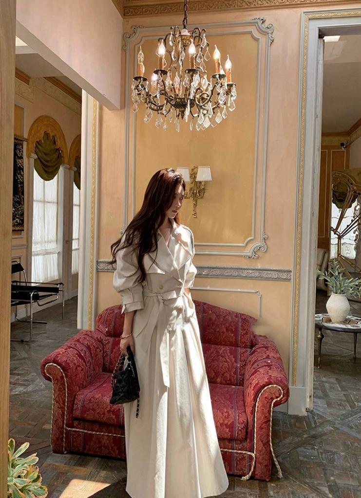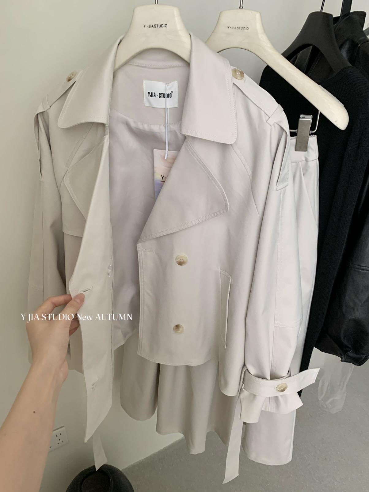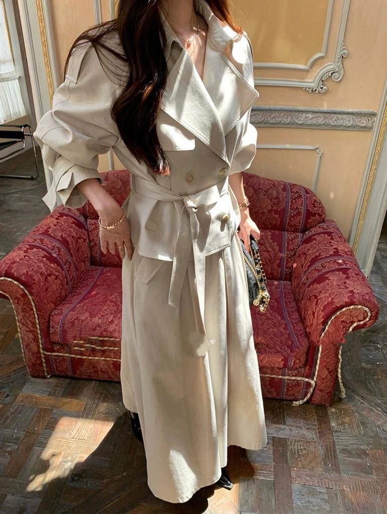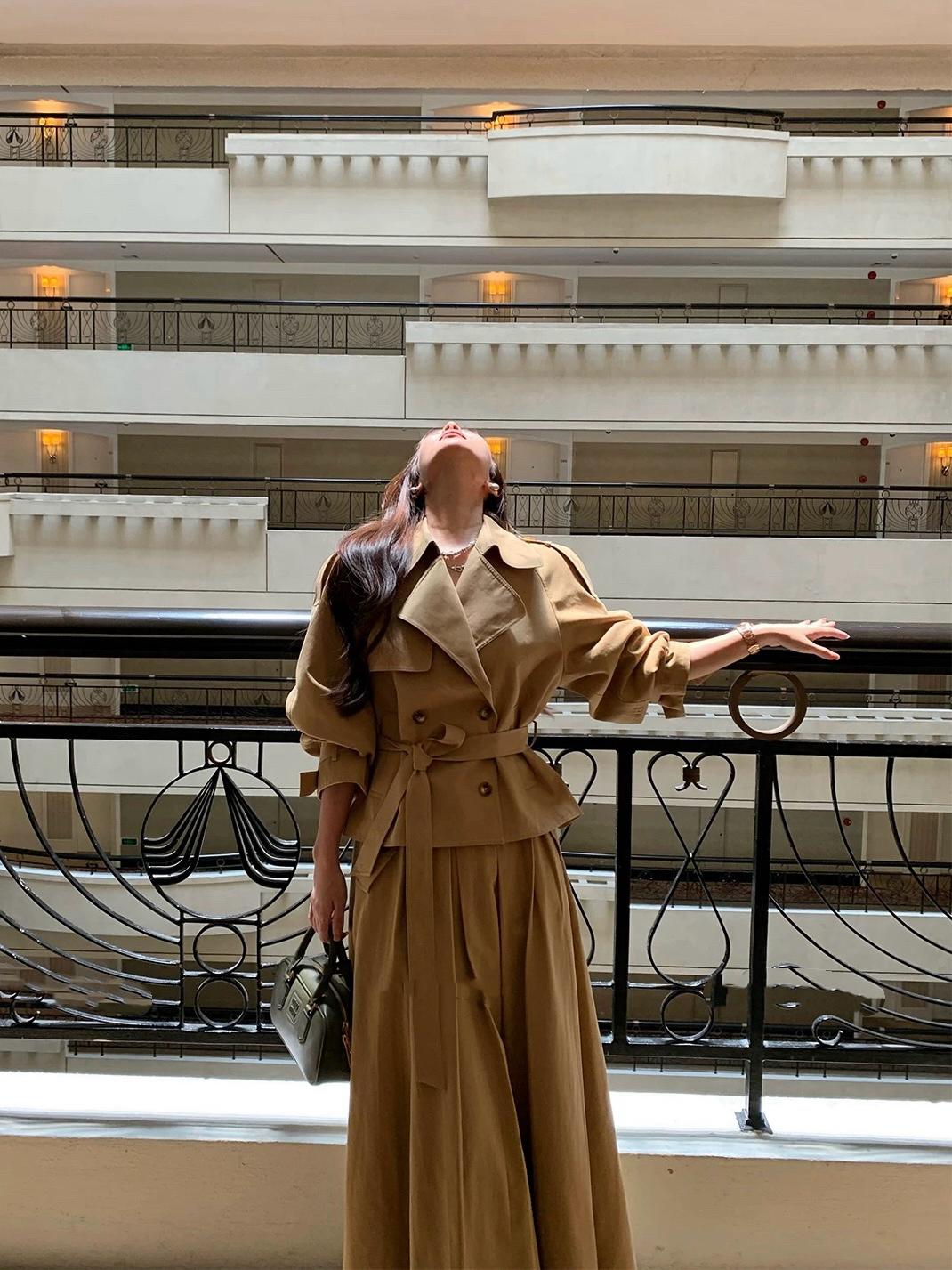 【C7256】英倫畫刊風衣+半身裙一套上身超有時髦腔調套裝(配腰繩)