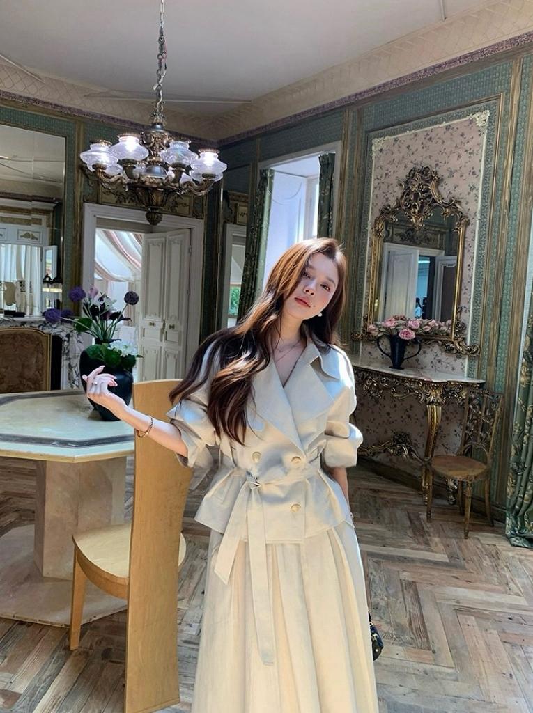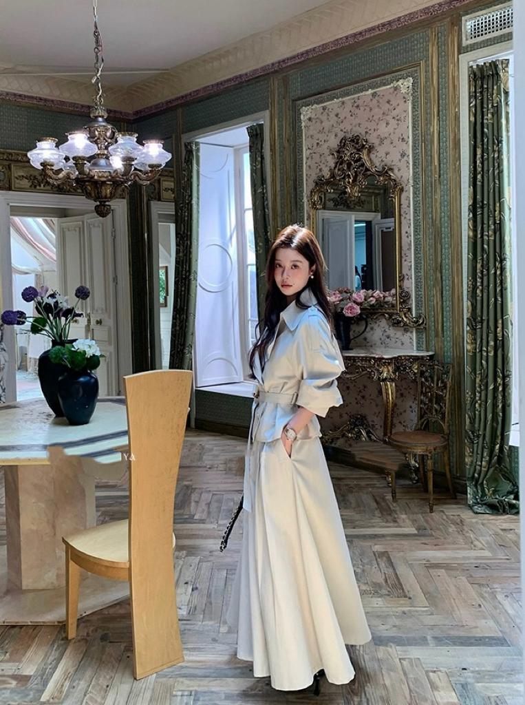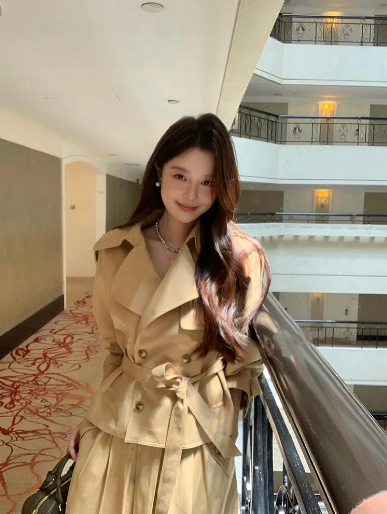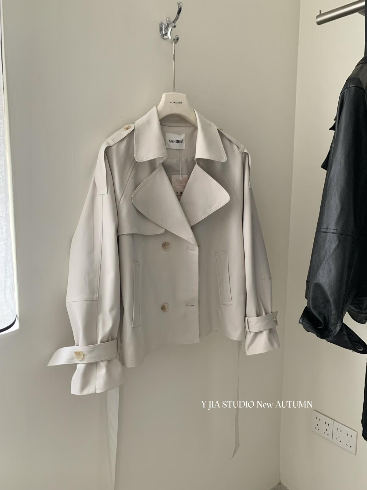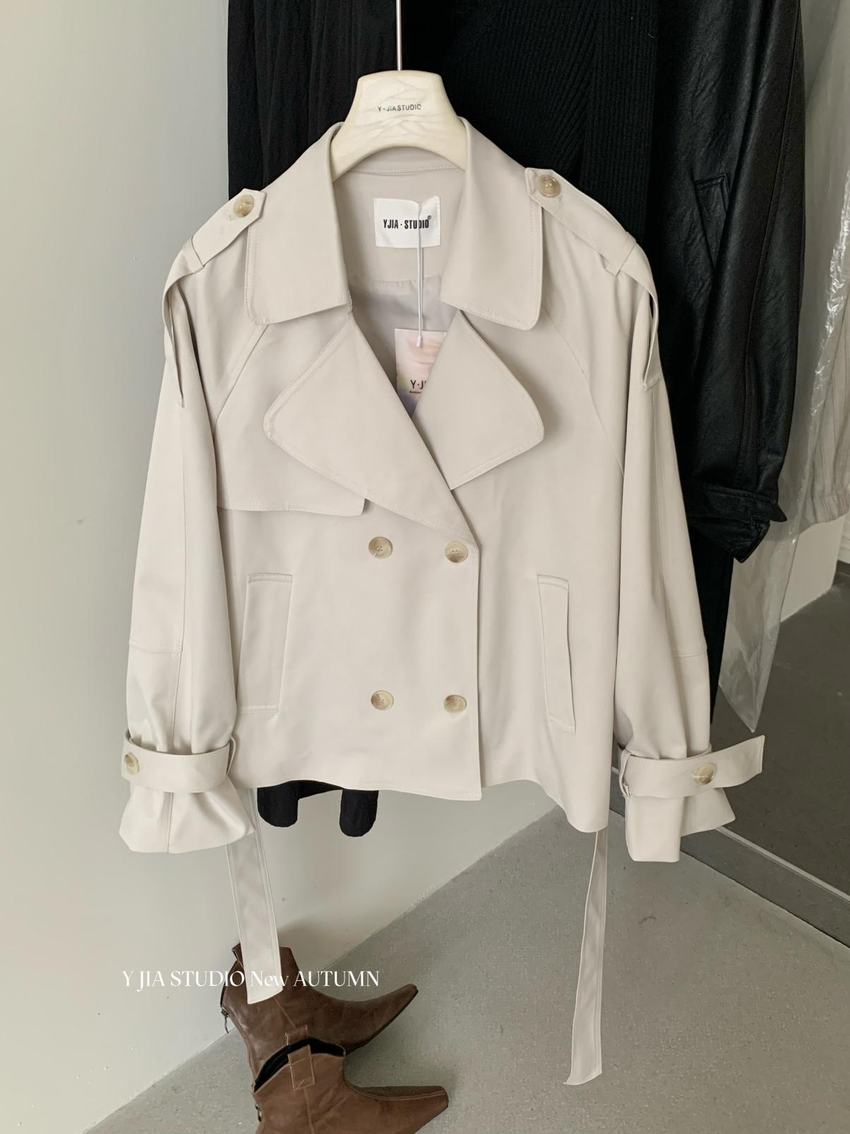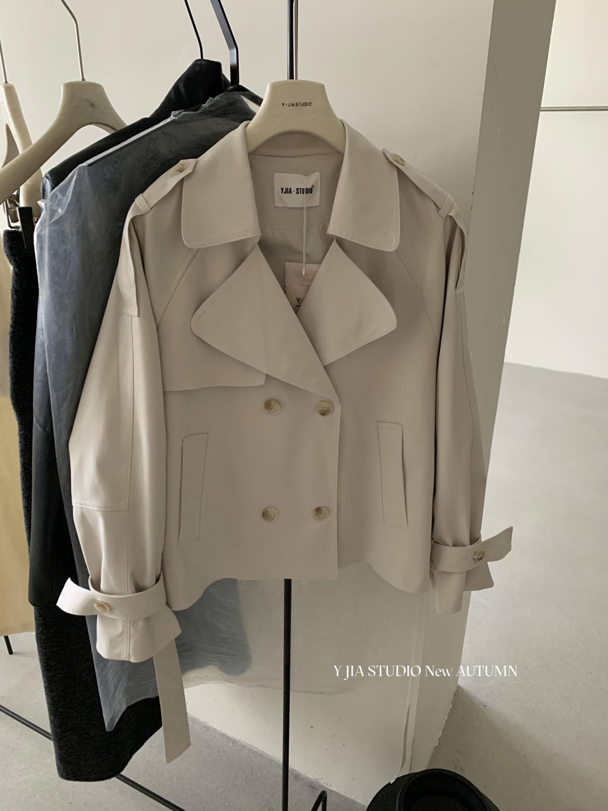 【C7256】英倫畫刊風衣+半身裙一套上身超有時髦腔調套裝(配腰繩)