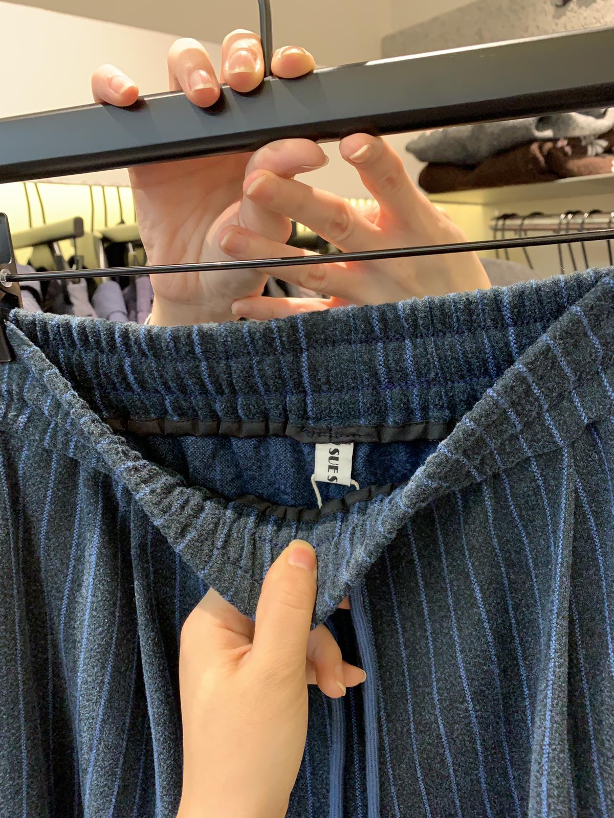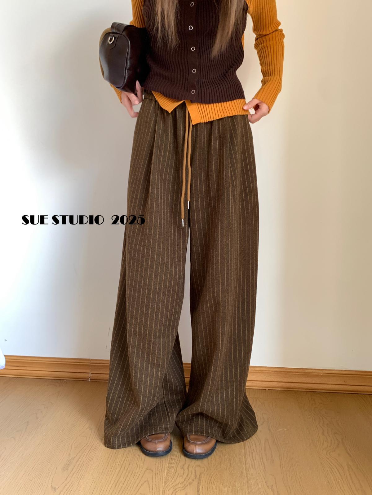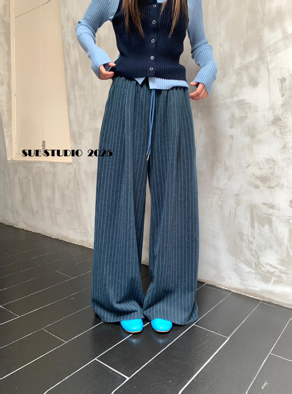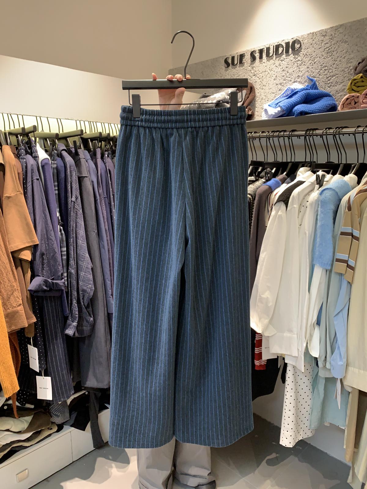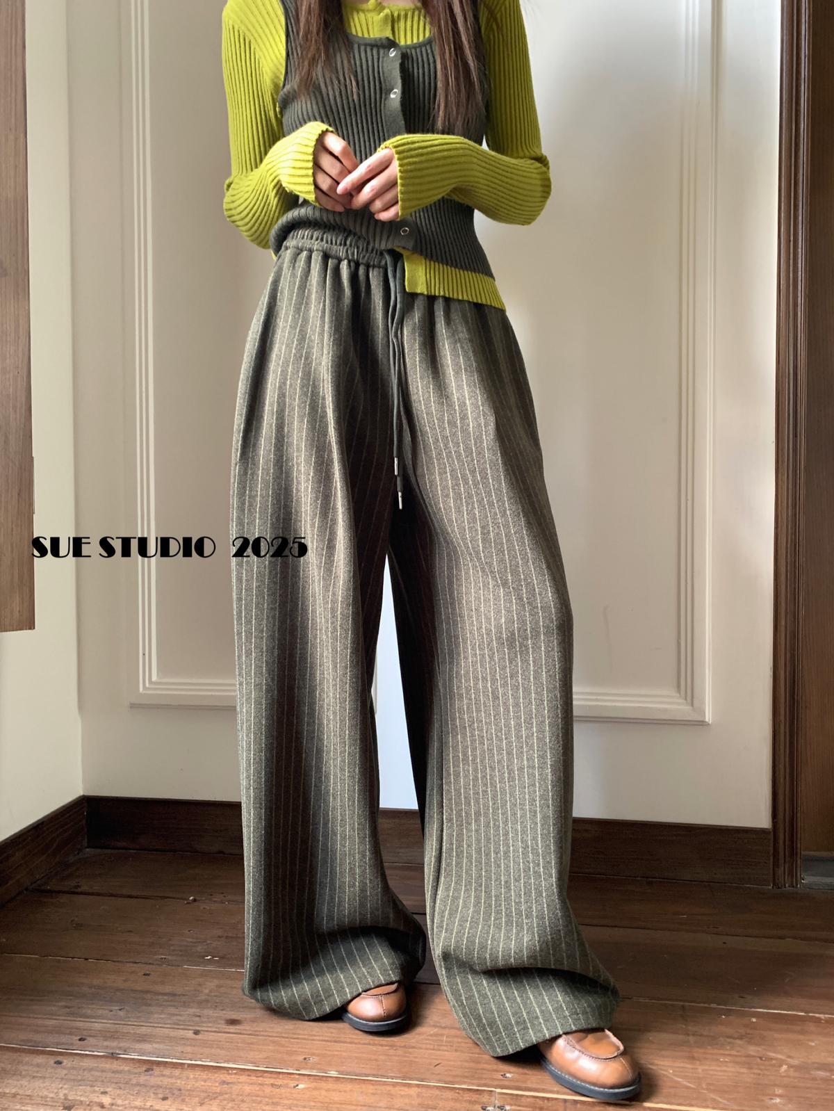 【C7277】韓系簡約加厚款豎紋鬆緊腰顯瘦顯高休閒褲