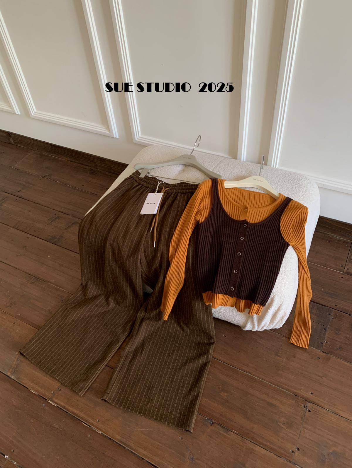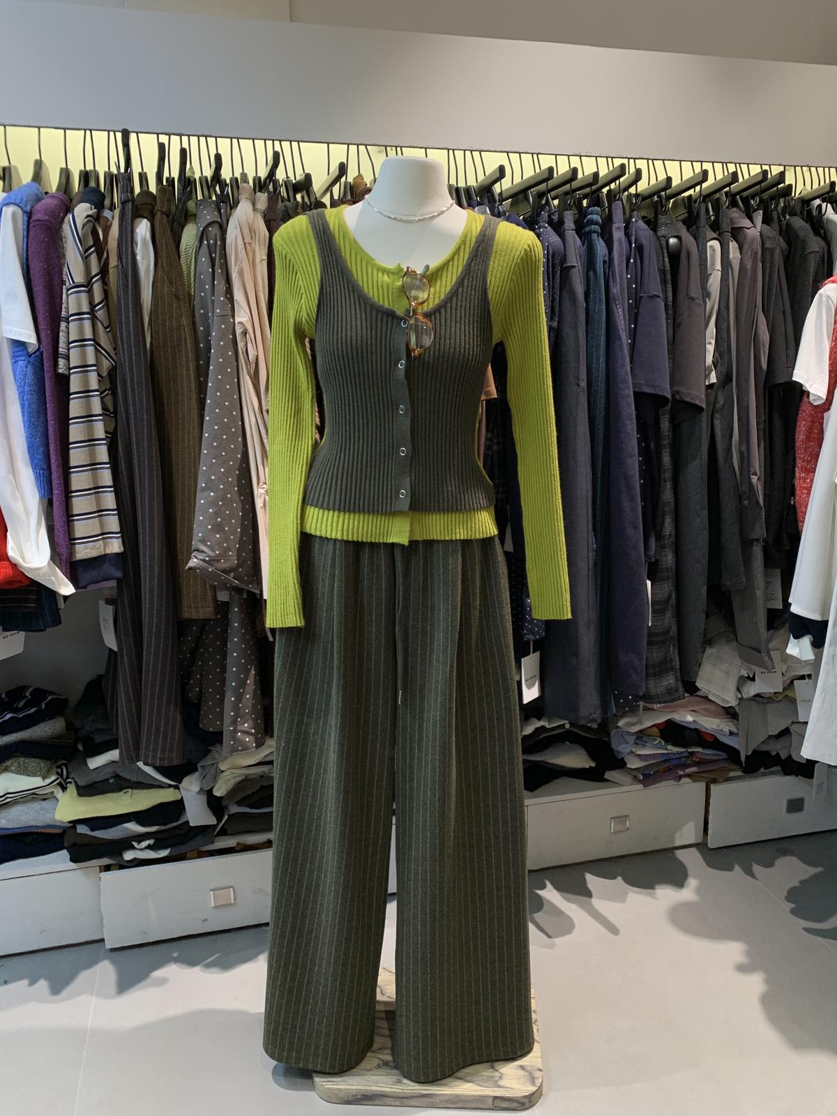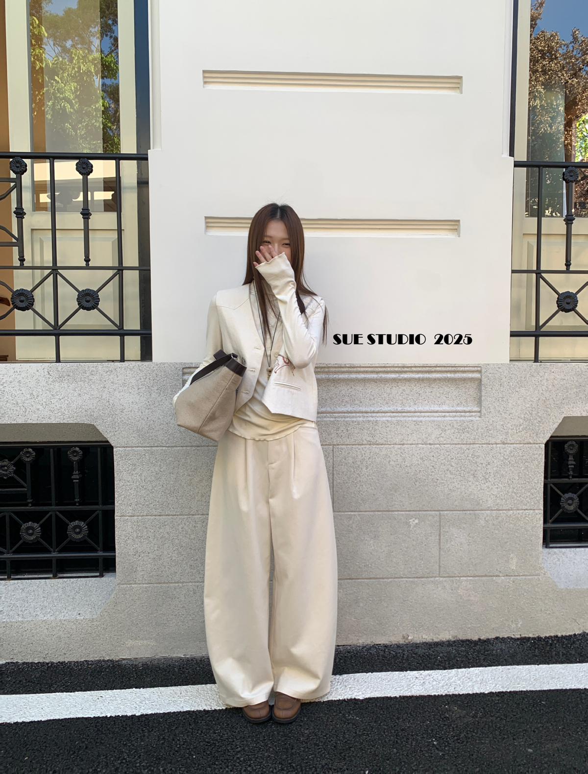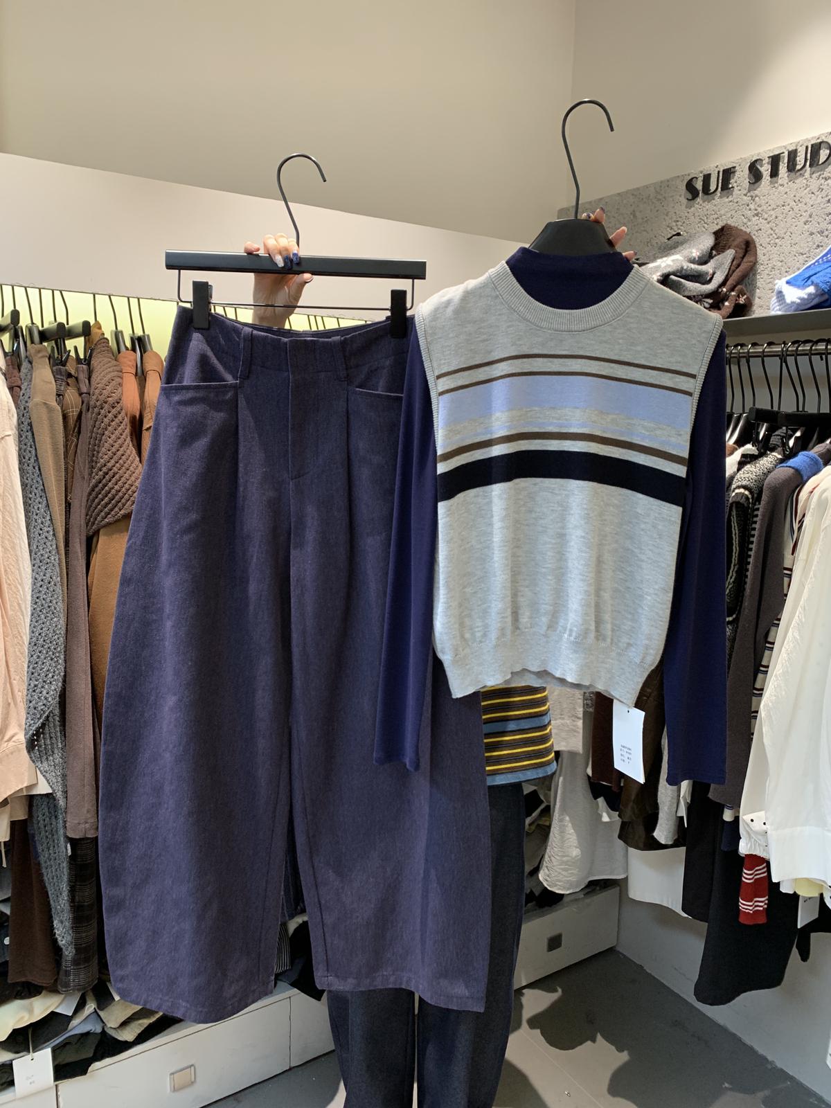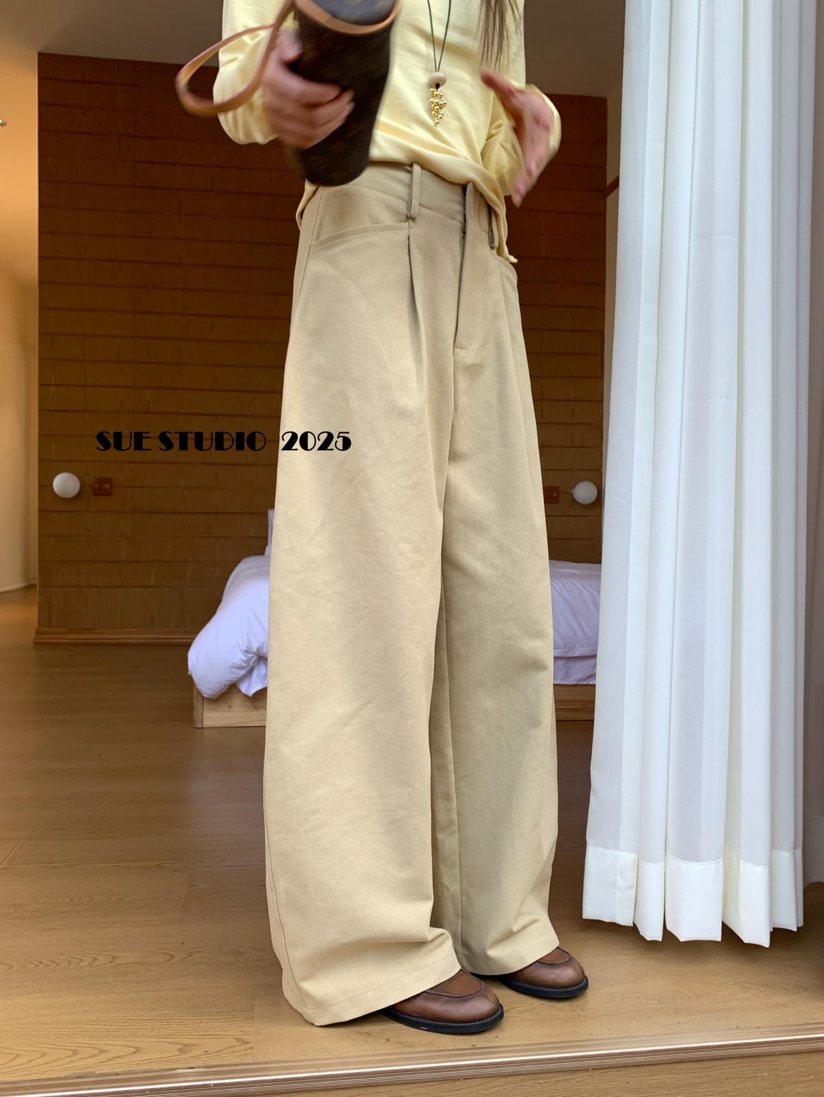 【C7277】韓系簡約加厚款豎紋鬆緊腰顯瘦顯高休閒褲