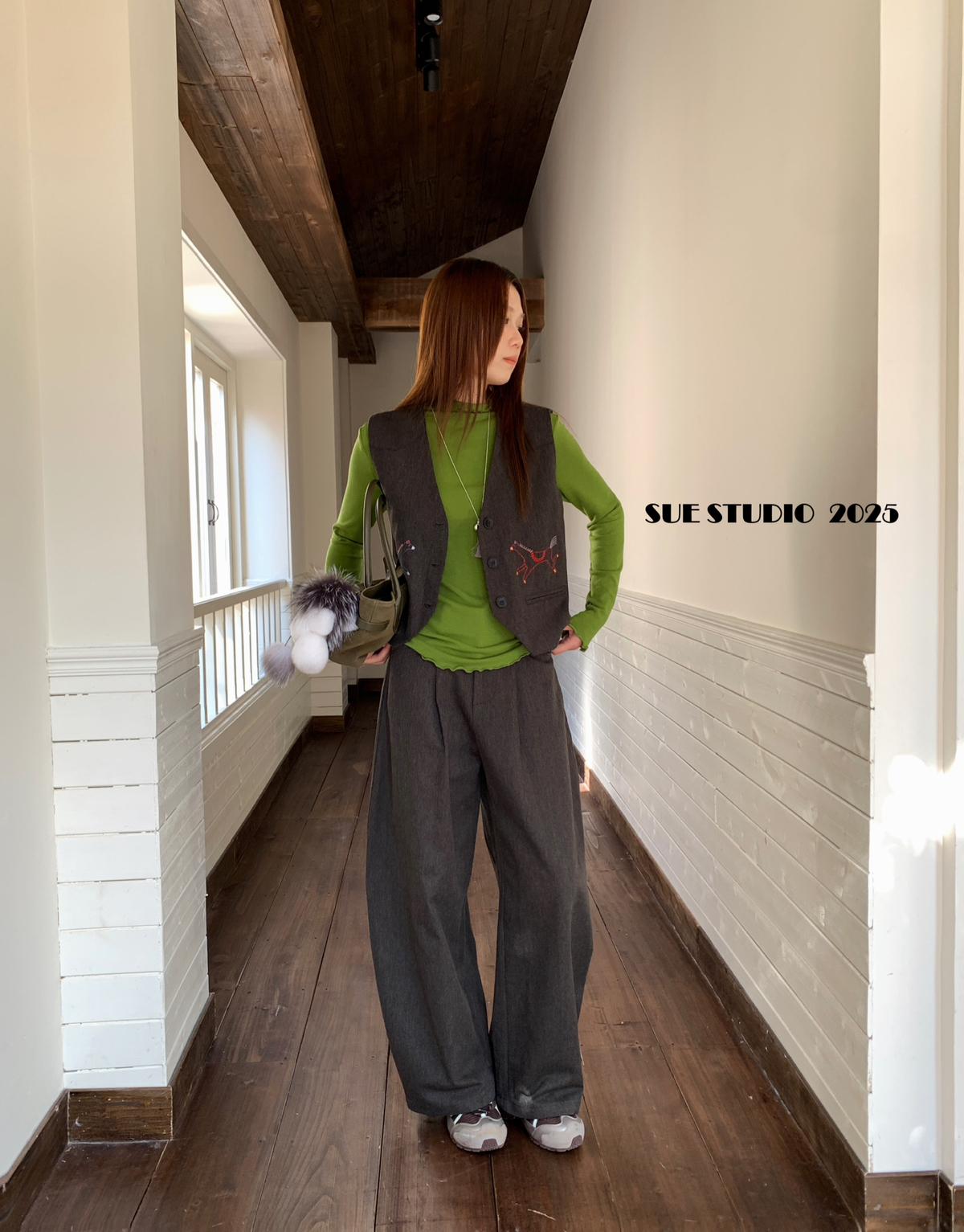 【C7275】韓系重工洗水斜紋鐮刀休閒褲