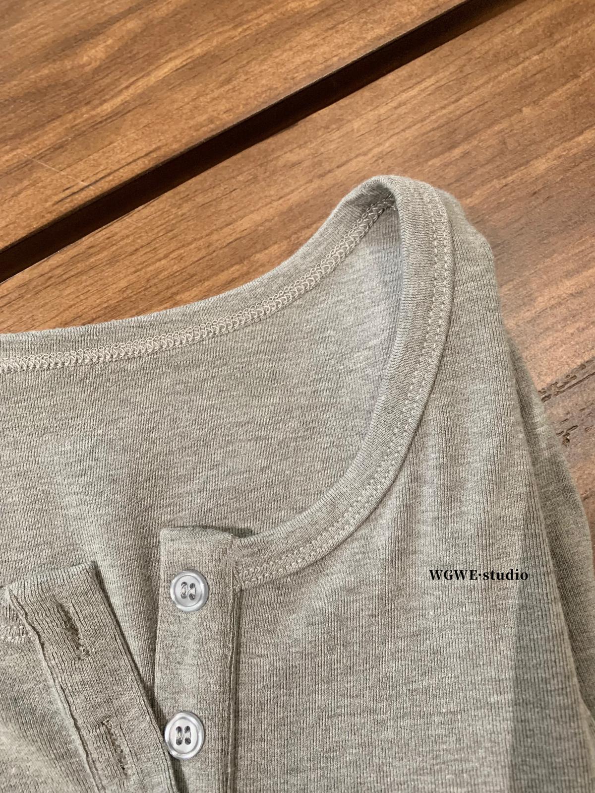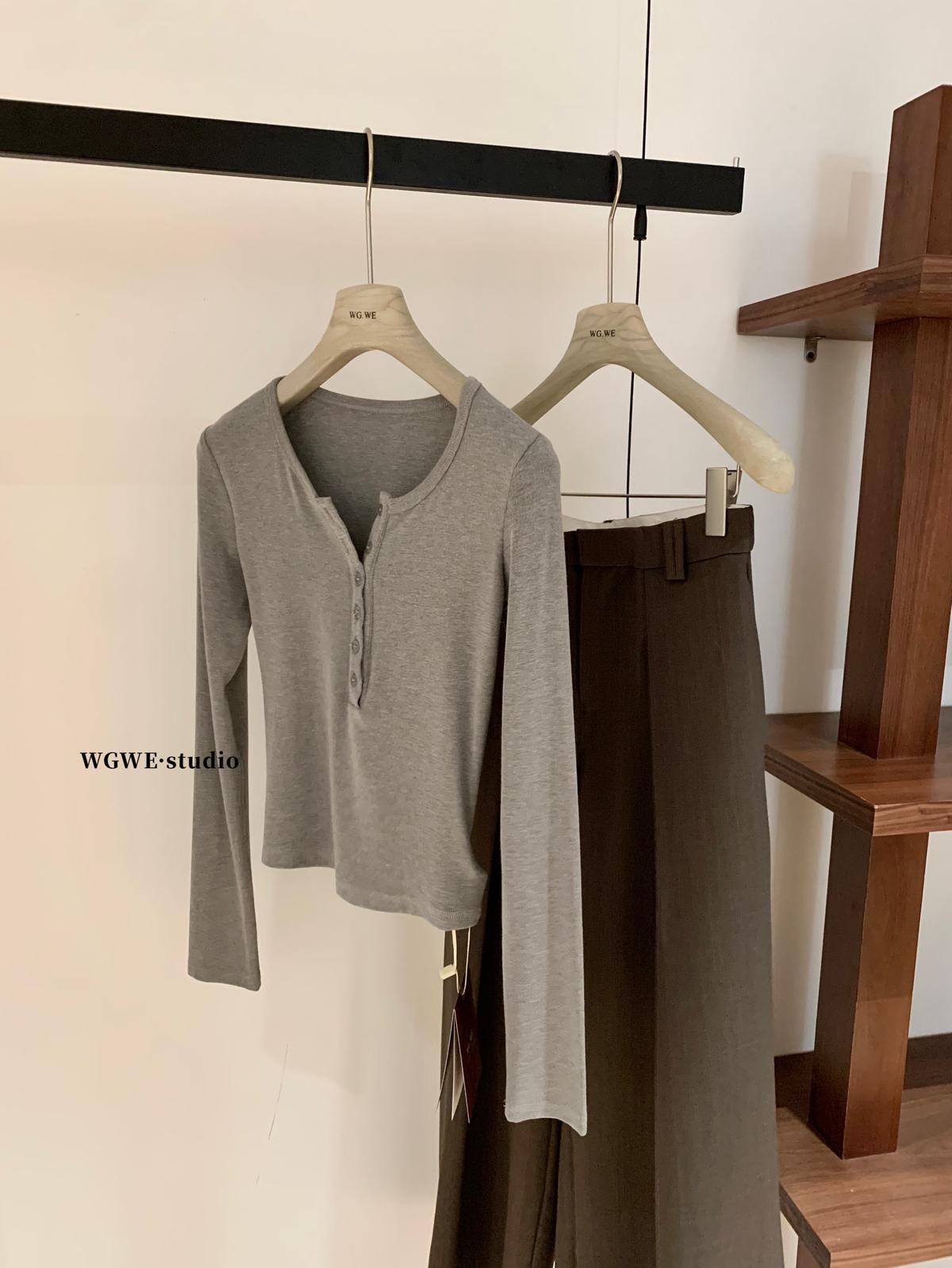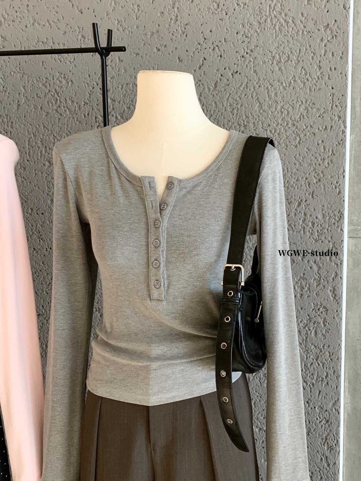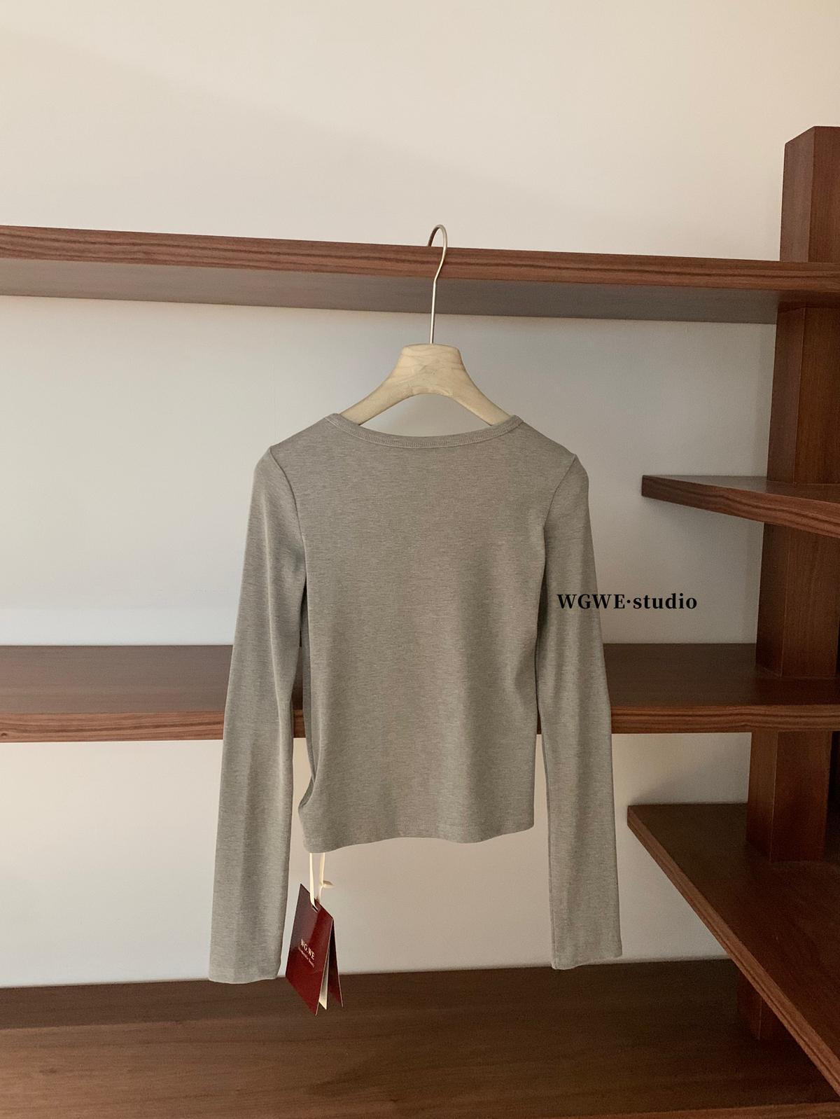 【C7258】半開領修身彈力T恤百搭打底衫長袖T恤