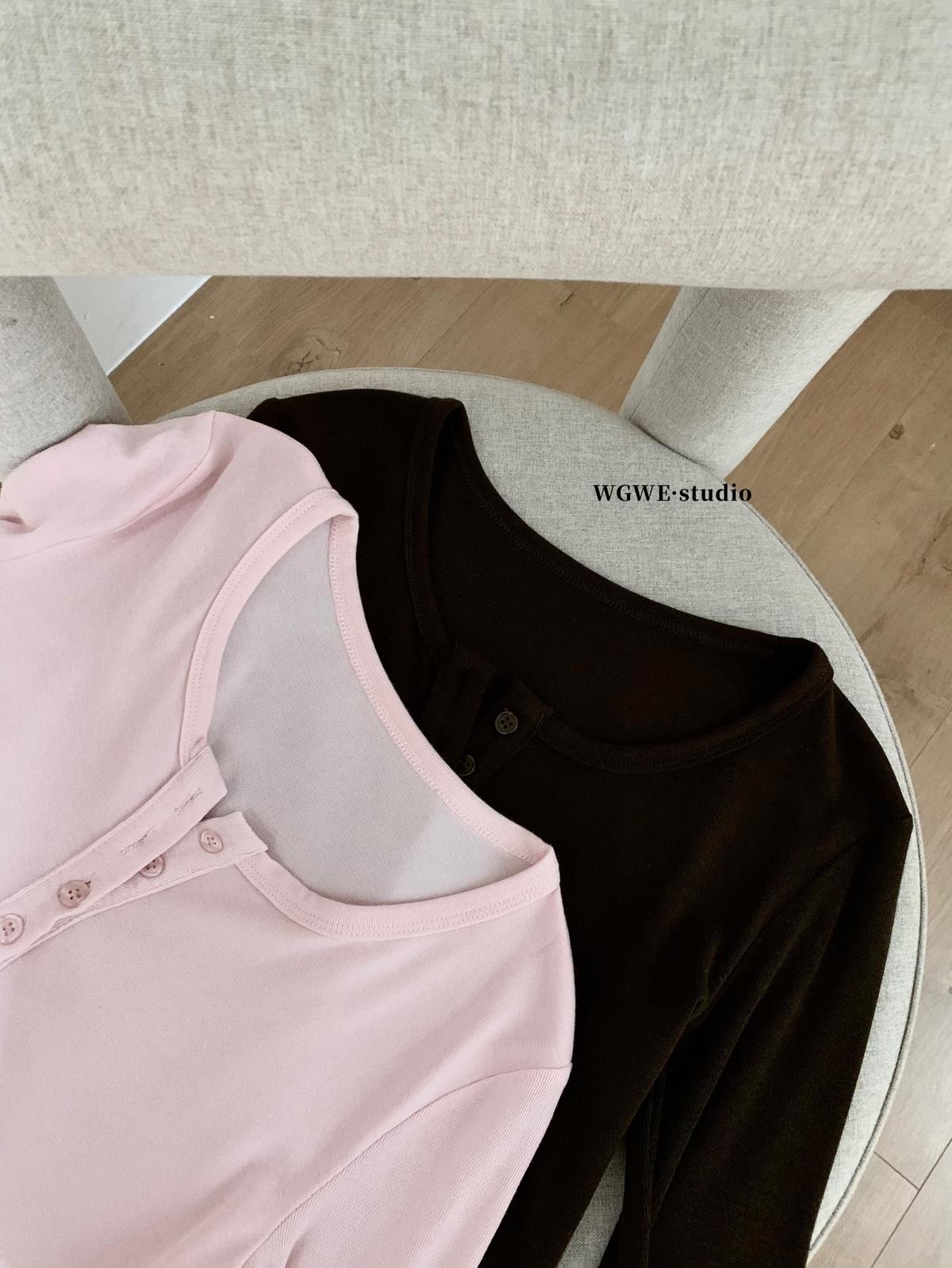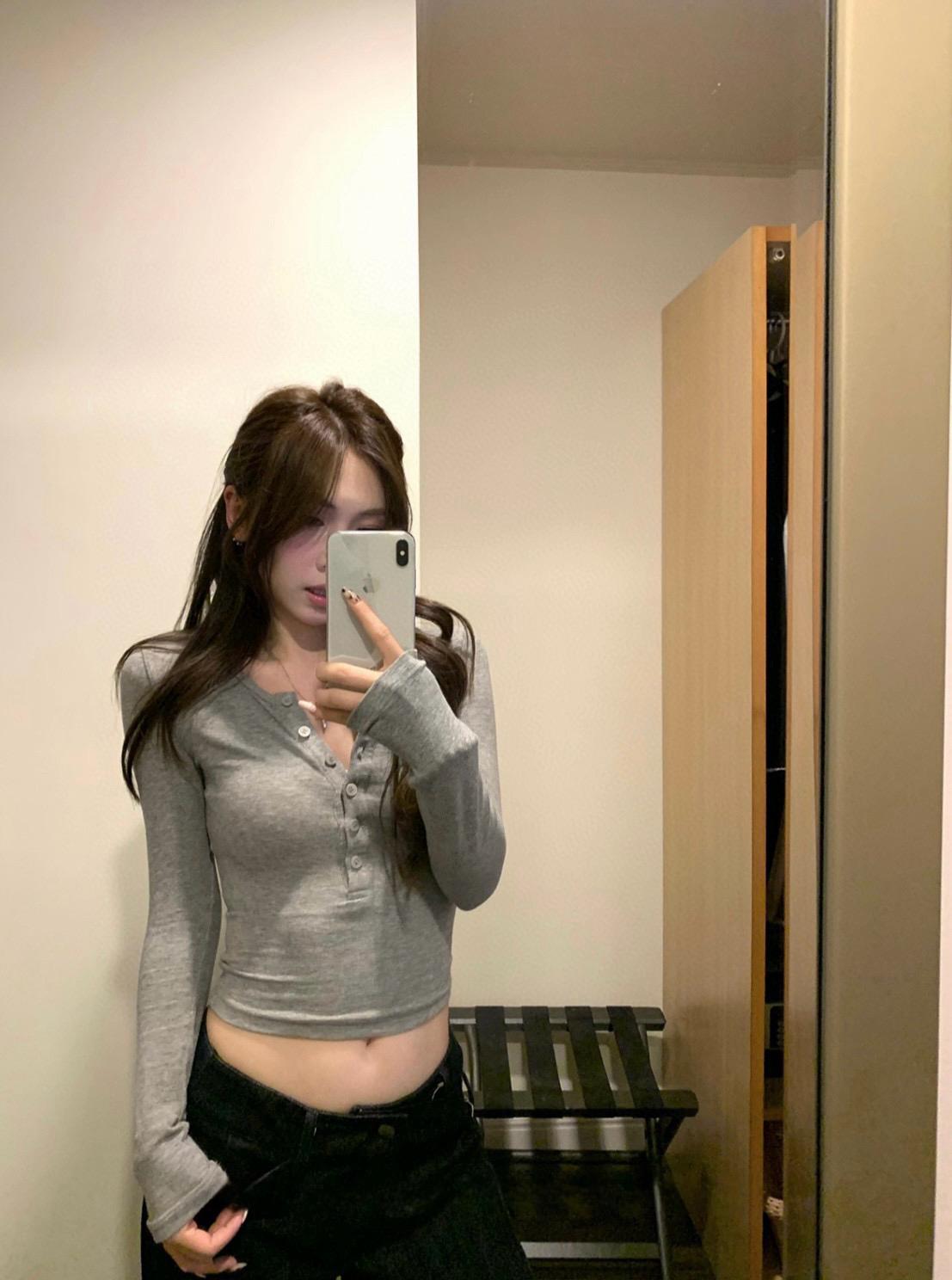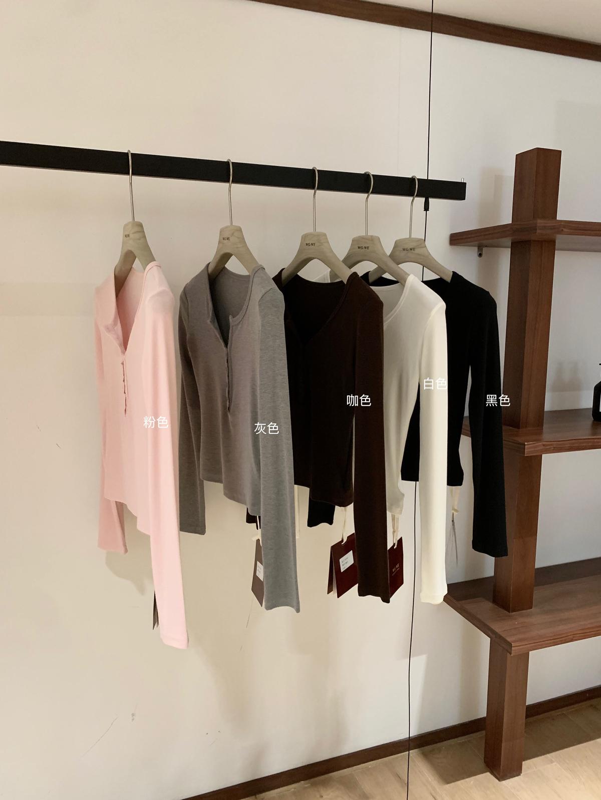 【C7258】半開領修身彈力T恤百搭打底衫長袖T恤