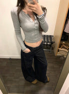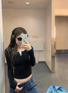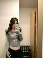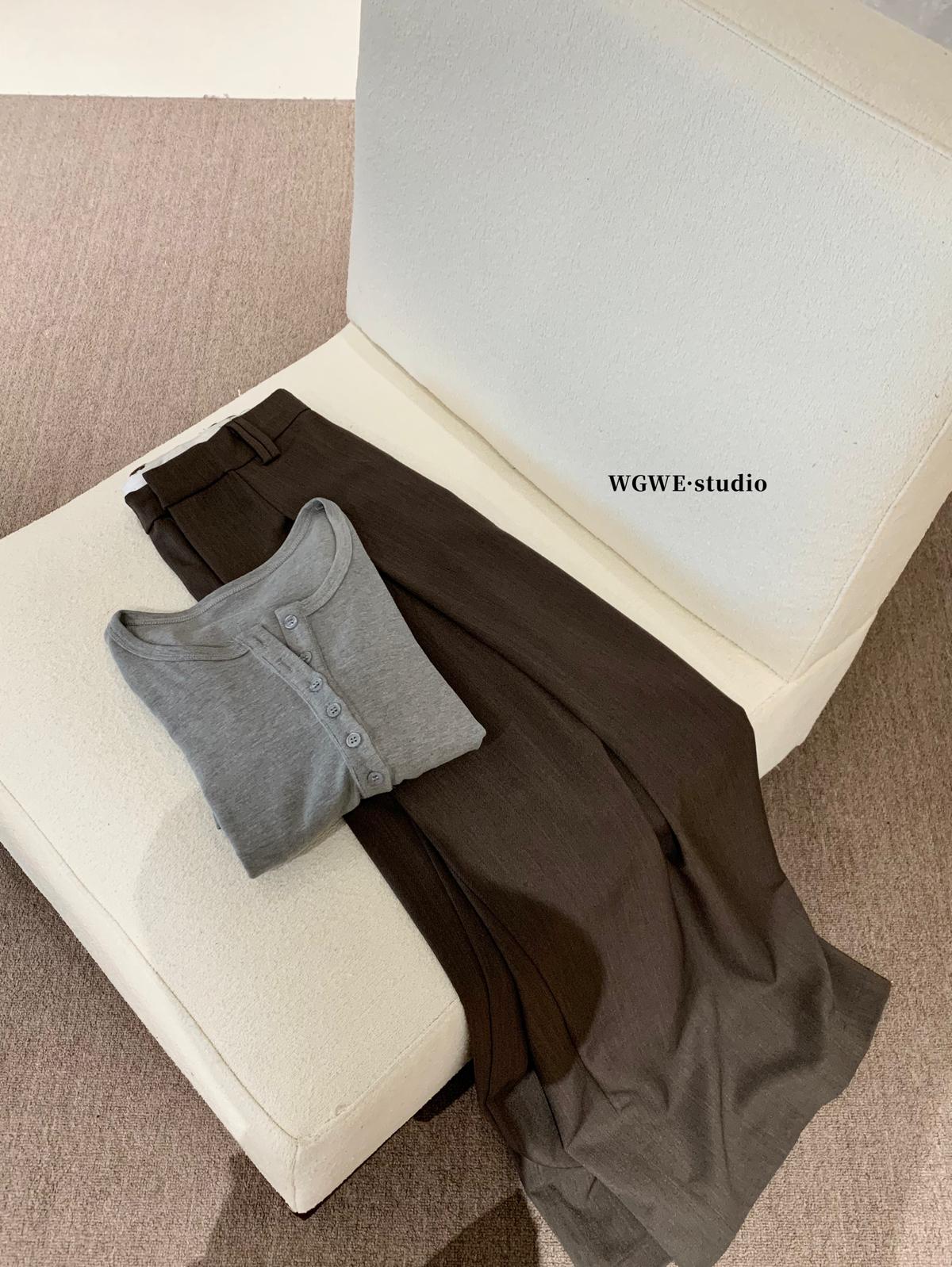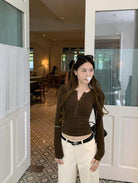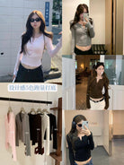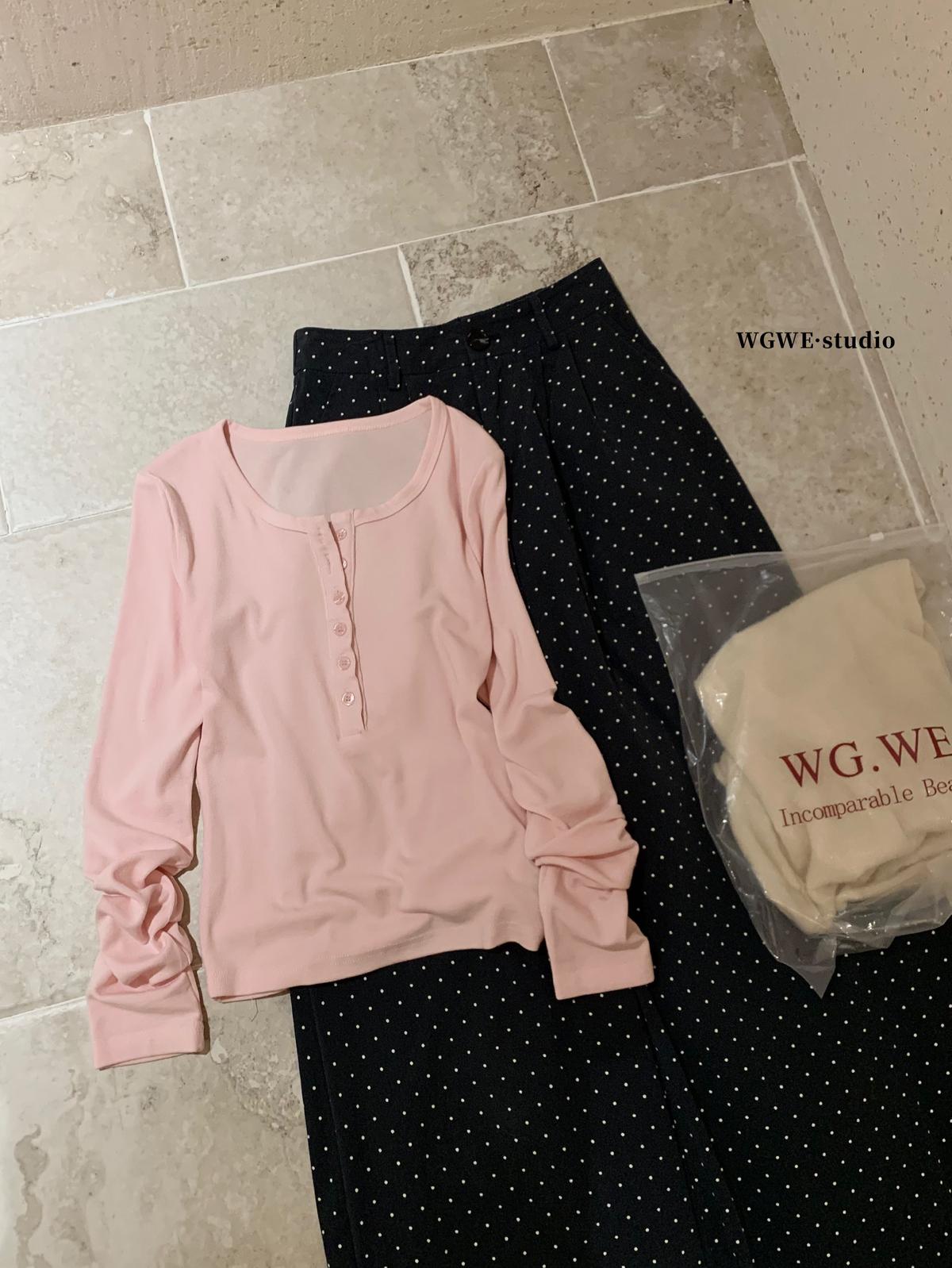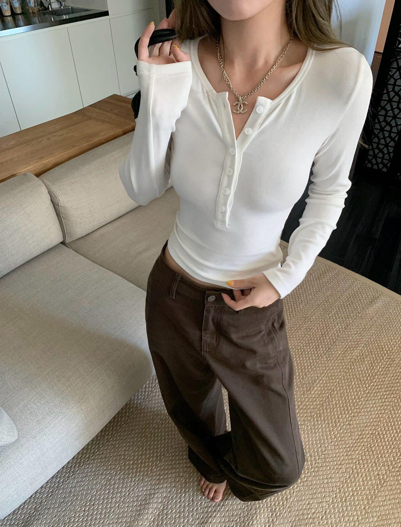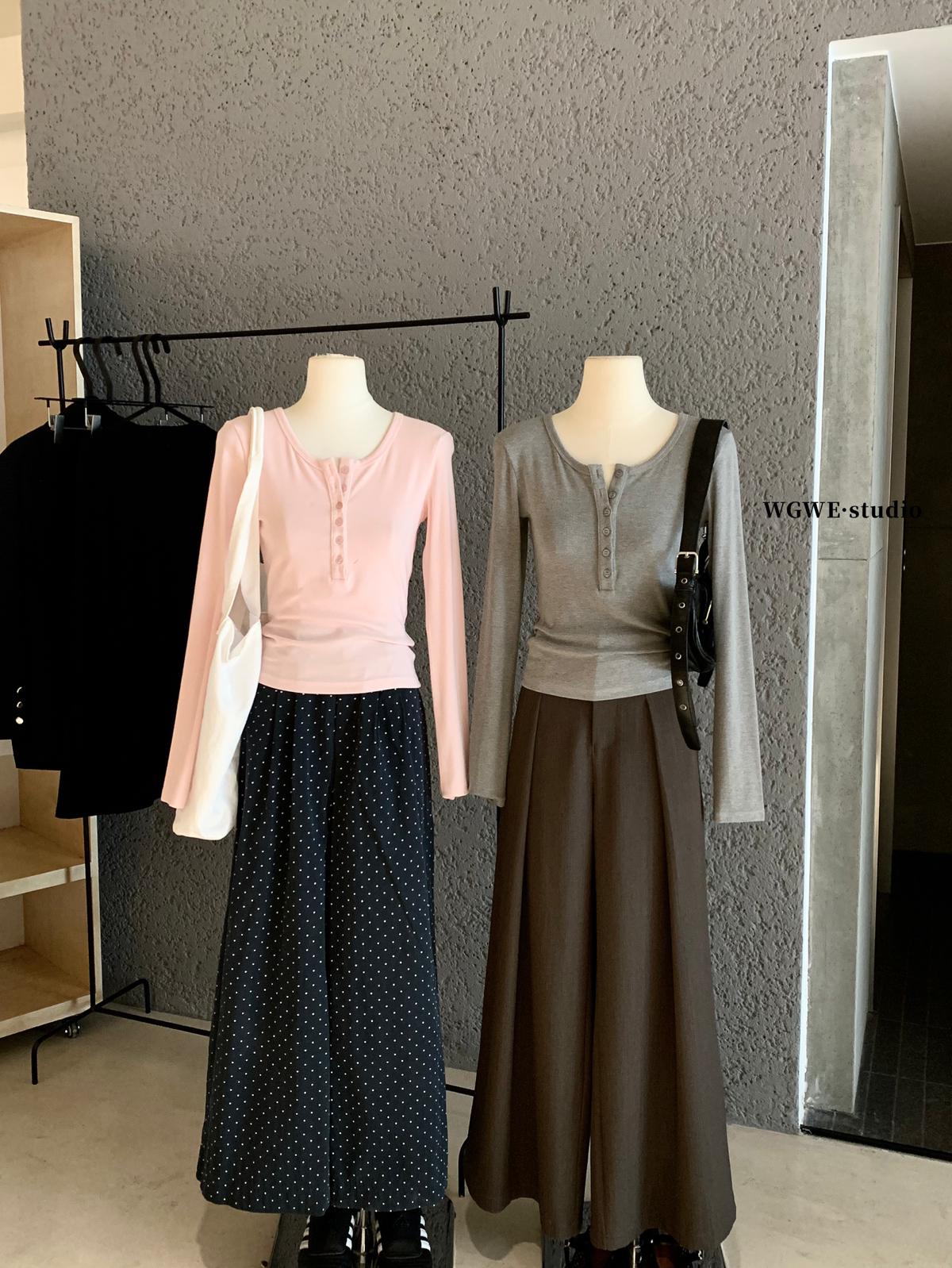 【C7258】半開領修身彈力T恤百搭打底衫長袖T恤