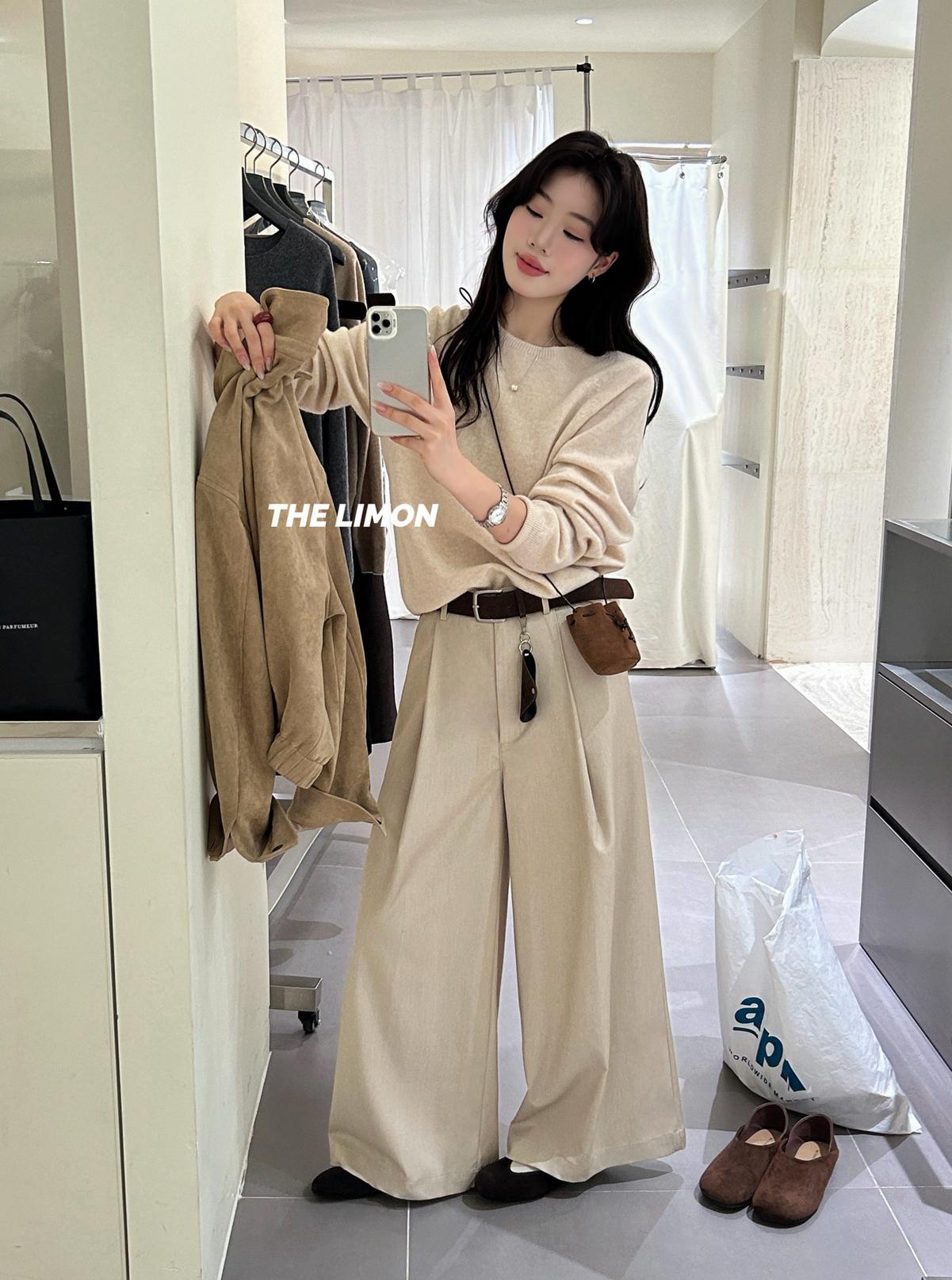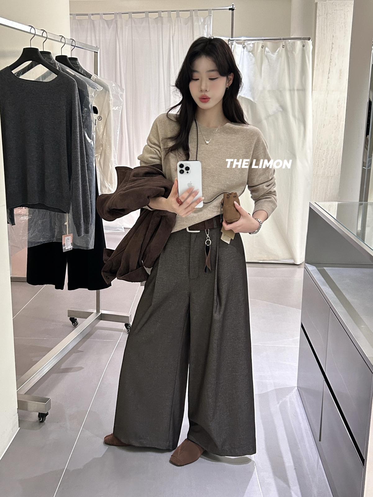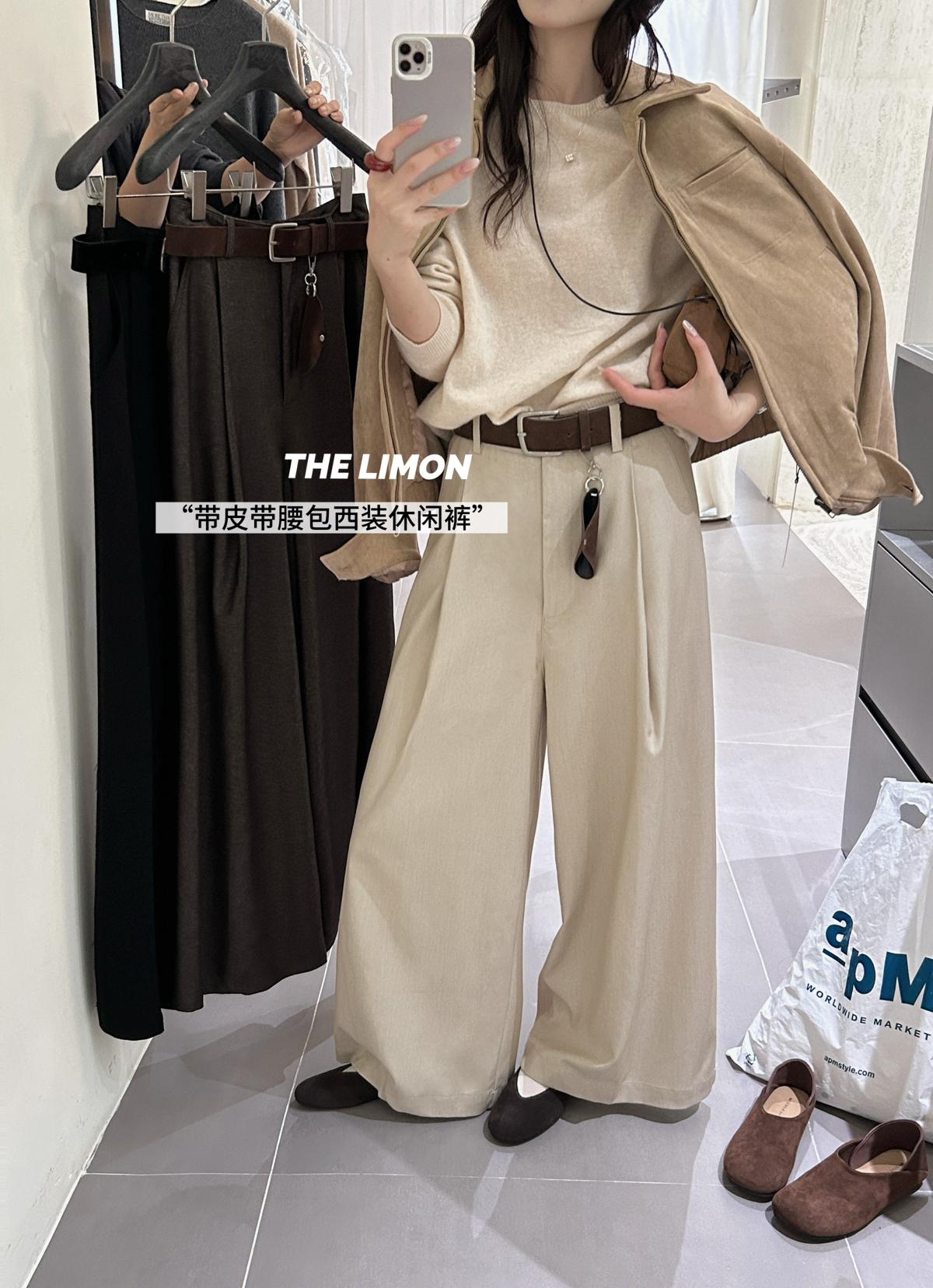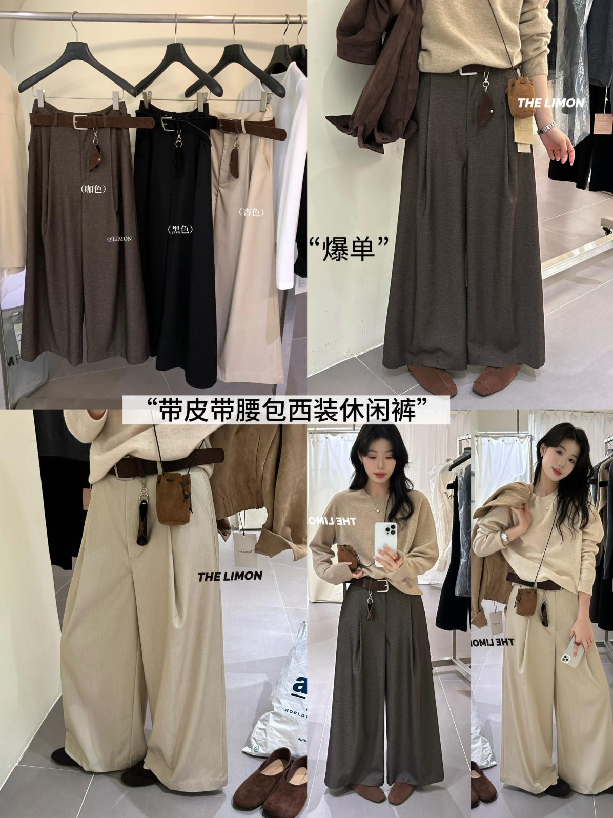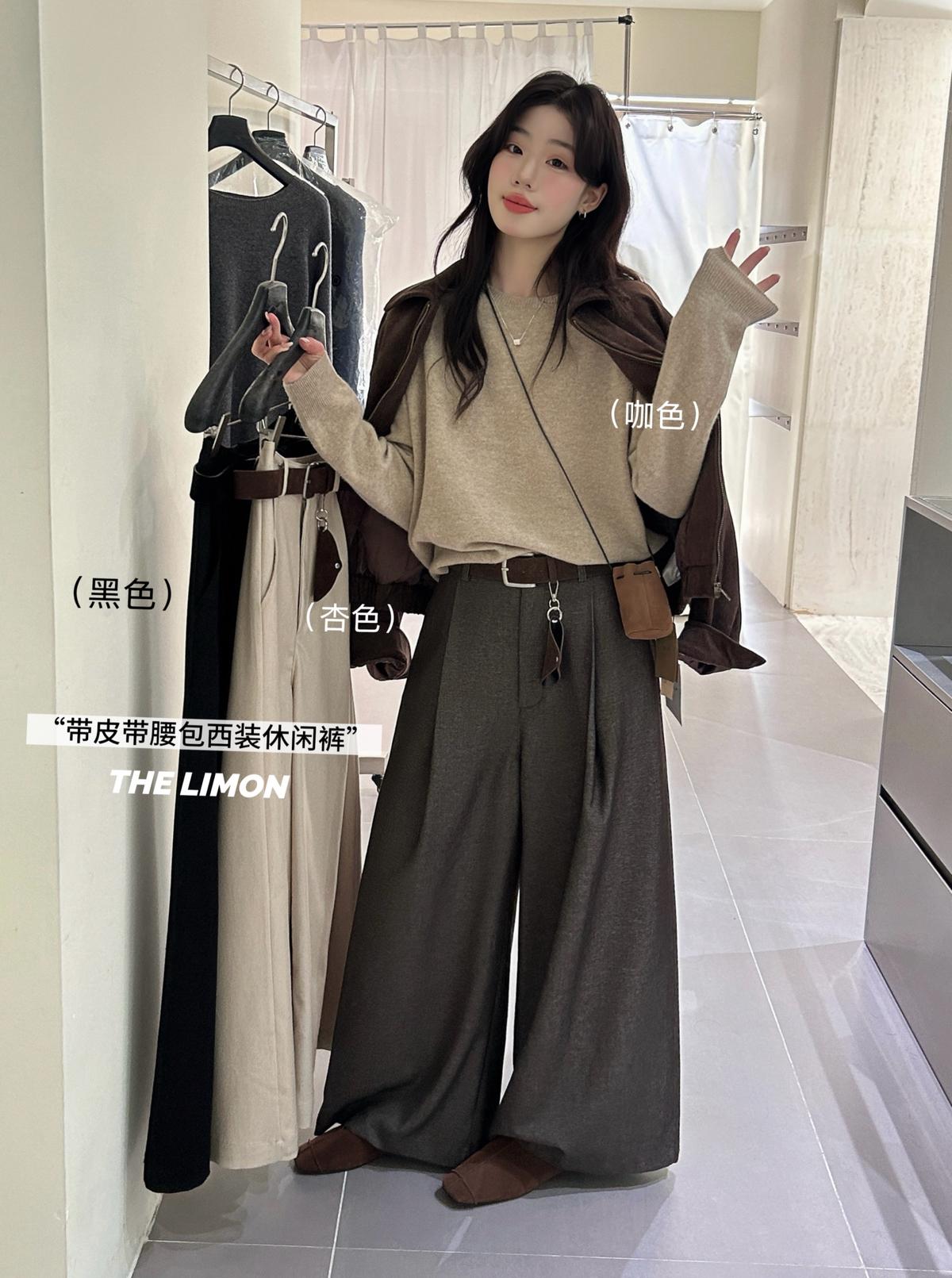 3. 【C7263】高腰直筒通勤休閒西褲(配腰帶)
