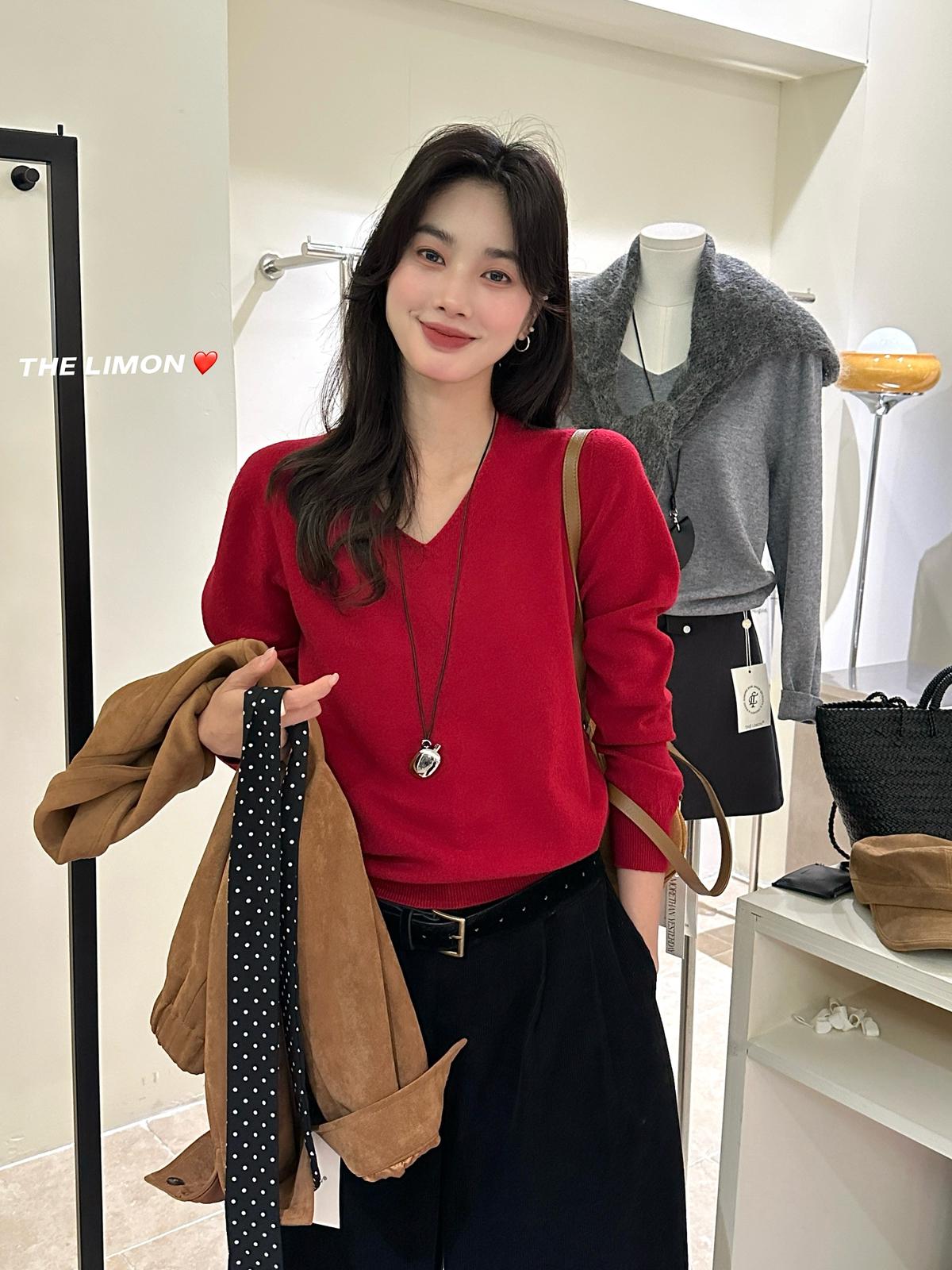 3. 【C7264】V領百搭 15色系無縫一體設計針織衫