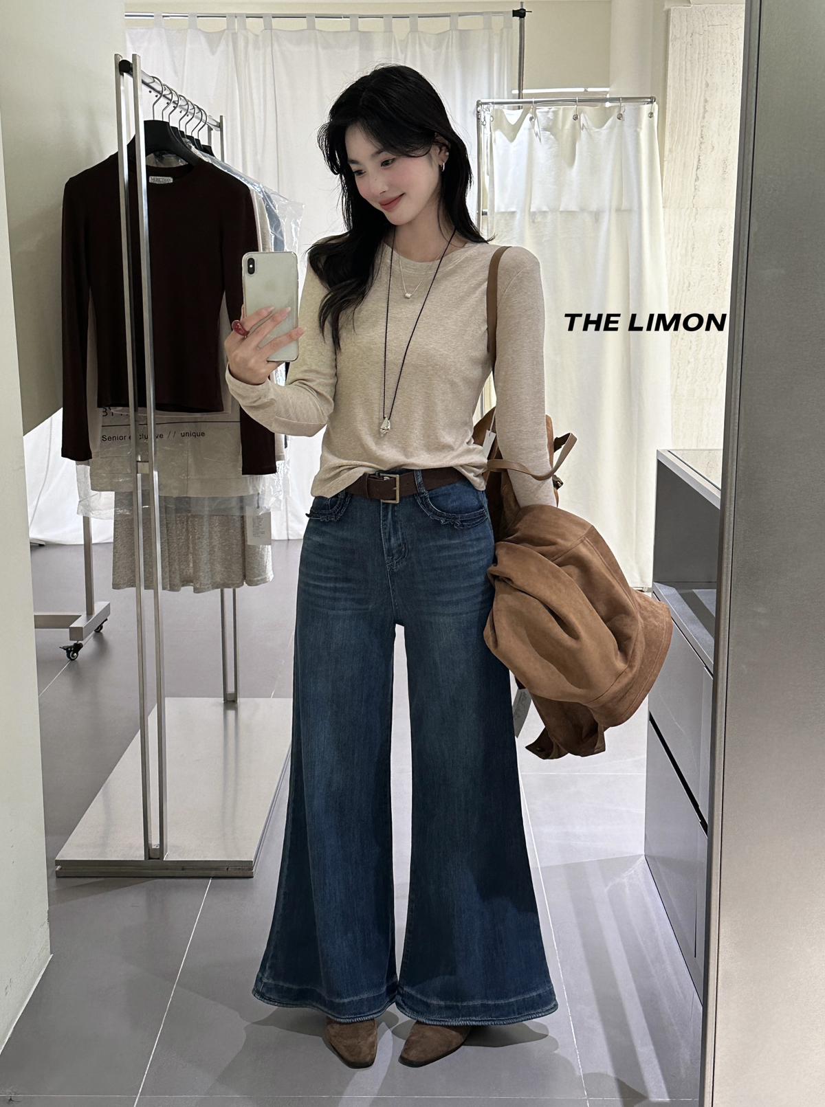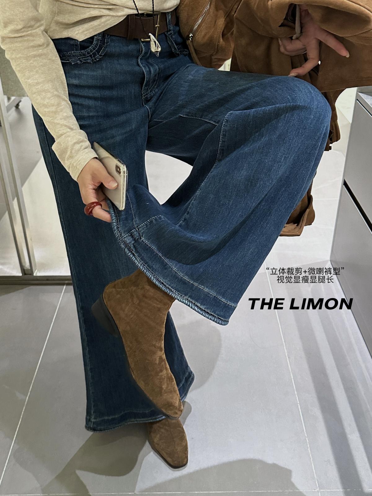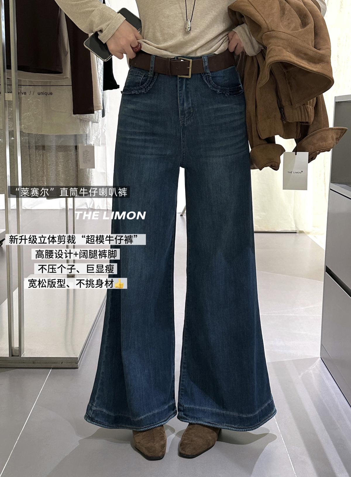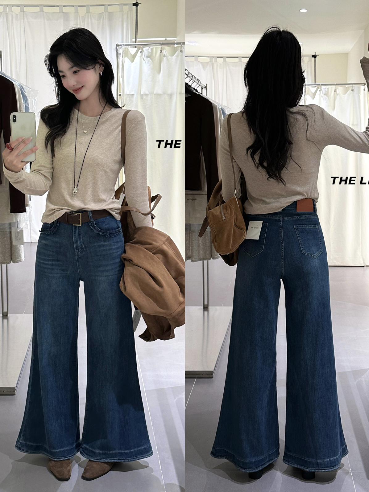 3. 【C7266】復古高腰寬鬆微喇百搭牛仔褲