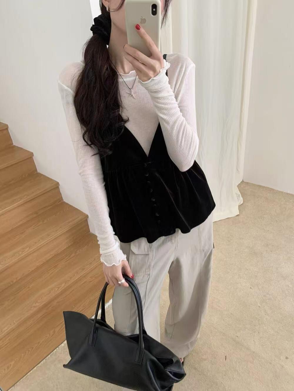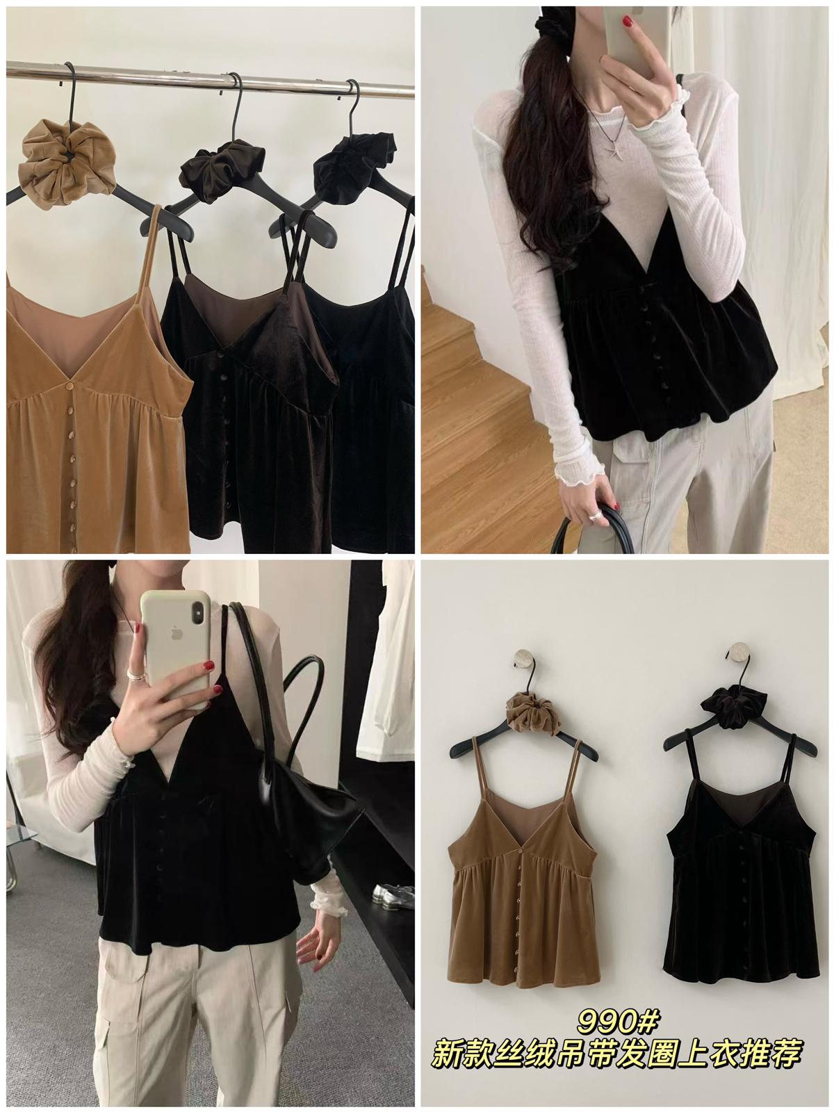 【C7273】韓風絲絨V領吊帶背心(配發圈)